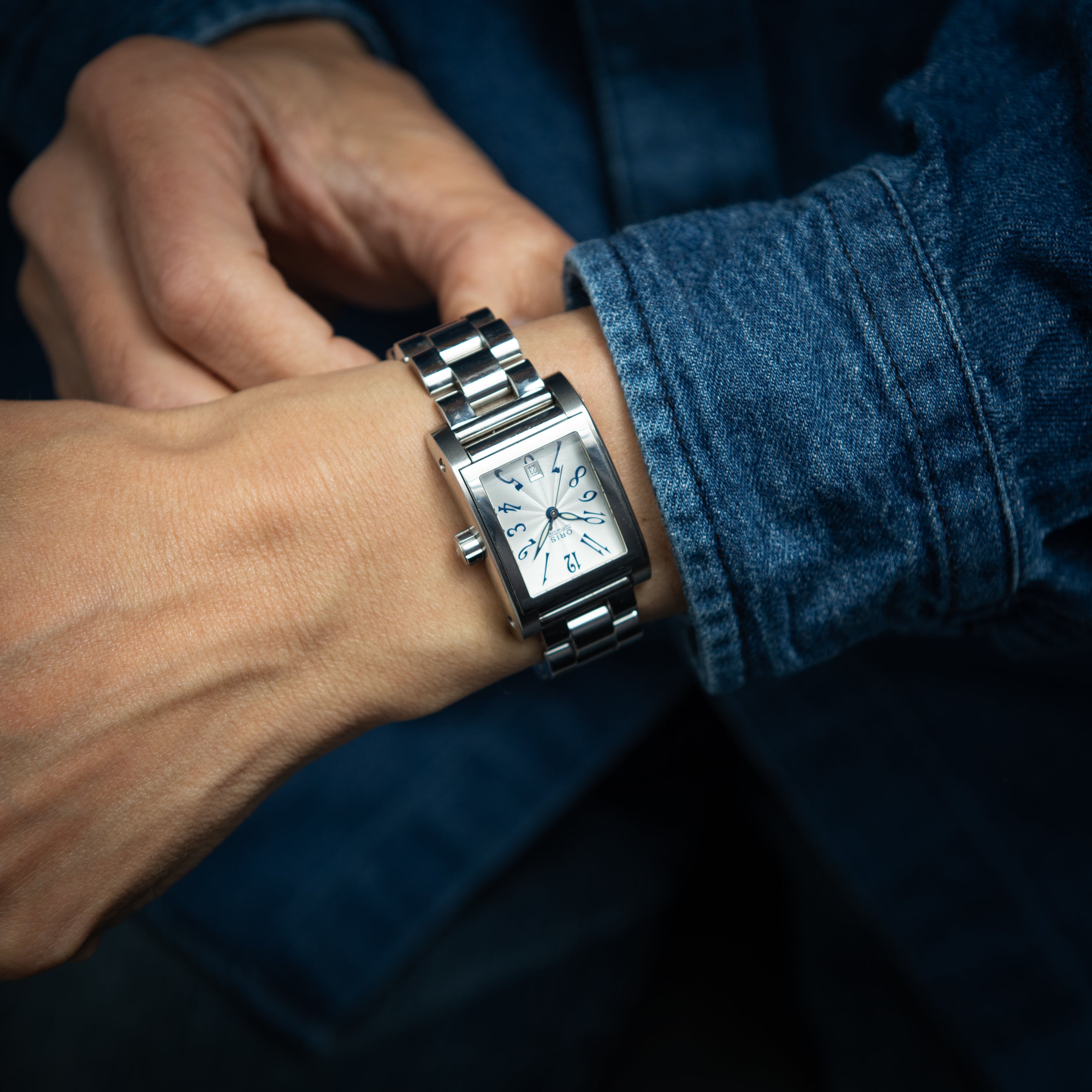 オリス レクタンギュラー ギョーシェダイヤル オート 裏スケルトン 純正ステンレスブレス 2000年代製