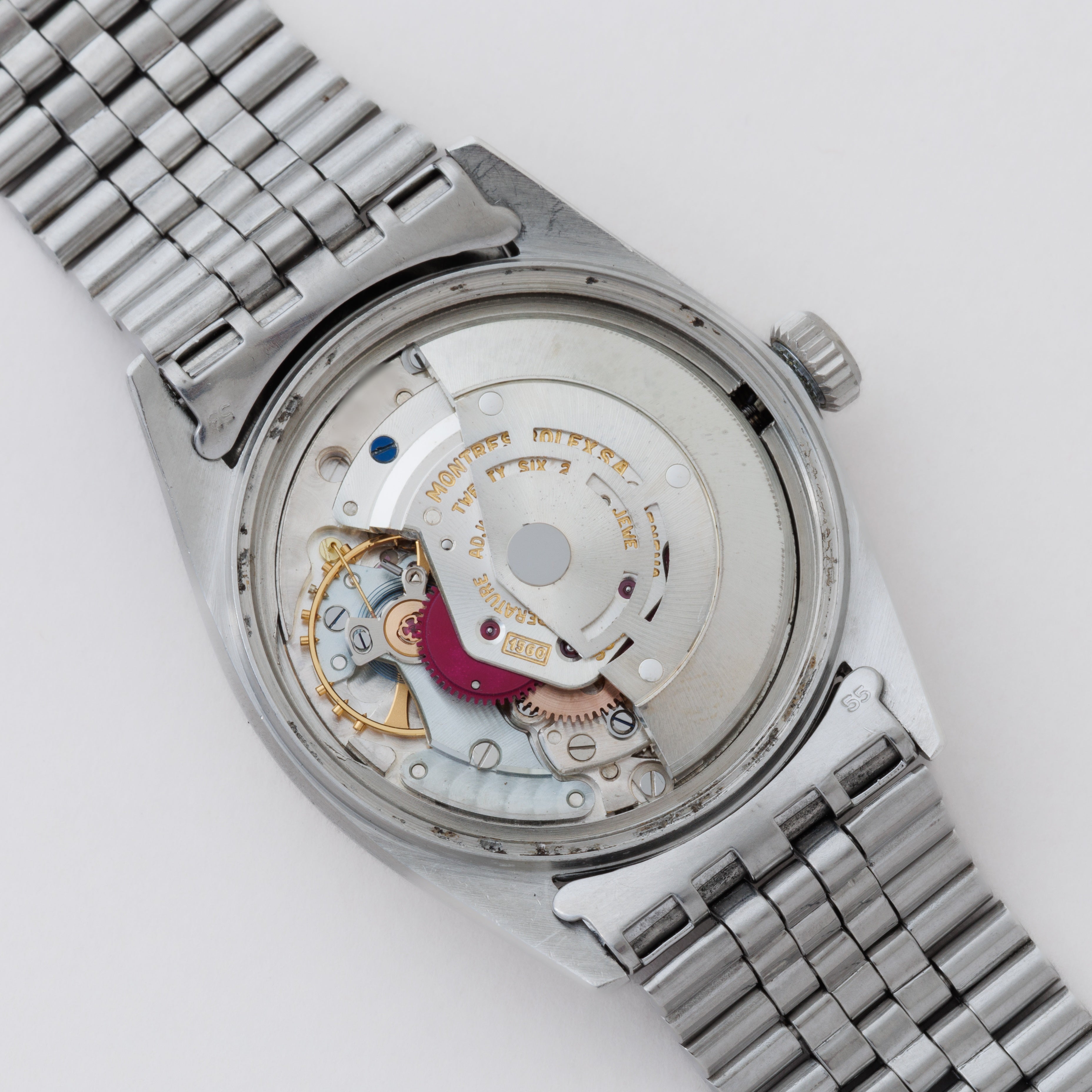- ヴィンテージ時計の特性上、風防・パッキン・リューズ・バネ棒などの消耗部品は後年メンテナンス過程で交換されている場合がございます。オリジナル性を重視しておりますが、必要に応じて適切な部品にて調整されていますので、よりコレクション性重視のお求めのお客様は事前にご確認ください。