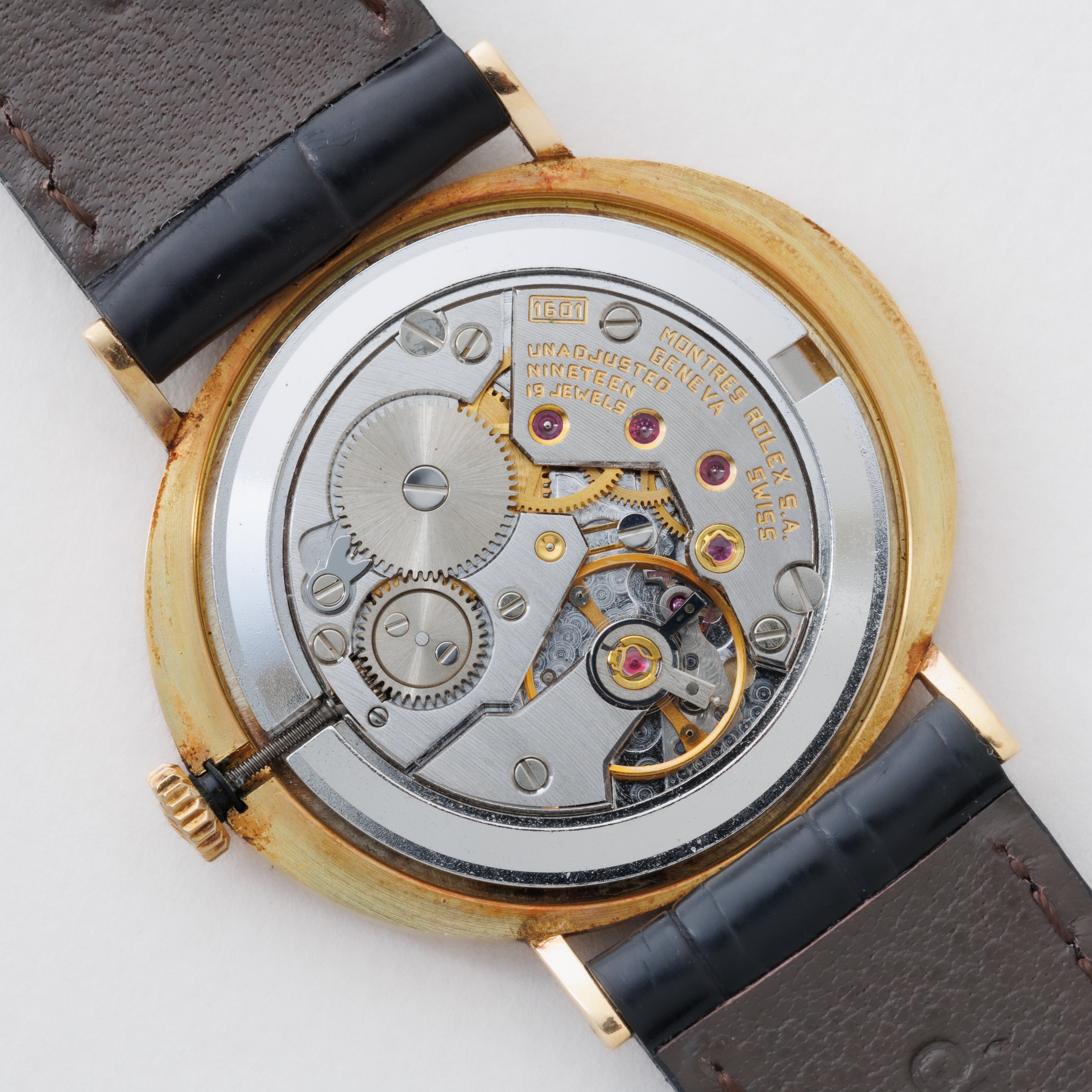 - ヴィンテージ時計の特性上、風防・パッキン・リューズ・バネ棒などの消耗部品は後年メンテナンス過程で交換されている場合がございます。オリジナル性を重視しておりますが、必要に応じて適切な部品にて調整されていますので、よりコレクション性重視のお求めのお客様は事前にご確認ください。