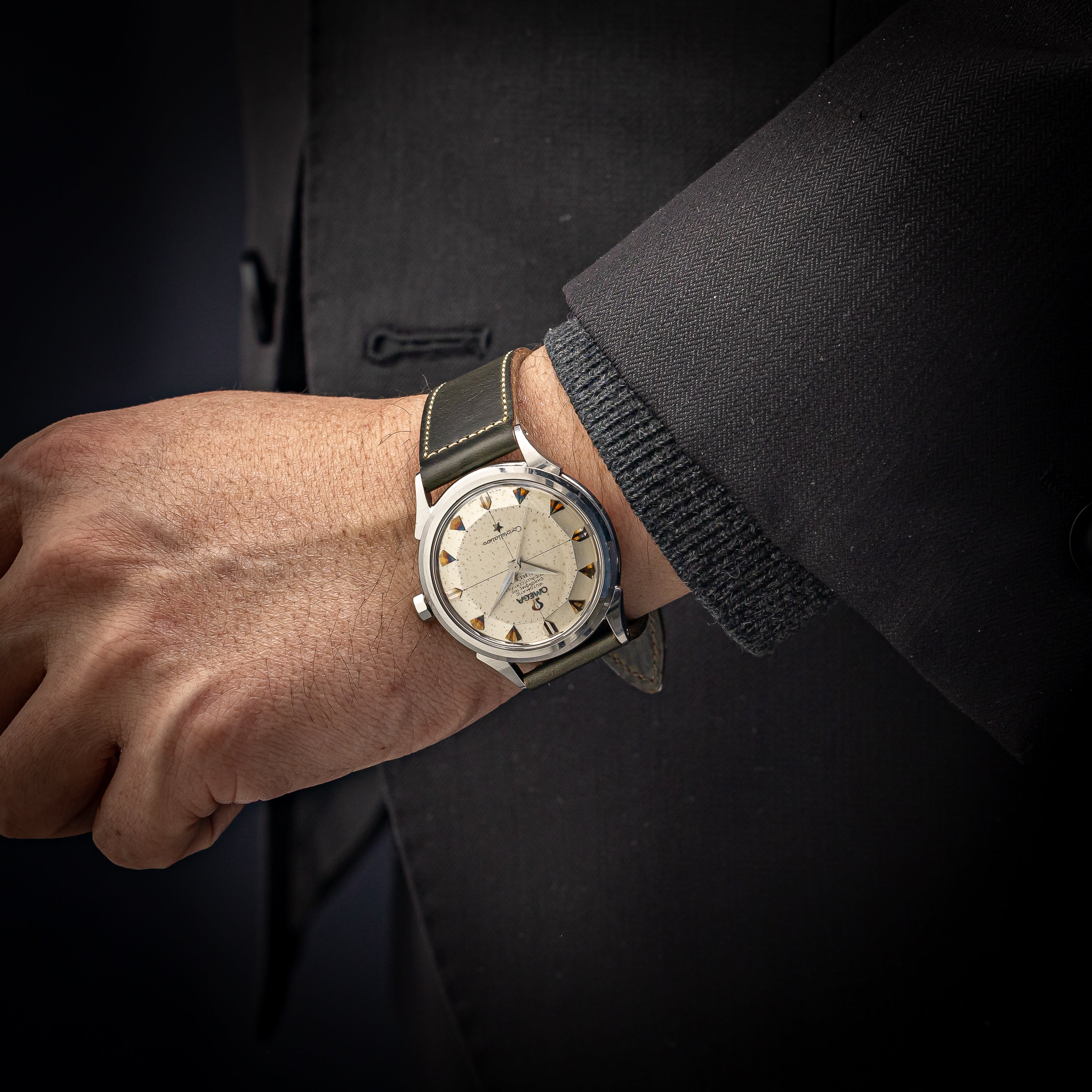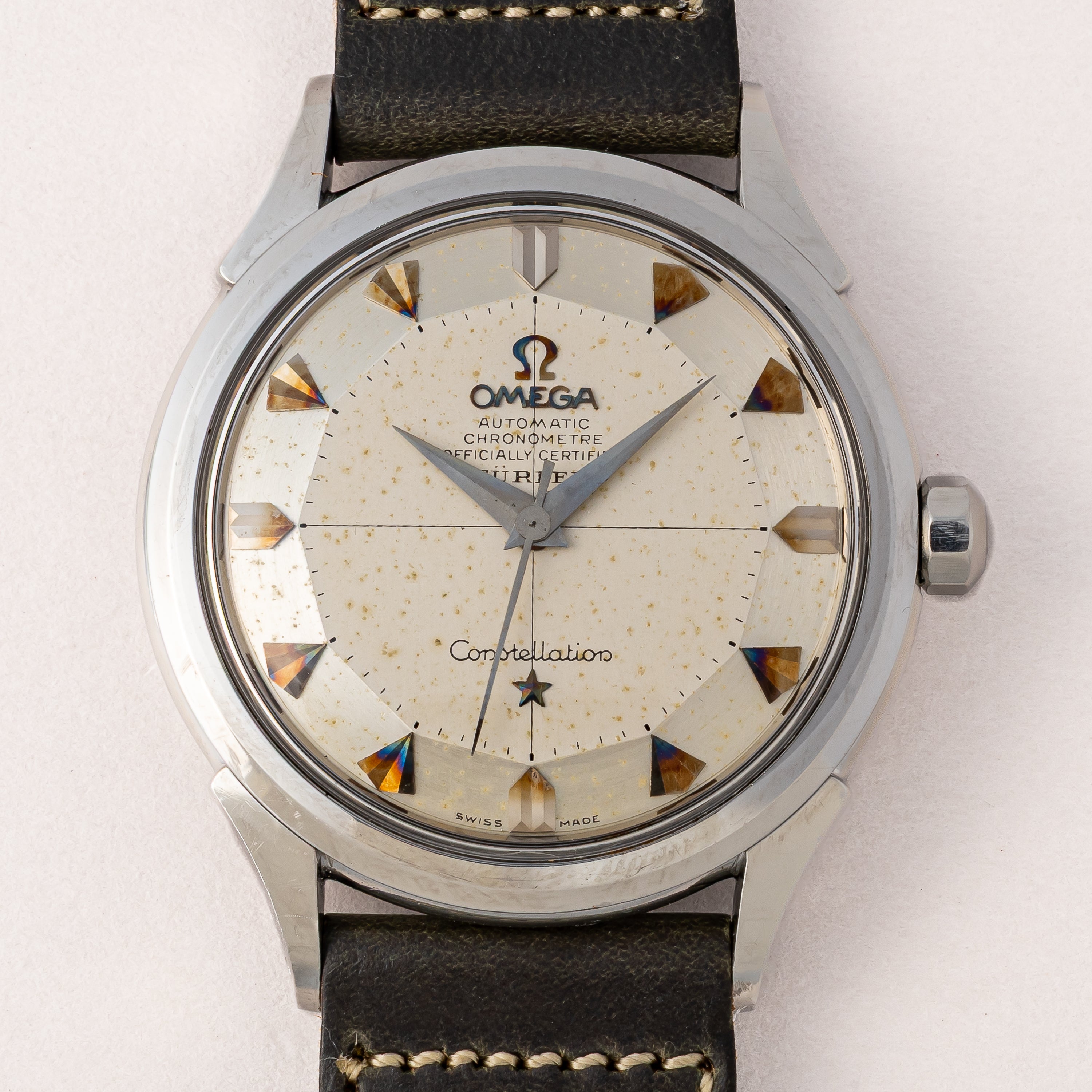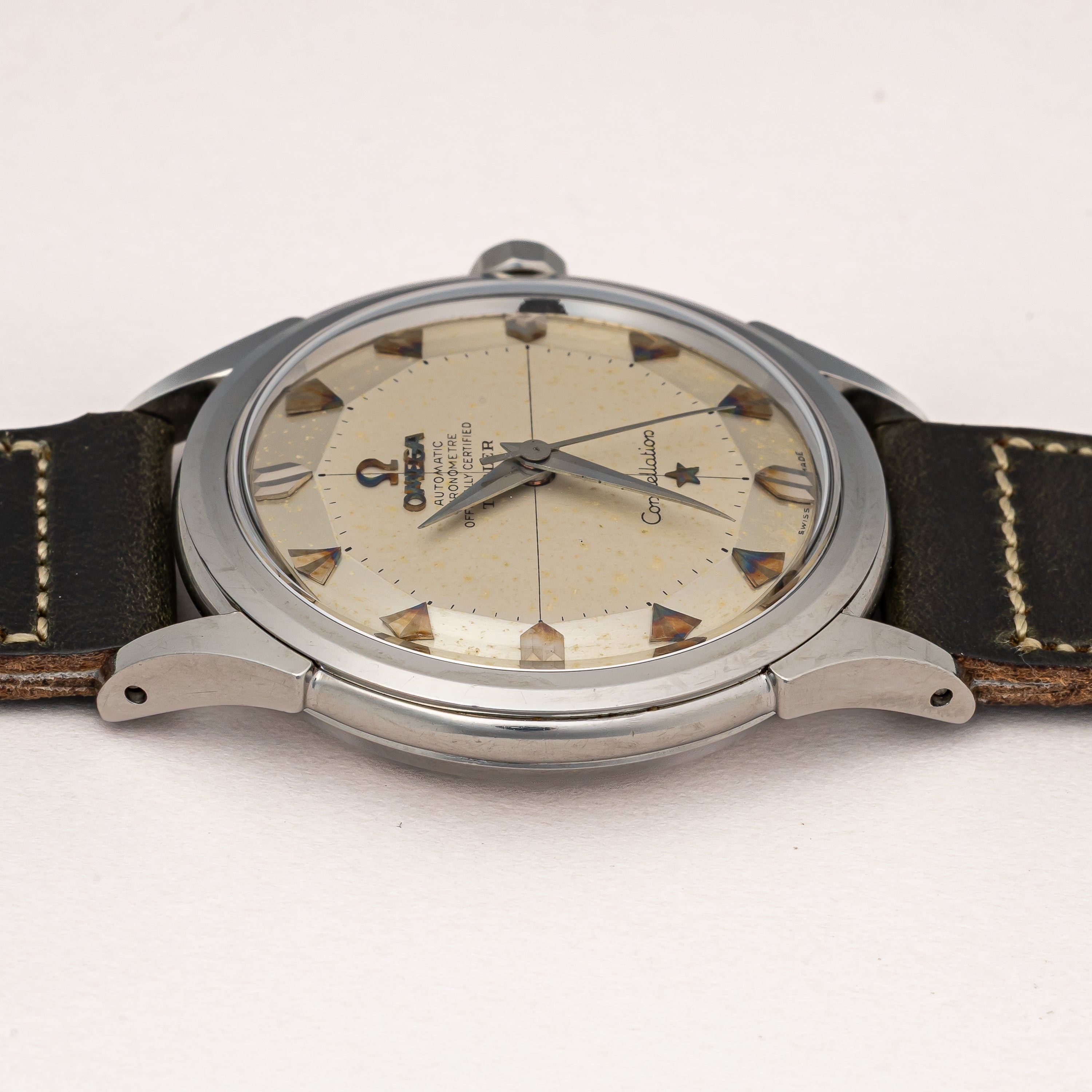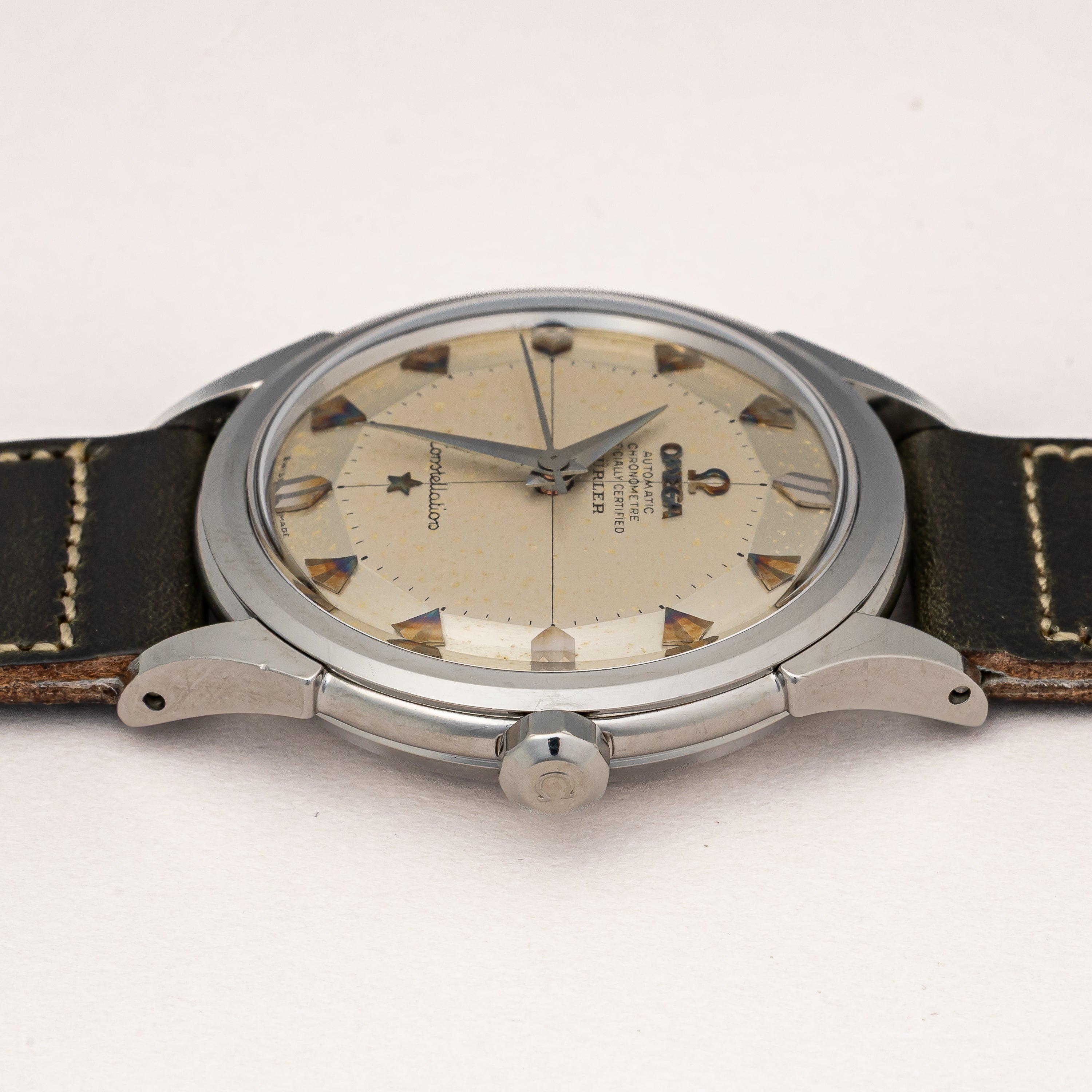 - ヴィンテージ時計の特性上、風防・パッキン・リューズ・バネ棒などの消耗部品は後年メンテナンス過程で交換されている場合がございます。オリジナル性を重視しておりますが、必要に応じて適切な部品にて調整されていますので、よりコレクション性重視のお求めのお客様は事前にご確認ください。