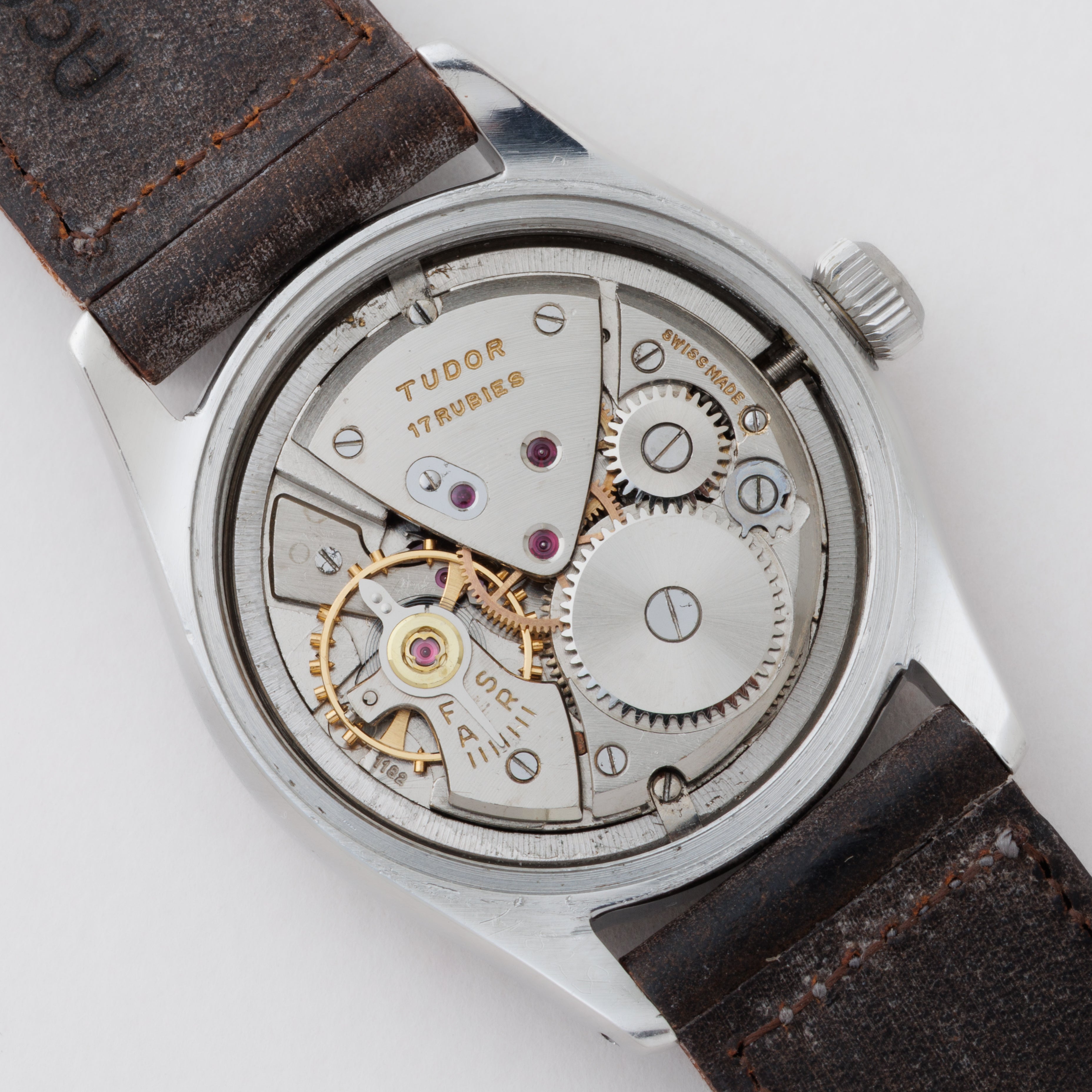 - ヴィンテージ時計の特性上、風防・パッキン・リューズ・バネ棒などの消耗部品は後年メンテナンス過程で交換されている場合がございます。オリジナル性を重視しておりますが、必要に応じて適切な部品にて調整されていますので、よりコレクション性重視のお求めのお客様は事前にご確認ください。