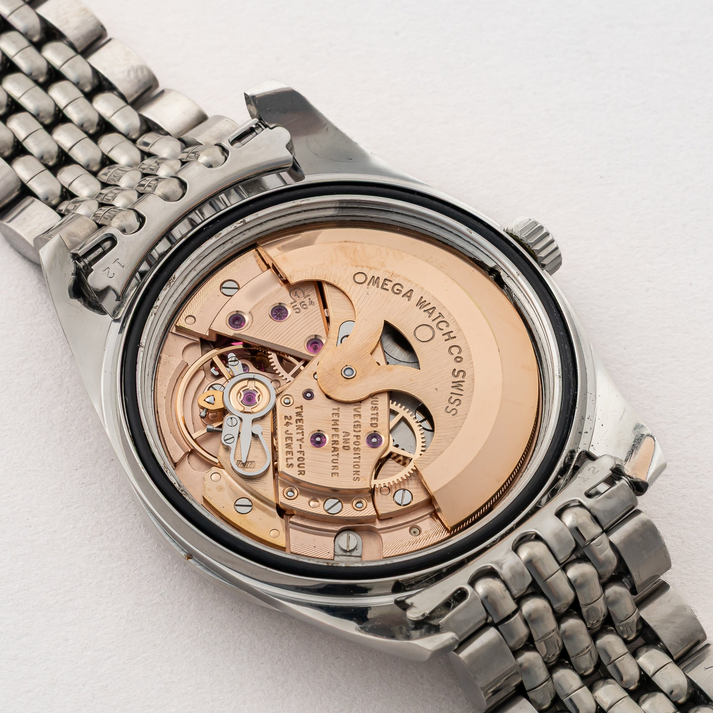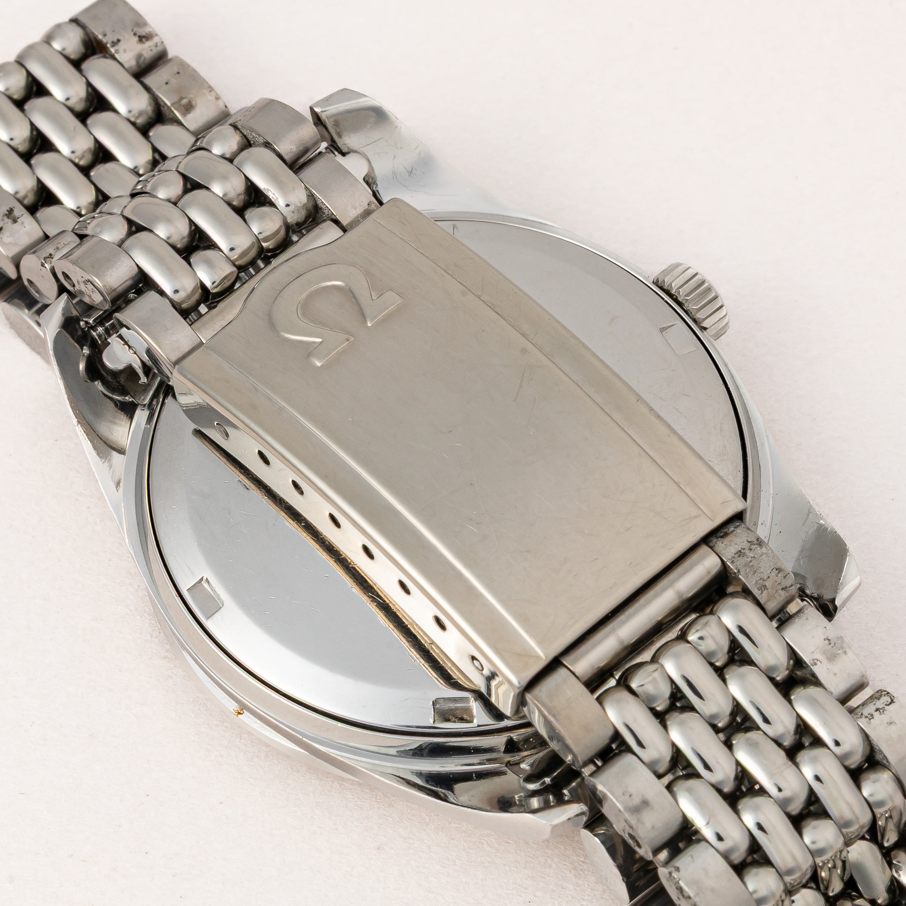- ヴィンテージ時計の特性上、風防・パッキン・リューズ・バネ棒などの消耗部品は後年メンテナンス過程で交換されている場合がございます。オリジナル性を重視しておりますが、必要に応じて適切な部品にて調整されていますので、よりコレクション性重視のお求めのお客様は事前にご確認ください。