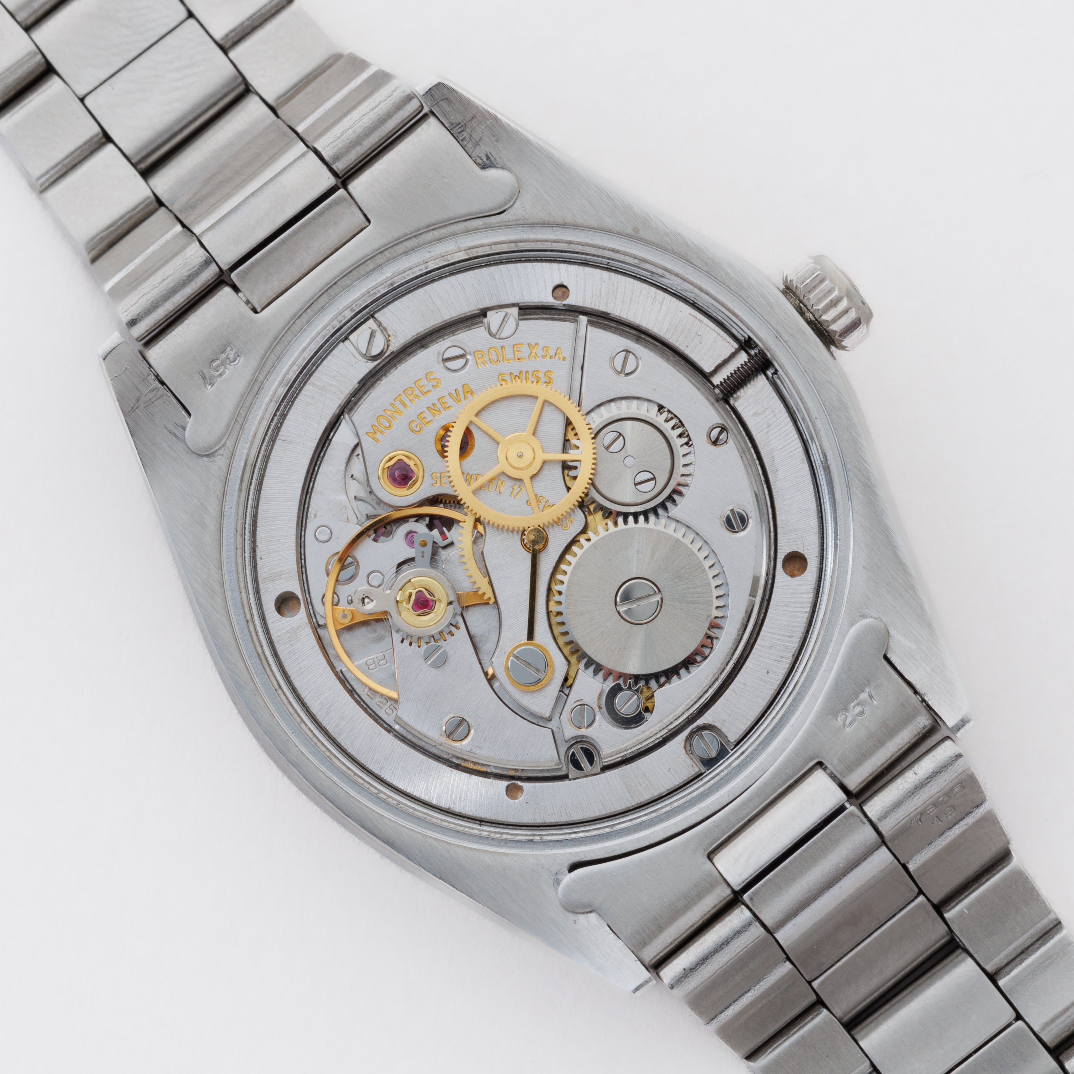 - ヴィンテージ時計の特性上、風防・パッキン・リューズ・バネ棒などの消耗部品は後年メンテナンス過程で交換されている場合がございます。オリジナル性を重視しておりますが、必要に応じて適切な部品にて調整されていますので、よりコレクション性重視のお求めのお客様は事前にご確認ください。