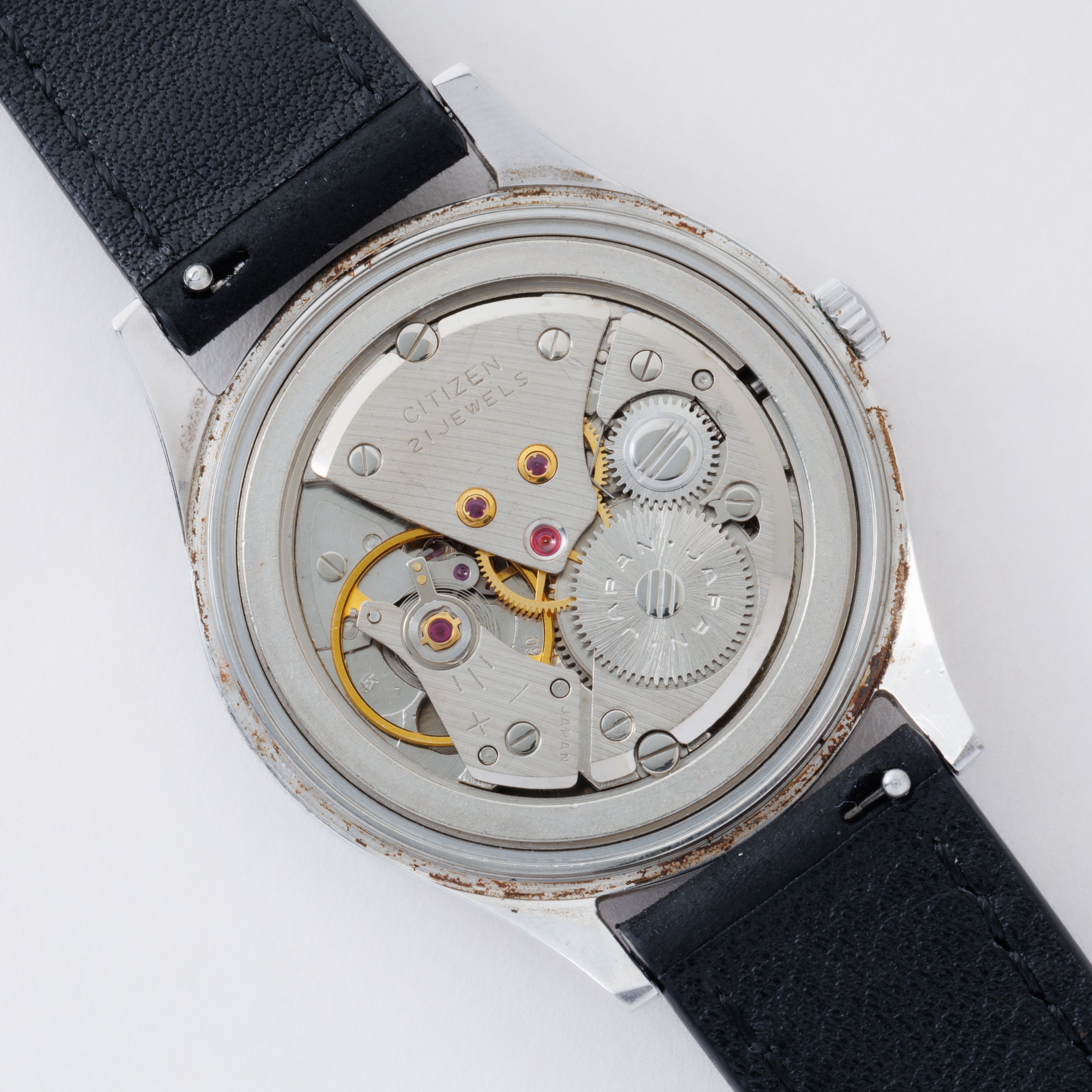 - ヴィンテージ時計の特性上、風防・パッキン・リューズ・バネ棒などの消耗部品は後年メンテナンス過程で交換されている場合がございます。オリジナル性を重視しておりますが、必要に応じて適切な部品にて調整されていますので、よりコレクション性重視のお求めのお客様は事前にご確認ください。