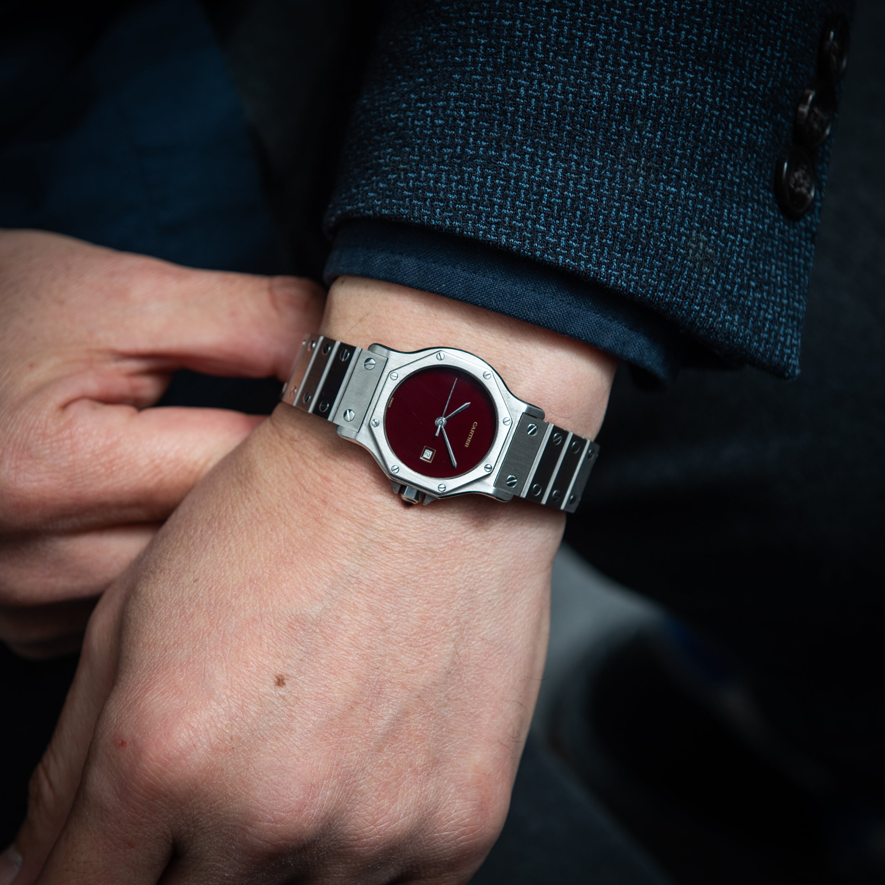 カルティエ サントス オクタゴン 1980年代製 Ref.2965 LMサイズ SS ガーネットダイヤル