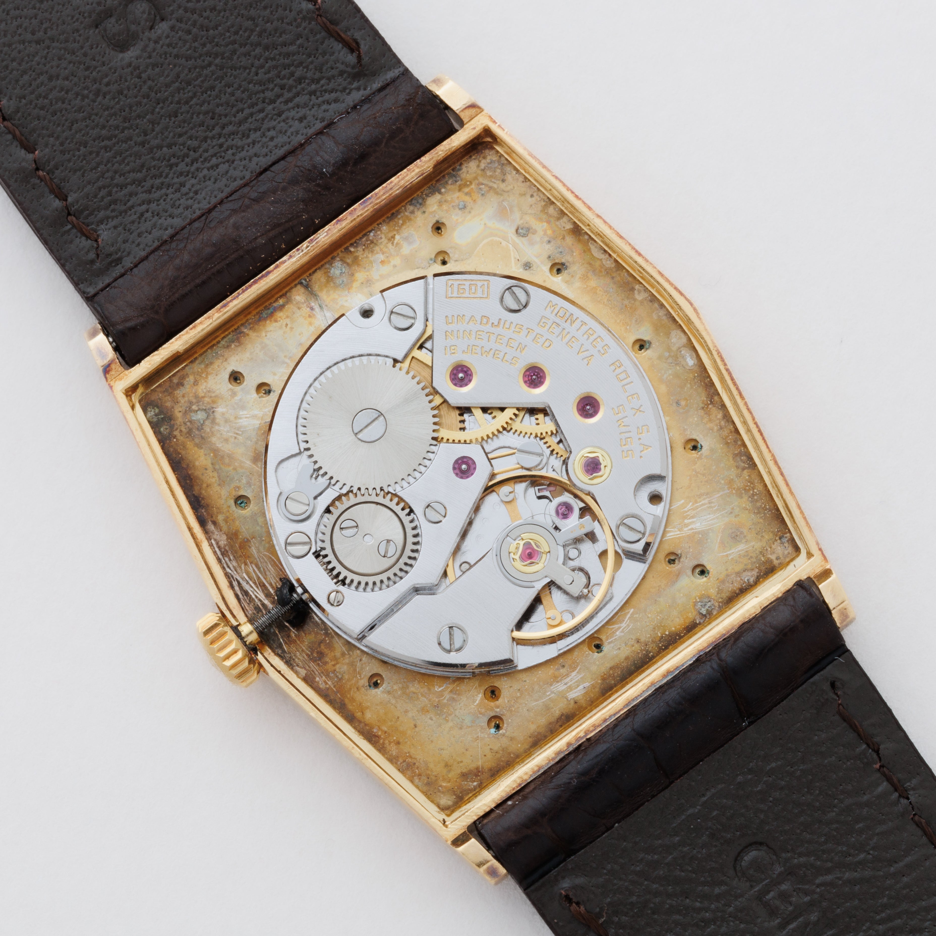 - ヴィンテージ時計の特性上、風防・パッキン・リューズ・バネ棒などの消耗部品は後年メンテナンス過程で交換されている場合がございます。オリジナル性を重視しておりますが、必要に応じて適切な部品にて調整されていますので、よりコレクション性重視のお求めのお客様は事前にご確認ください。