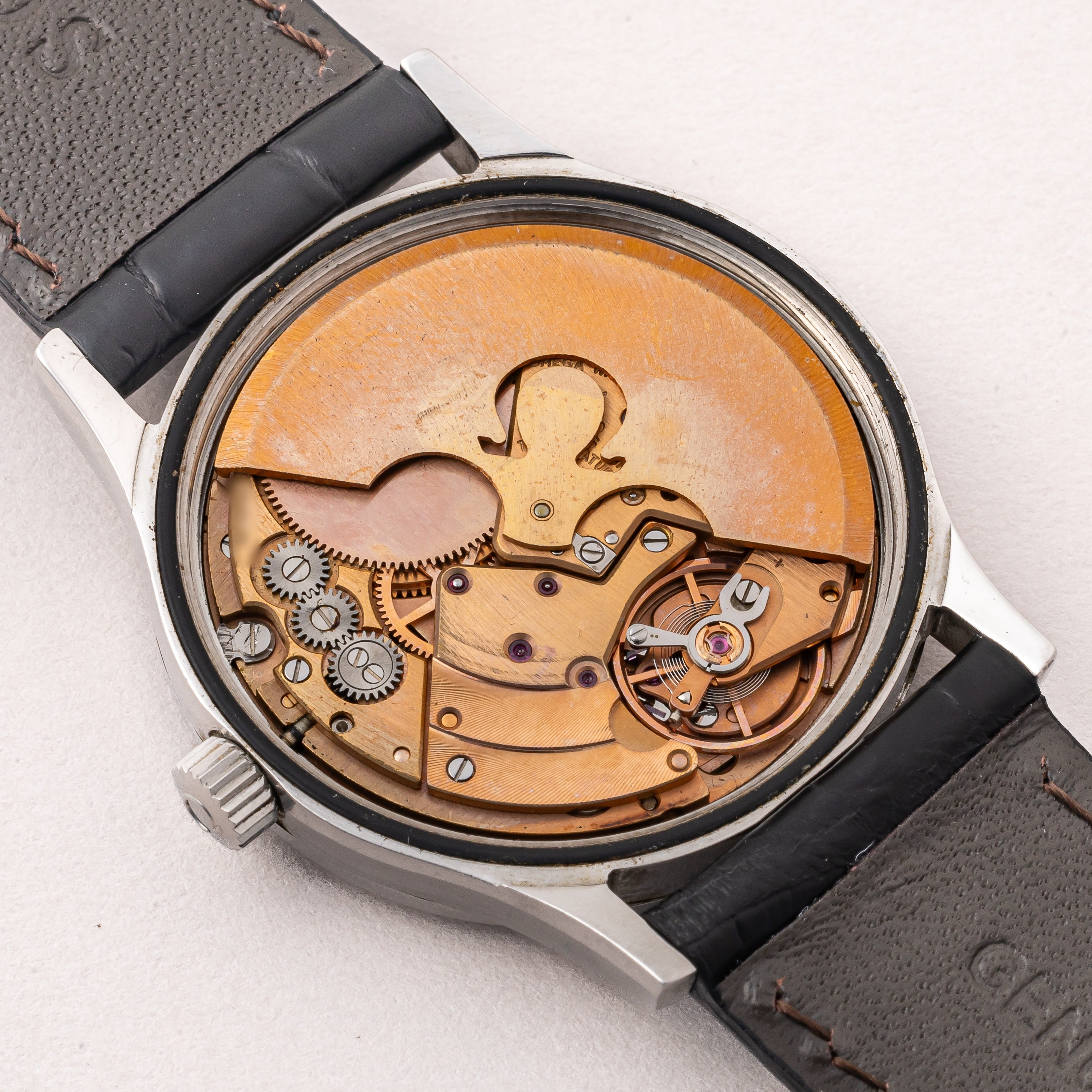 - ヴィンテージ時計の特性上、風防・パッキン・リューズ・バネ棒などの消耗部品は後年メンテナンス過程で交換されている場合がございます。オリジナル性を重視しておりますが、必要に応じて適切な部品にて調整されていますので、よりコレクション性重視のお求めのお客様は事前にご確認ください。