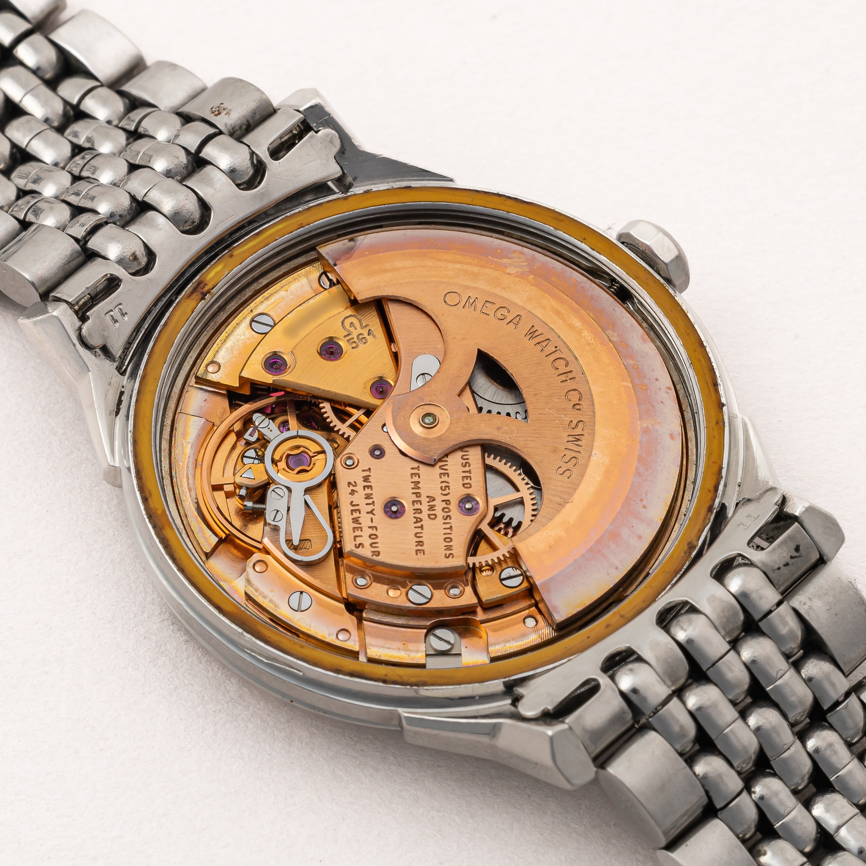 - ヴィンテージ時計の特性上、風防・パッキン・リューズ・バネ棒などの消耗部品は後年メンテナンス過程で交換されている場合がございます。オリジナル性を重視しておりますが、必要に応じて適切な部品にて調整されていますので、よりコレクション性重視のお求めのお客様は事前にご確認ください。