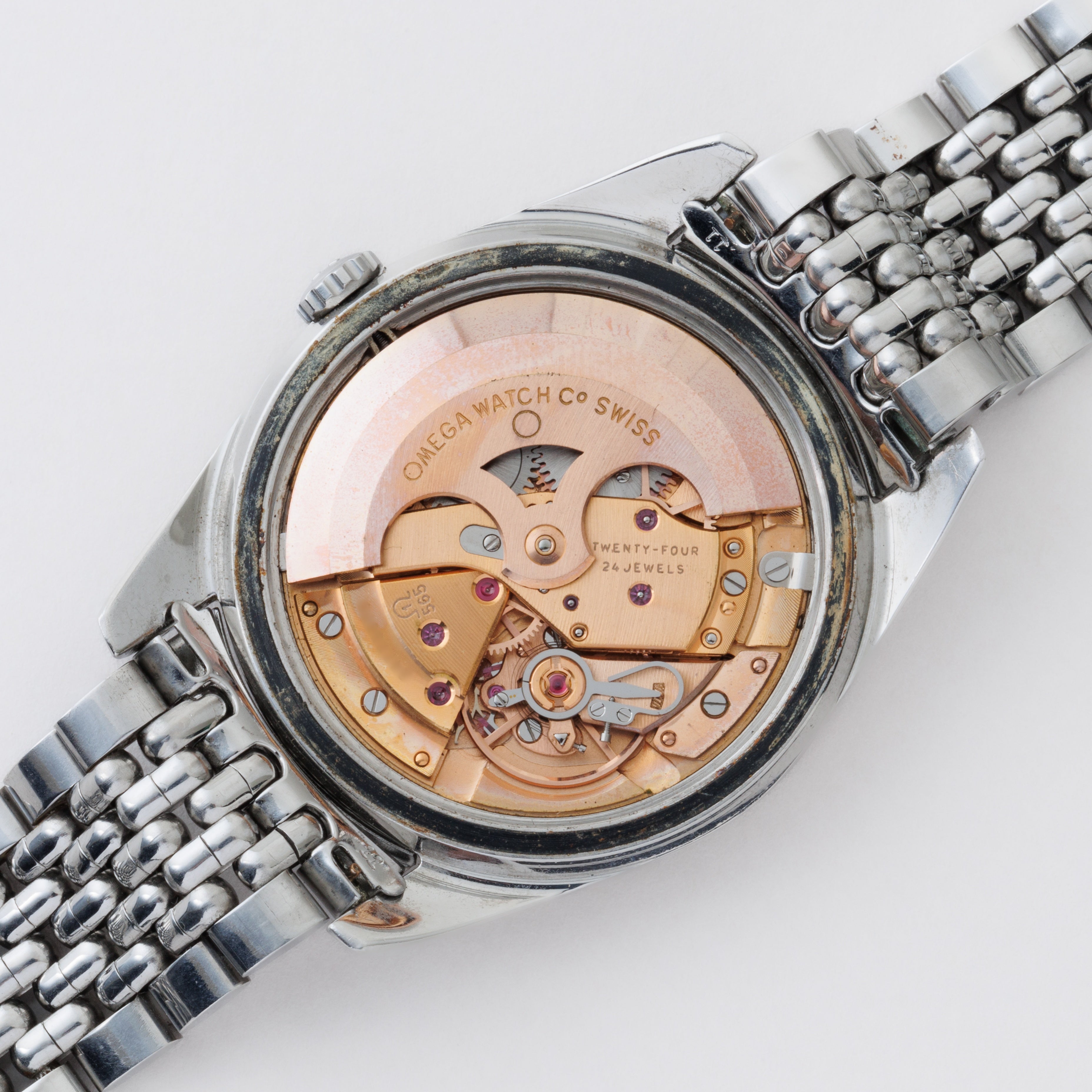 - ヴィンテージ時計の特性上、風防・パッキン・リューズ・バネ棒などの消耗部品は後年メンテナンス過程で交換されている場合がございます。オリジナル性を重視しておりますが、必要に応じて適切な部品にて調整されていますので、よりコレクション性重視のお求めのお客様は事前にご確認ください。