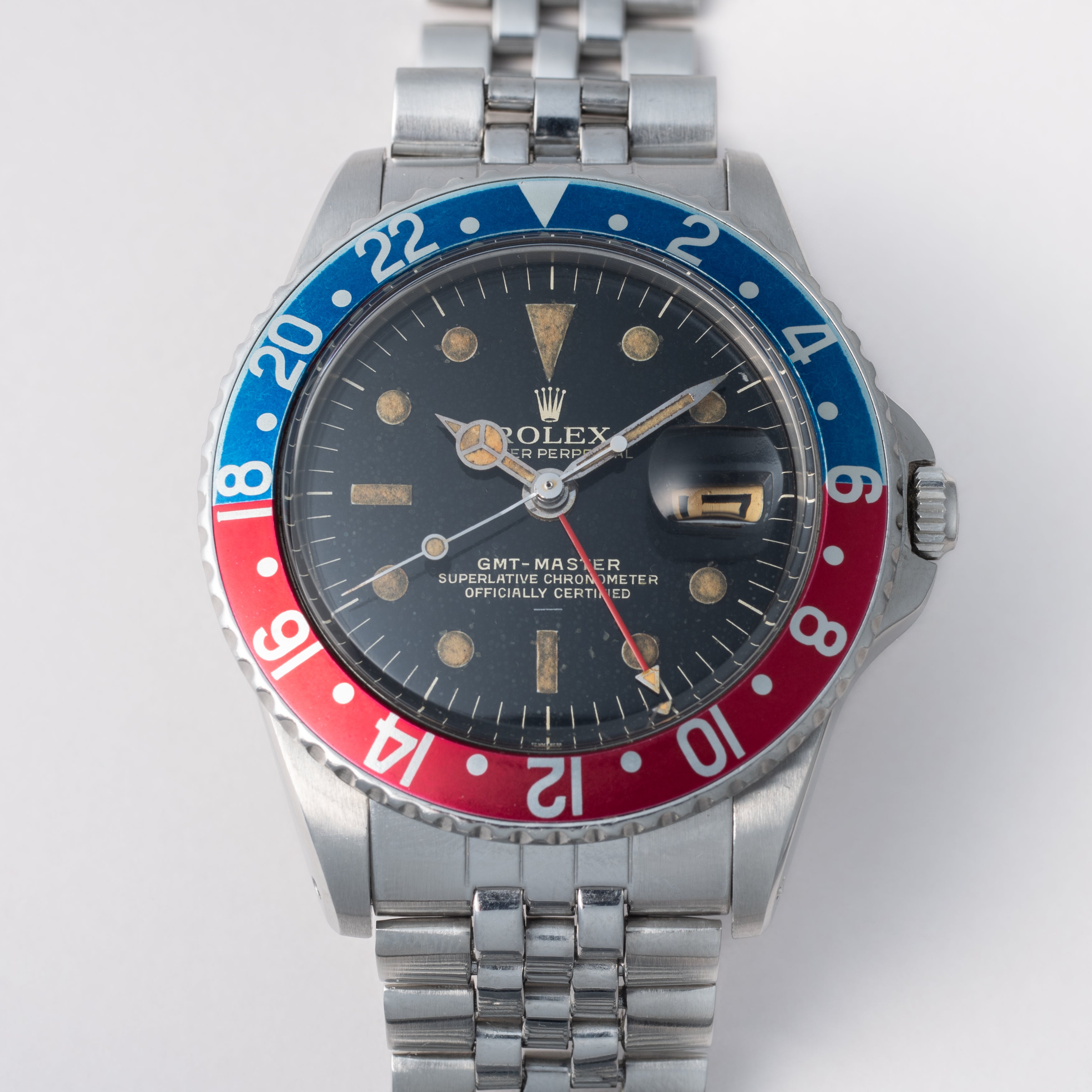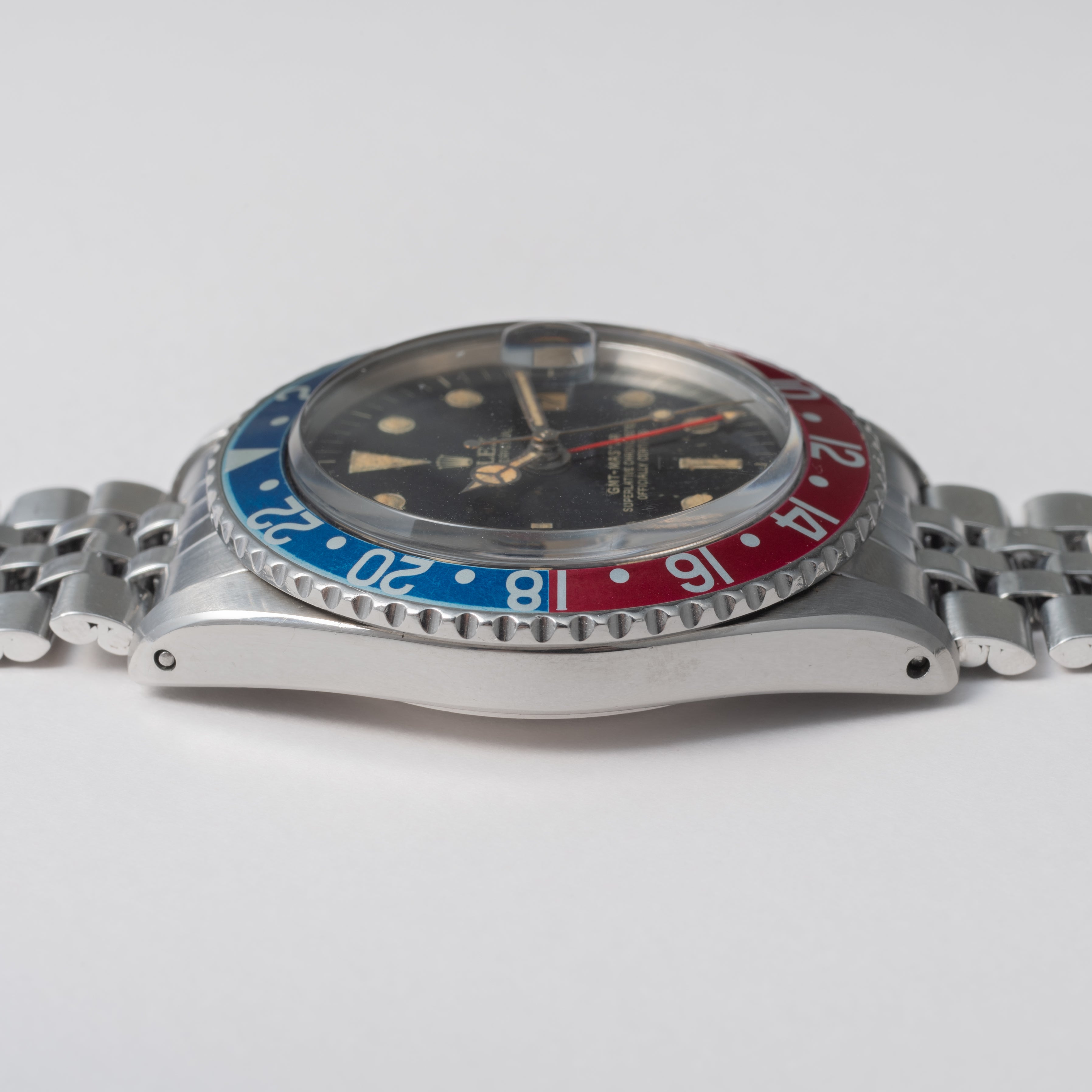 - ヴィンテージ時計の特性上、風防・パッキン・リューズ・バネ棒などの消耗部品は後年メンテナンス過程で交換されている場合がございます。オリジナル性を重視しておりますが、必要に応じて適切な部品にて調整されていますので、よりコレクション性重視のお求めのお客様は事前にご確認ください。