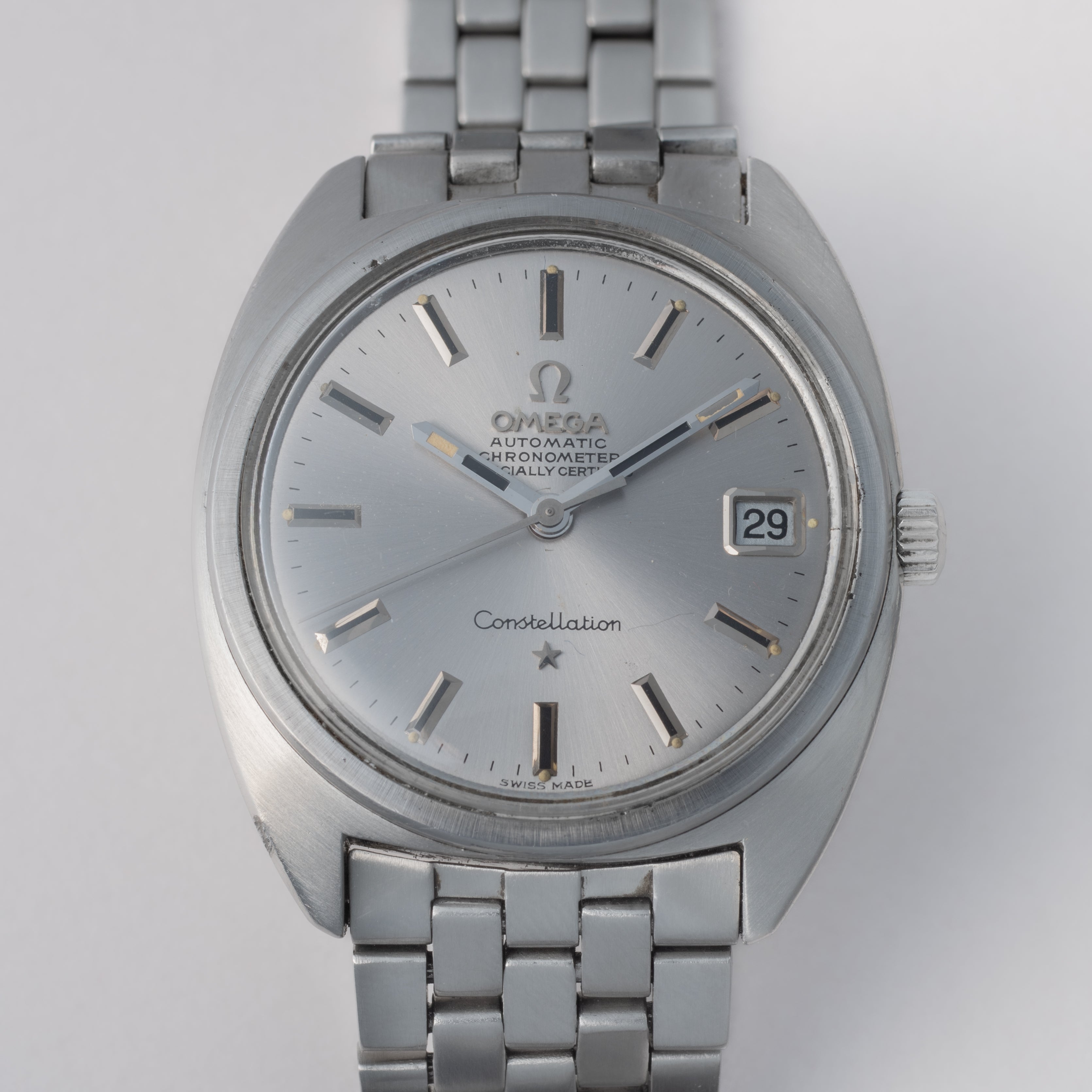 - ヴィンテージ時計の特性上、風防・パッキン・リューズ・バネ棒などの消耗部品は後年メンテナンス過程で交換されている場合がございます。オリジナル性を重視しておりますが、必要に応じて適切な部品にて調整されていますので、よりコレクション性重視のお求めのお客様は事前にご確認ください。