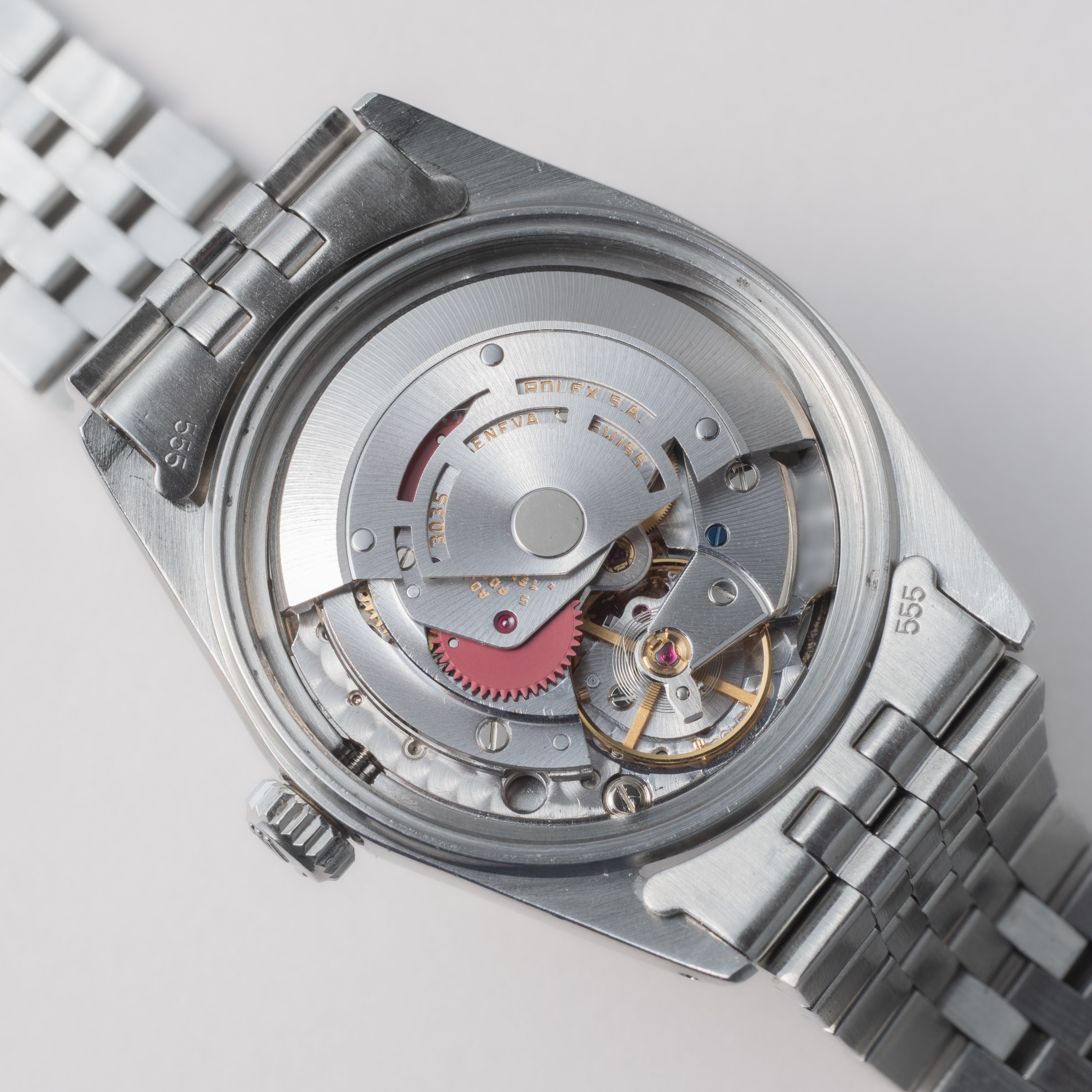 - ヴィンテージ時計の特性上、風防・パッキン・リューズ・バネ棒などの消耗部品は後年メンテナンス過程で交換されている場合がございます。オリジナル性を重視しておりますが、必要に応じて適切な部品にて調整されていますので、よりコレクション性重視のお求めのお客様は事前にご確認ください。