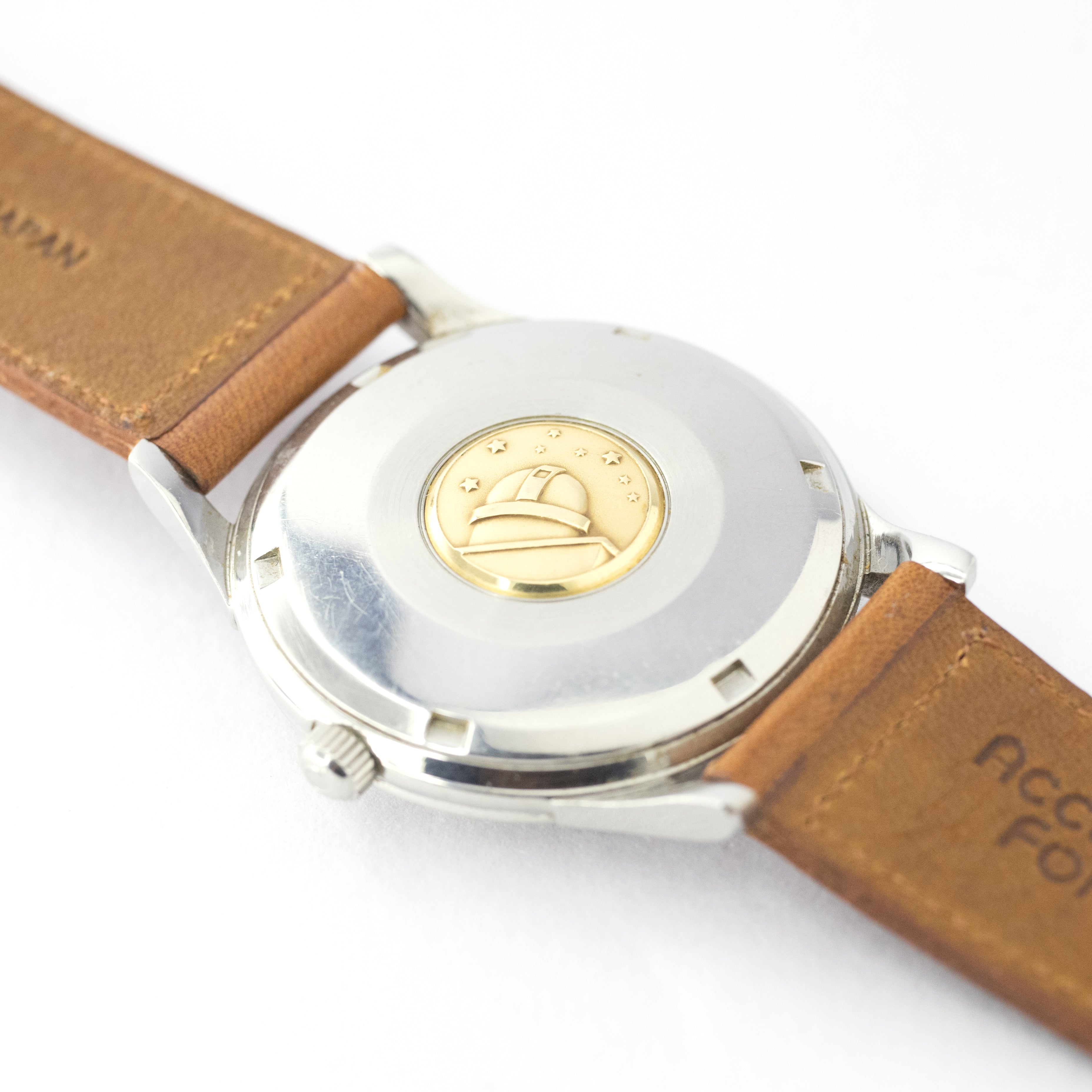 - ヴィンテージ時計の特性上、風防・パッキン・リューズ・バネ棒などの消耗部品は後年メンテナンス過程で交換されている場合がございます。オリジナル性を重視しておりますが、必要に応じて適切な部品にて調整されていますので、よりコレクション性重視のお求めのお客様は事前にご確認ください。