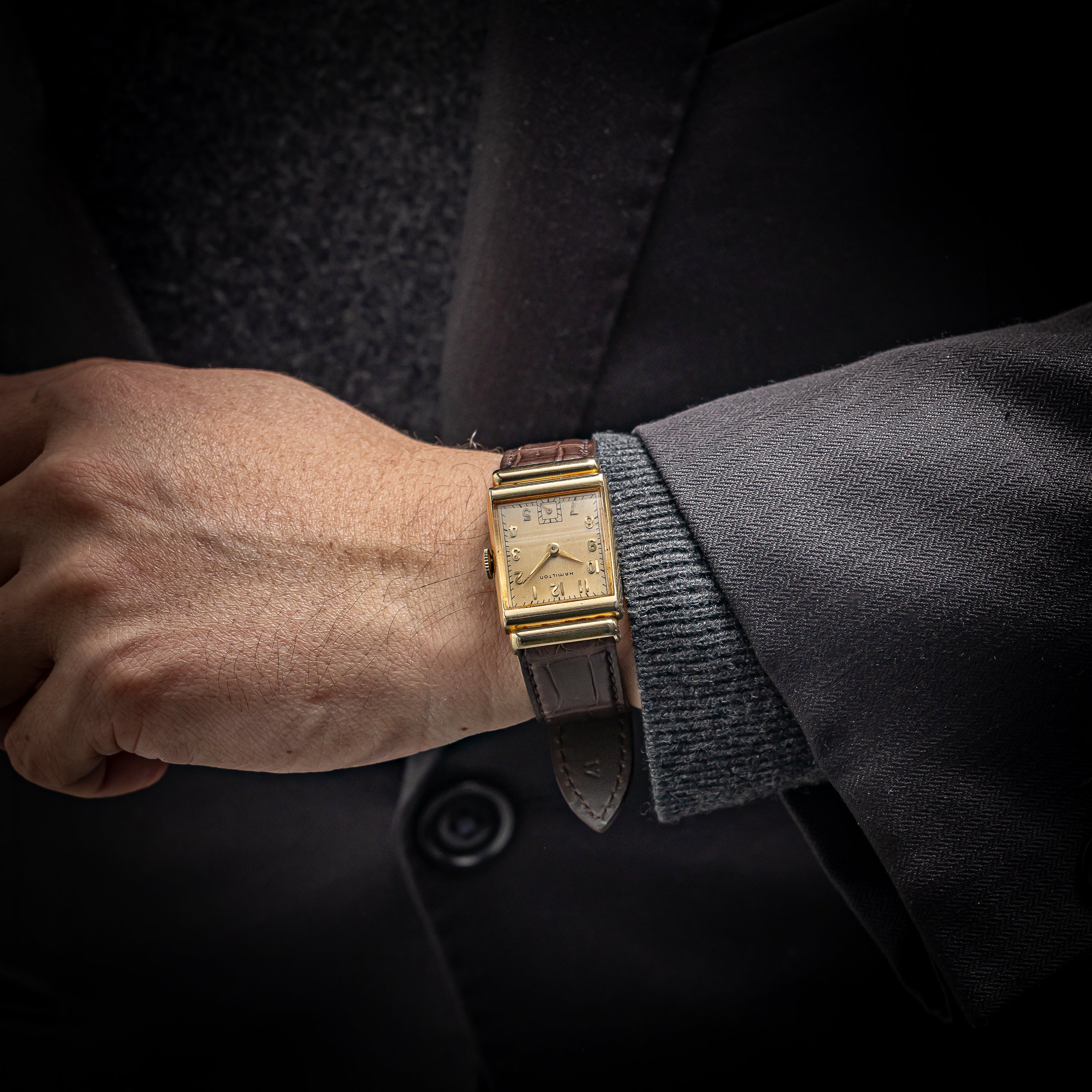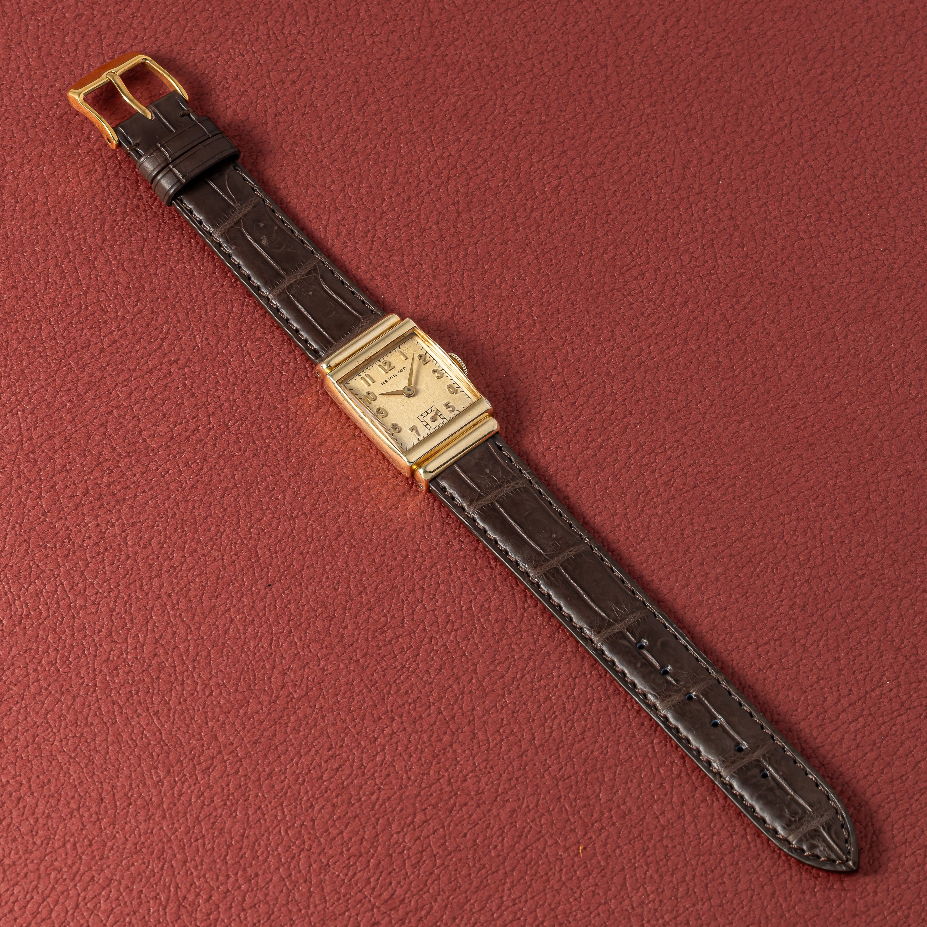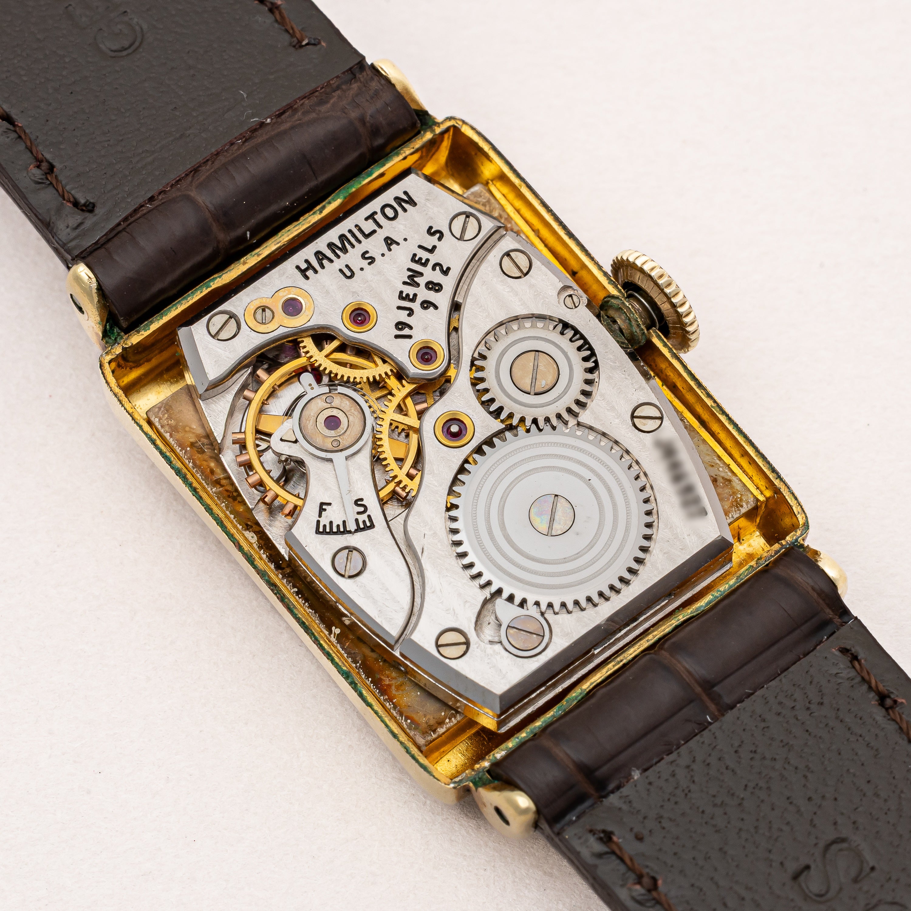 ハミルトン 1940年代製 角金 14金張りレクタンギュラーケース Cal.982 19石手巻き