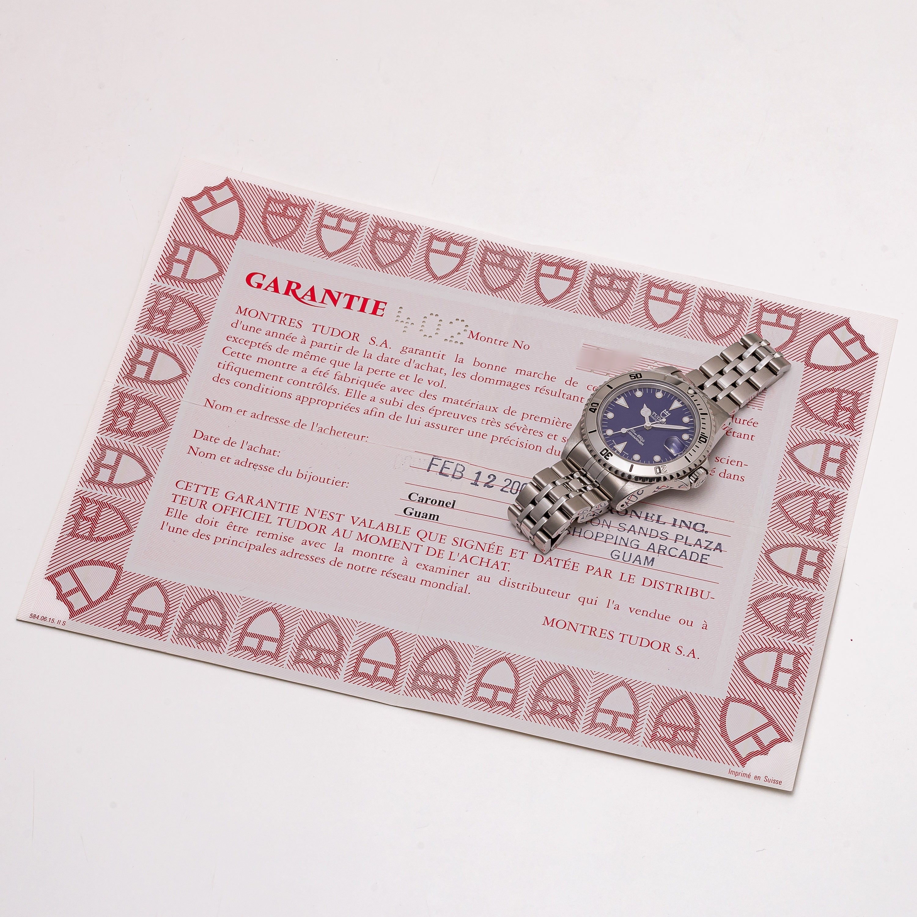 チューダー サブマリーナー 36㎜ミッドサイズ ブルーダイヤル 1999年製 Ref.75190 箱、ギャラ付き