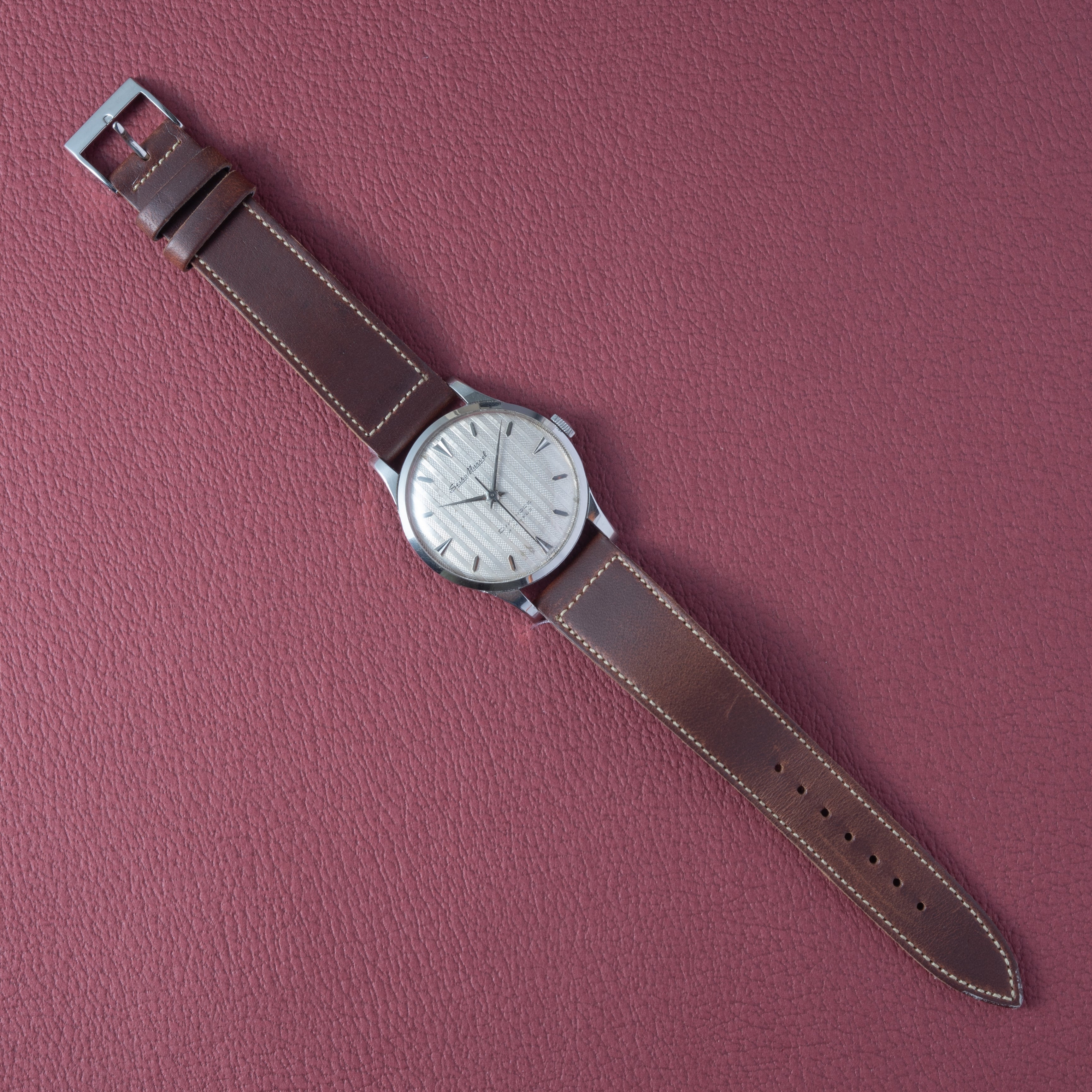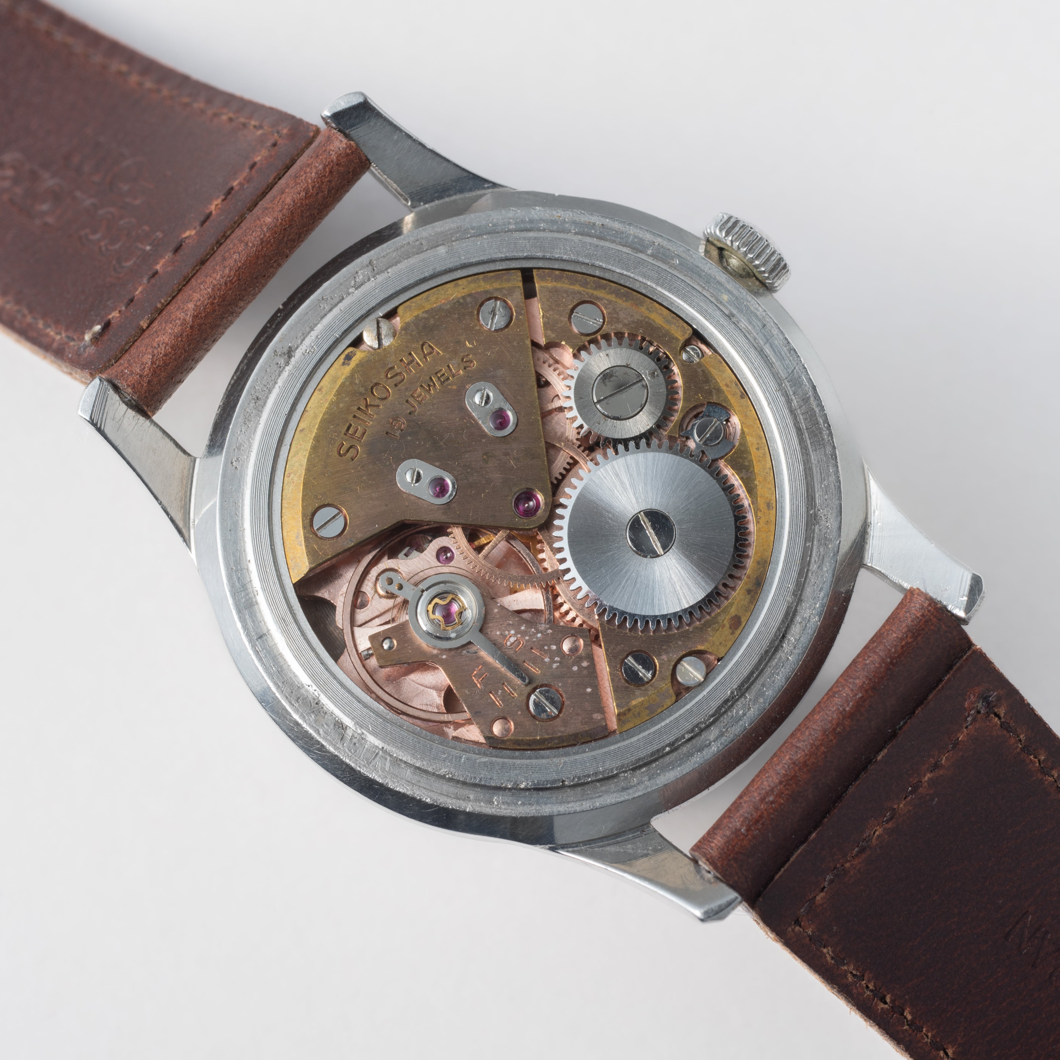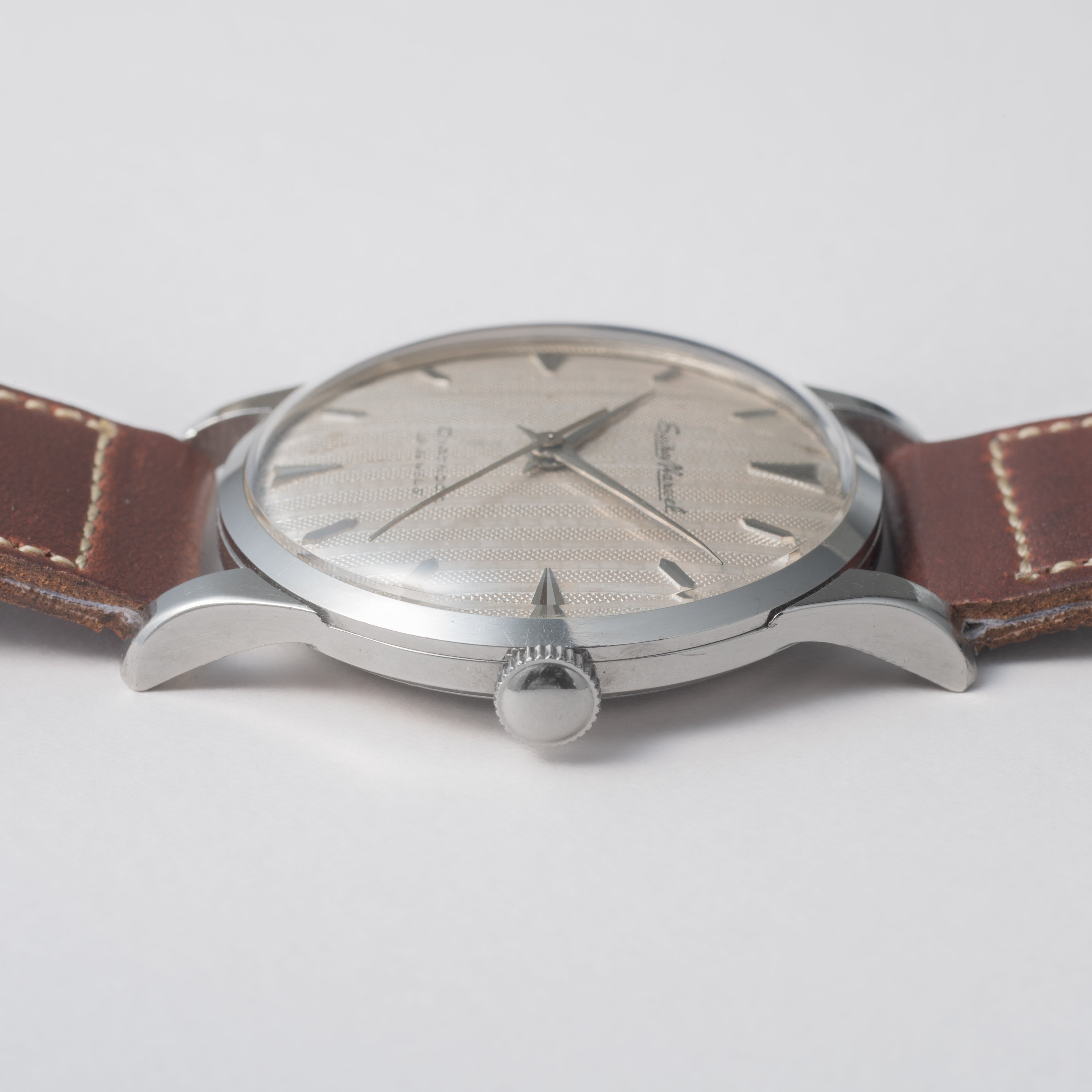 - ヴィンテージ時計の特性上、風防・パッキン・リューズ・バネ棒などの消耗部品は後年メンテナンス過程で交換されている場合がございます。オリジナル性を重視しておりますが、必要に応じて適切な部品にて調整されていますので、よりコレクション性重視のお求めのお客様は事前にご確認ください。