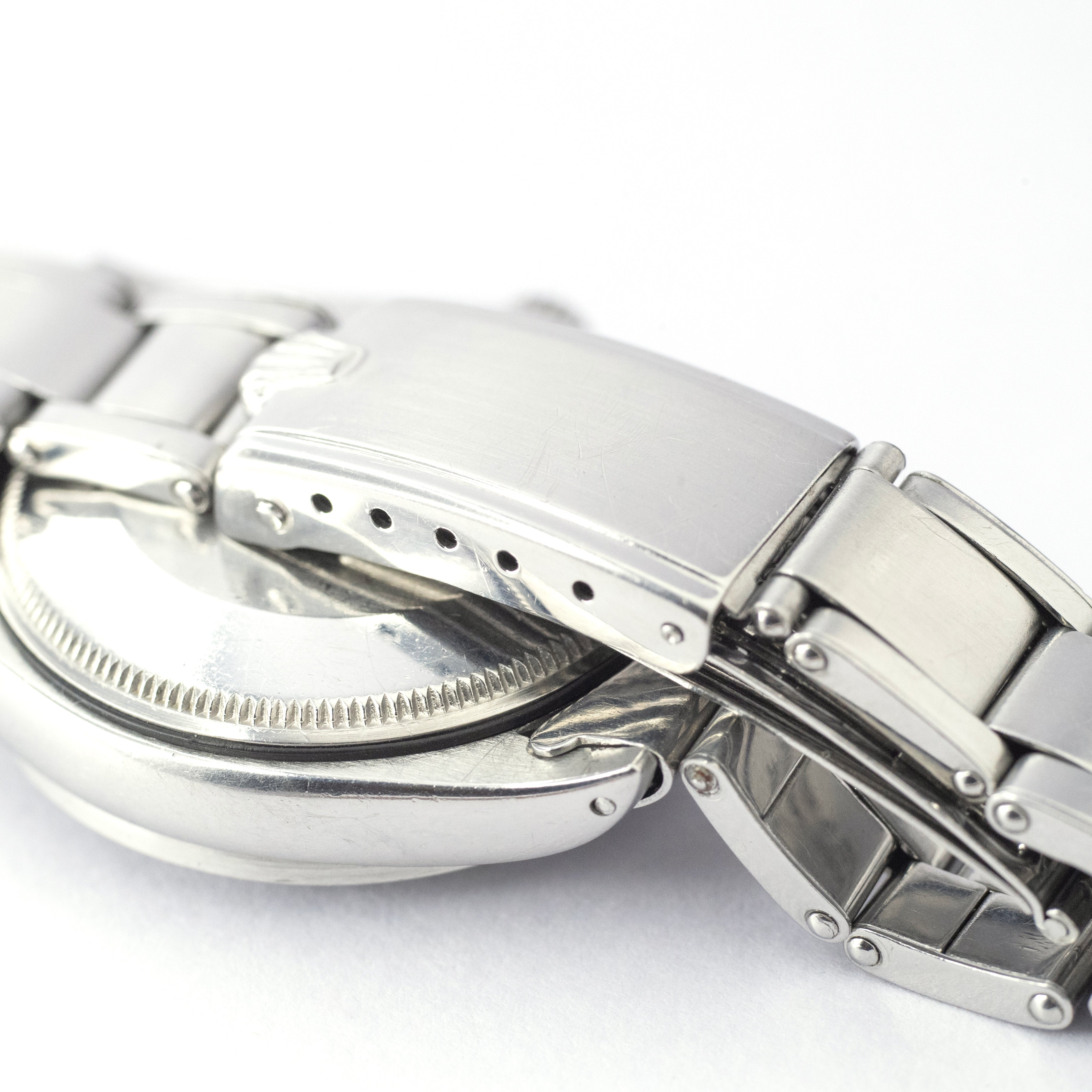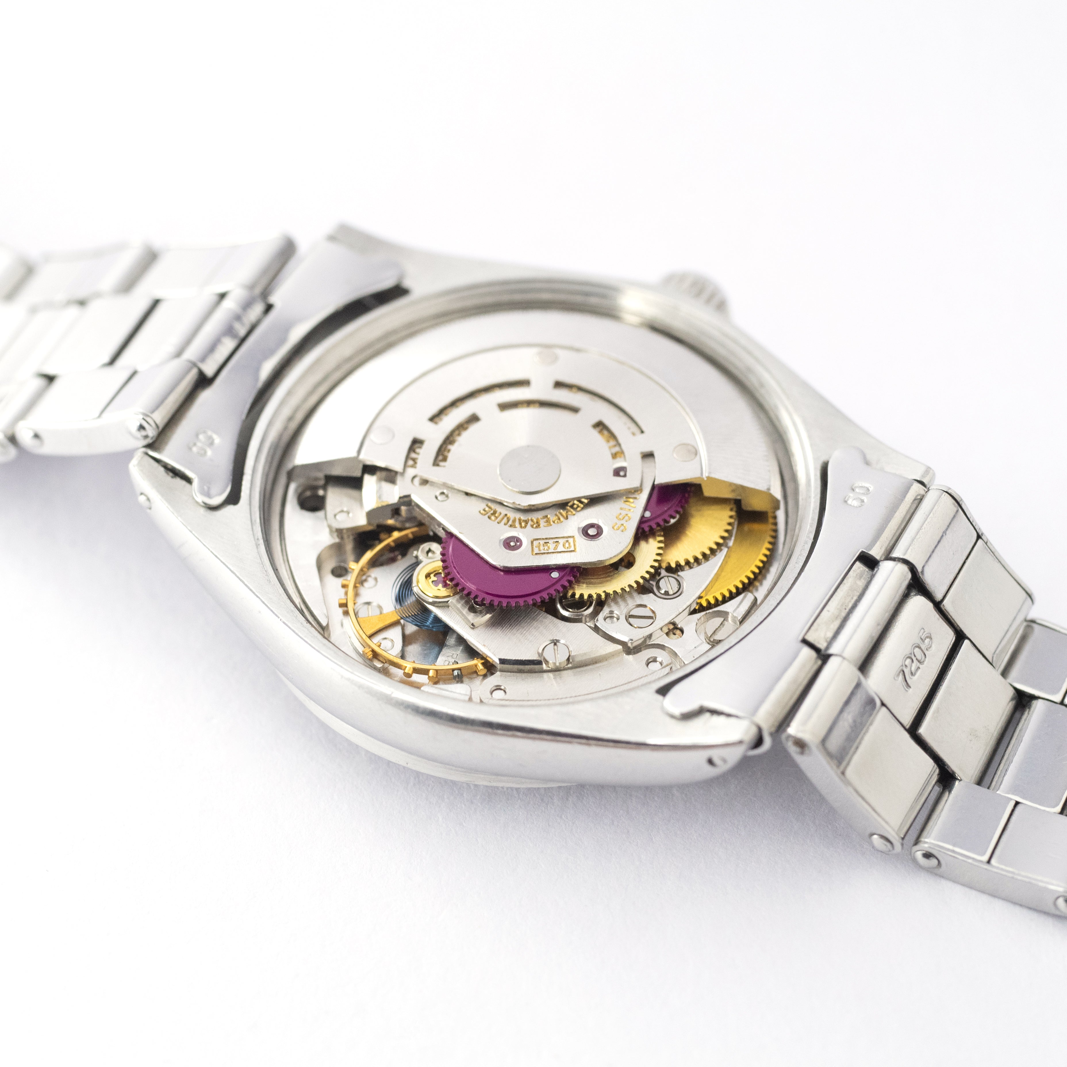 - ヴィンテージ時計の特性上、風防・パッキン・リューズ・バネ棒などの消耗部品は後年メンテナンス過程で交換されている場合がございます。オリジナル性を重視しておりますが、必要に応じて適切な部品にて調整されていますので、よりコレクション性重視のお求めのお客様は事前にご確認ください。