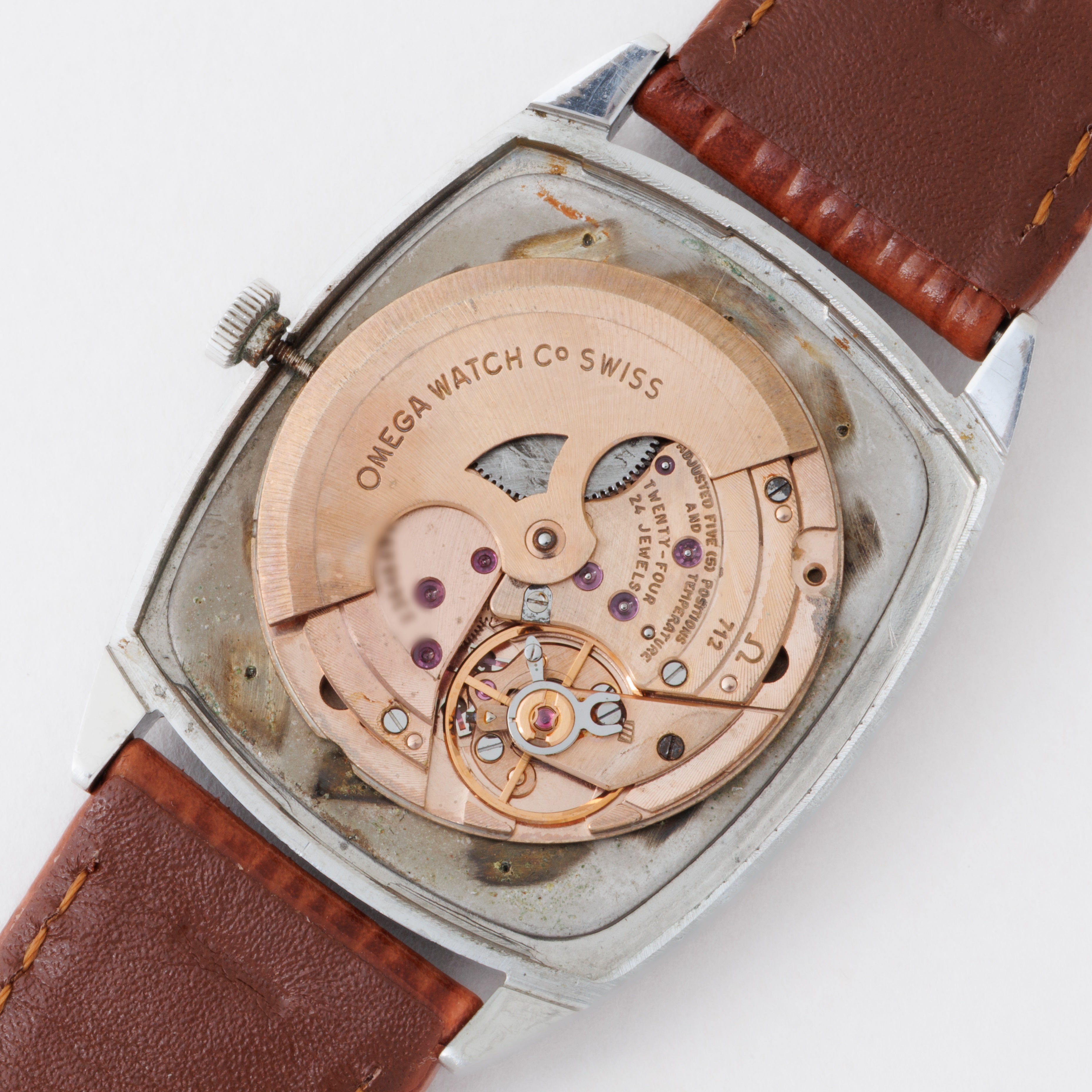 - ヴィンテージ時計の特性上、風防・パッキン・リューズ・バネ棒などの消耗部品は後年メンテナンス過程で交換されている場合がございます。オリジナル性を重視しておりますが、必要に応じて適切な部品にて調整されていますので、よりコレクション性重視のお求めのお客様は事前にご確認ください。