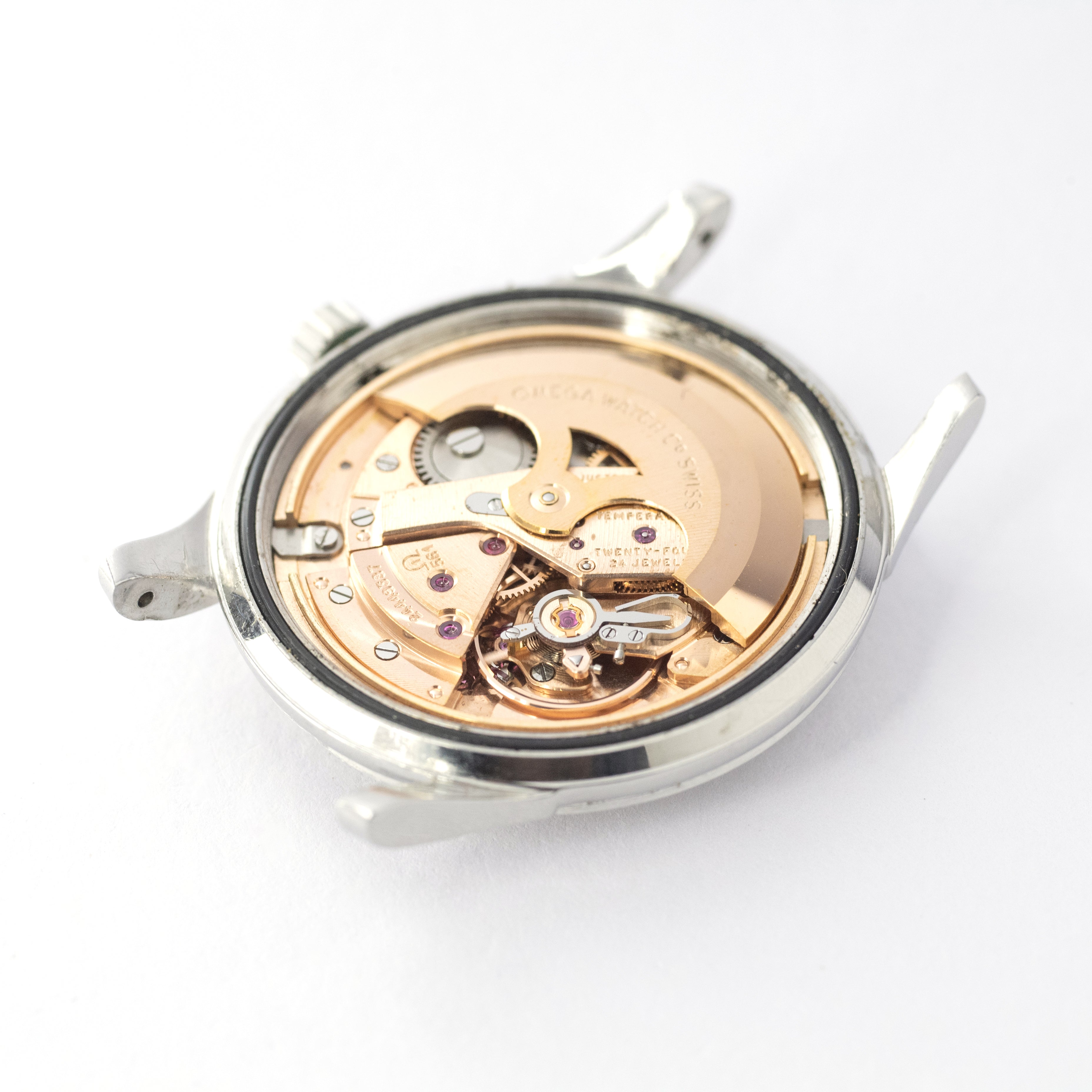 - ヴィンテージ時計の特性上、風防・パッキン・リューズ・バネ棒などの消耗部品は後年メンテナンス過程で交換されている場合がございます。オリジナル性を重視しておりますが、必要に応じて適切な部品にて調整されていますので、よりコレクション性重視のお求めのお客様は事前にご確認ください。