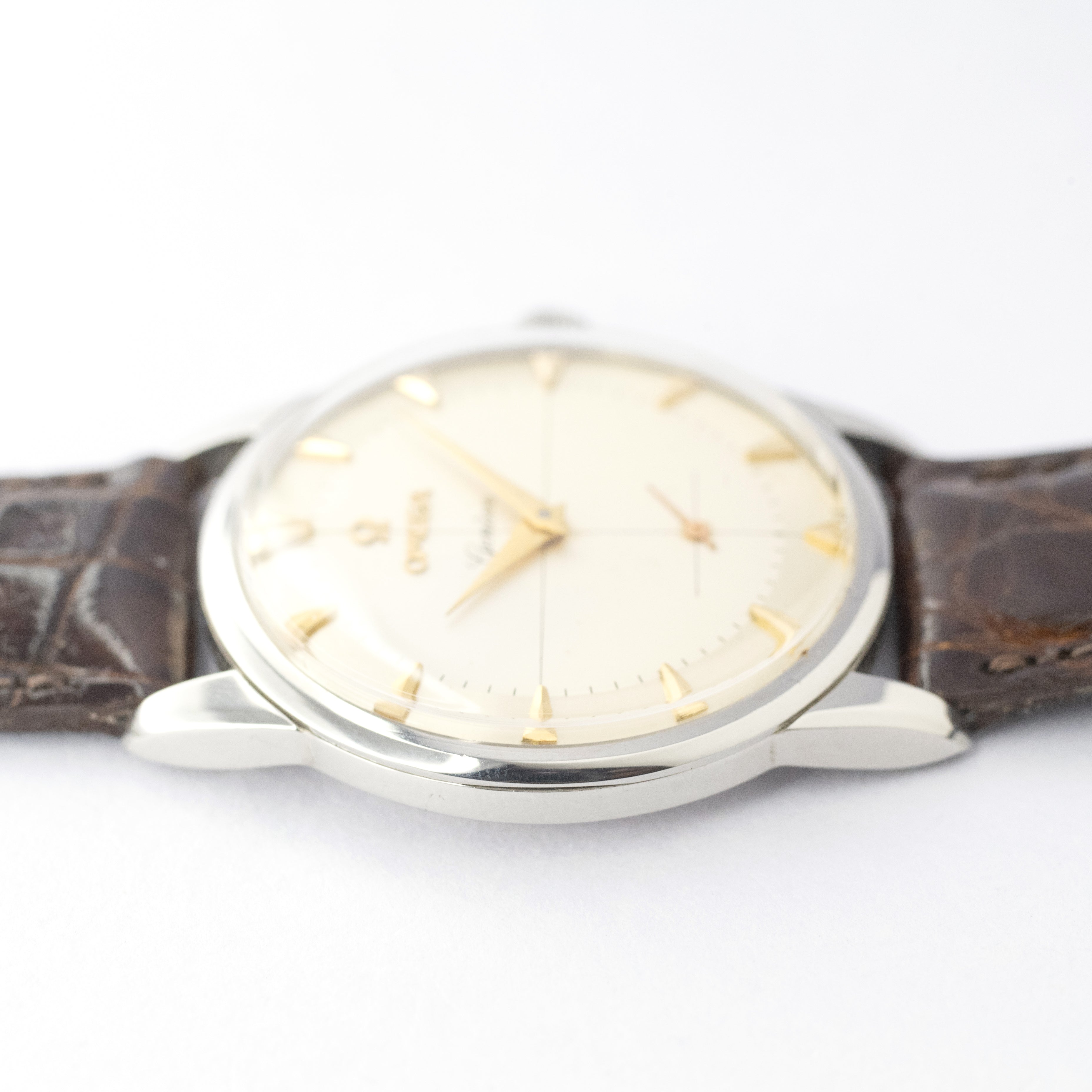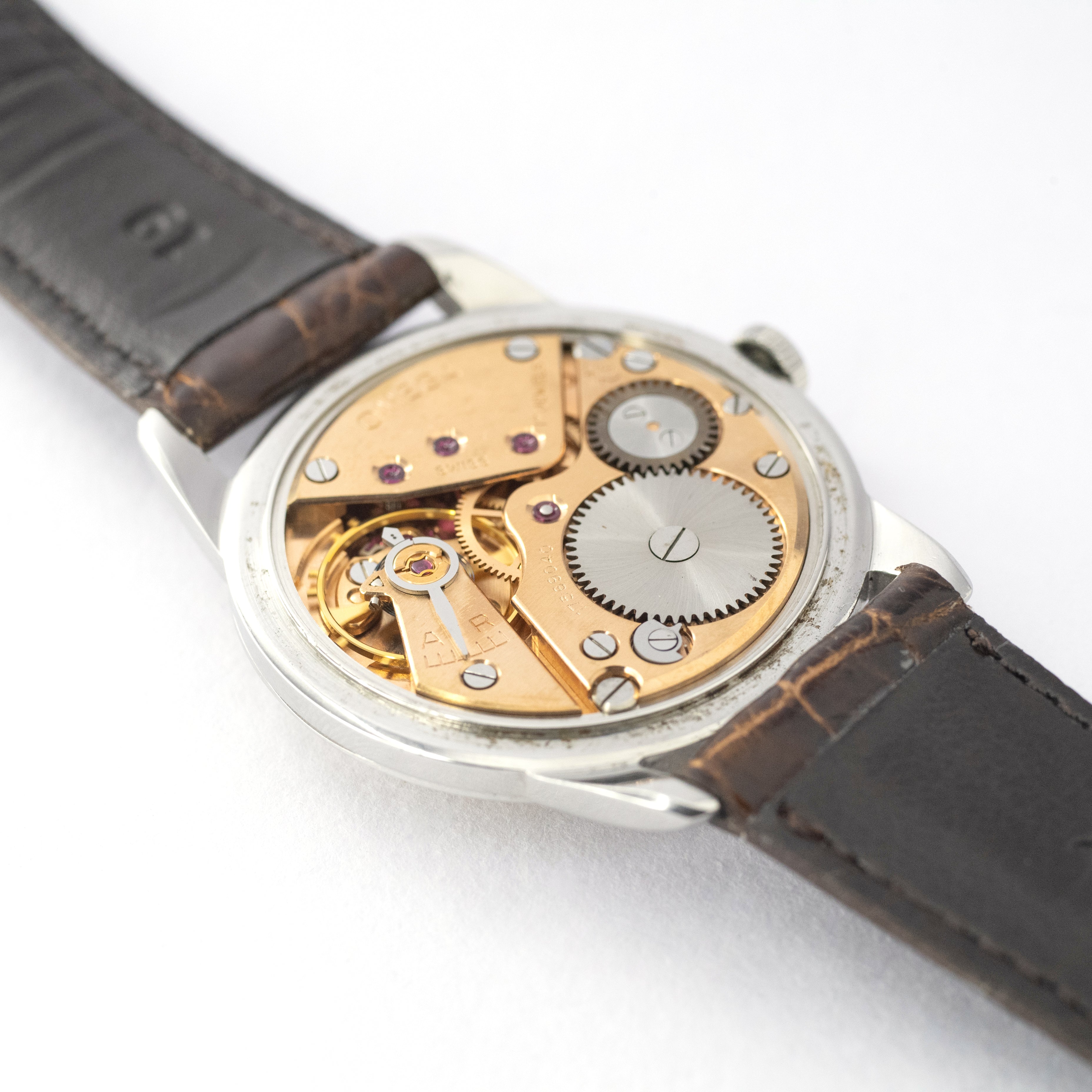 - ヴィンテージ時計の特性上、風防・パッキン・リューズ・バネ棒などの消耗部品は後年メンテナンス過程で交換されている場合がございます。オリジナル性を重視しておりますが、必要に応じて適切な部品にて調整されていますので、よりコレクション性重視のお求めのお客様は事前にご確認ください。