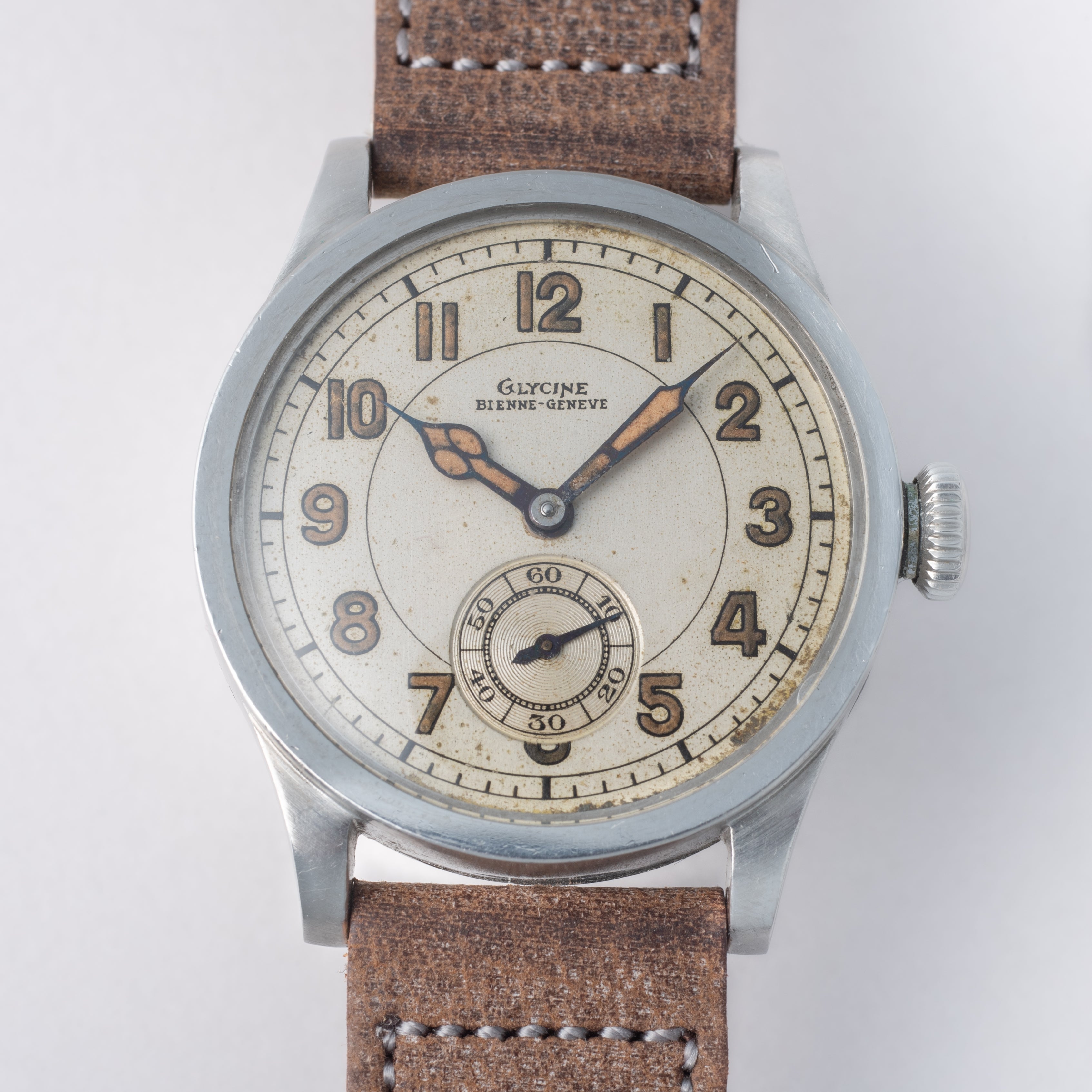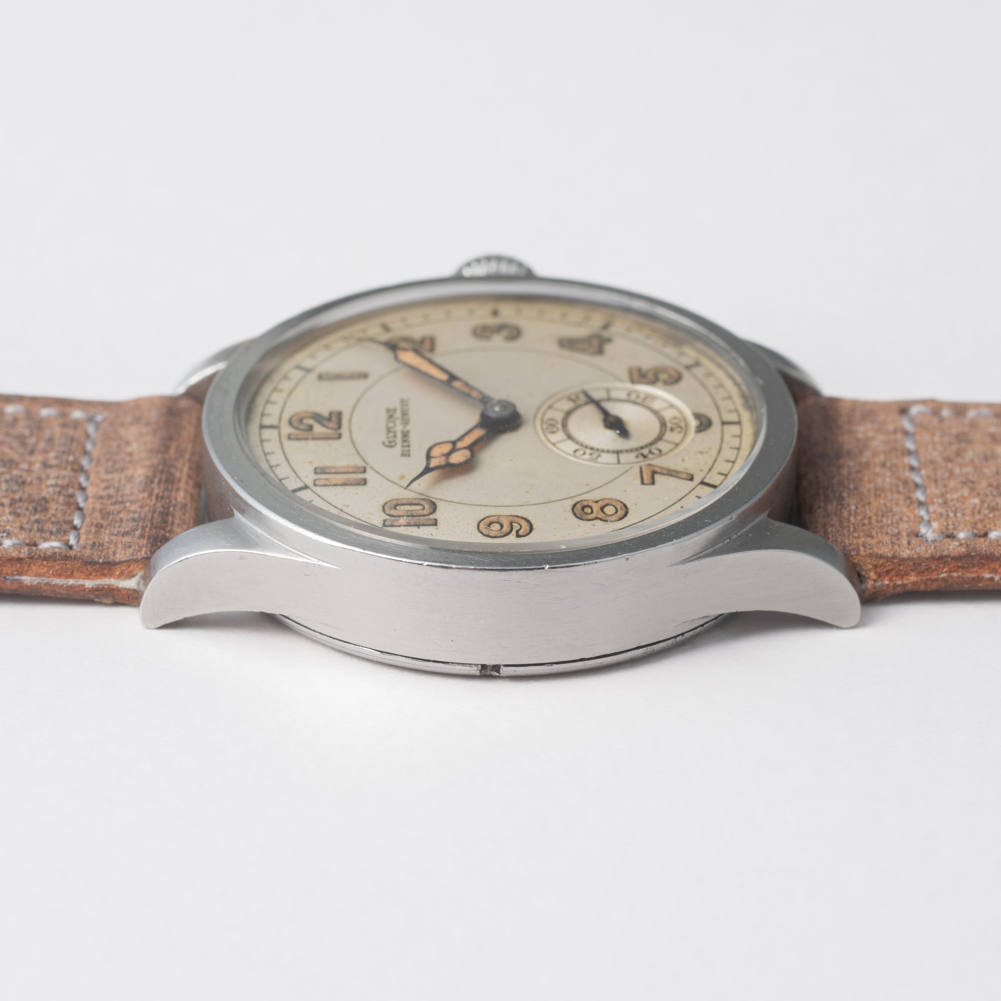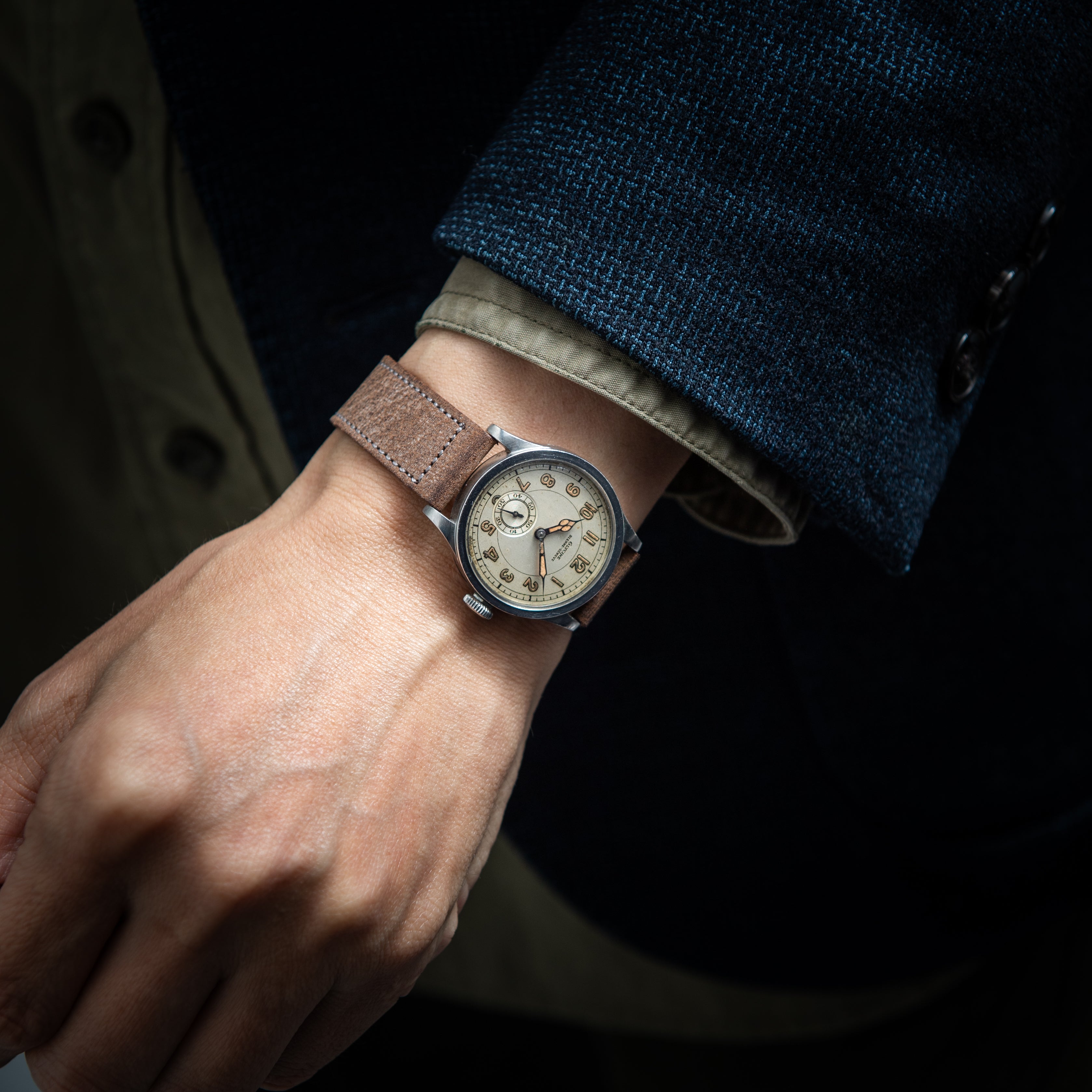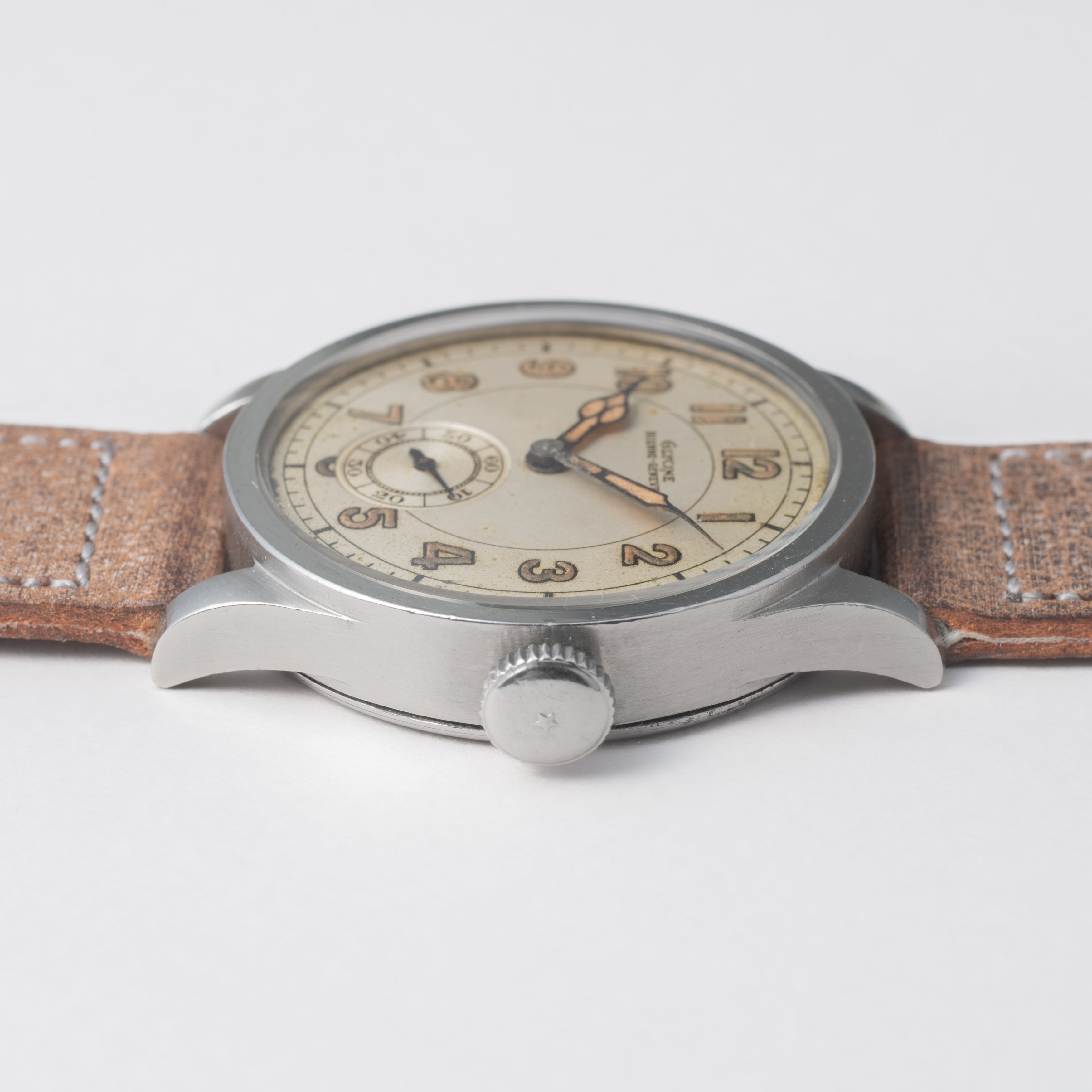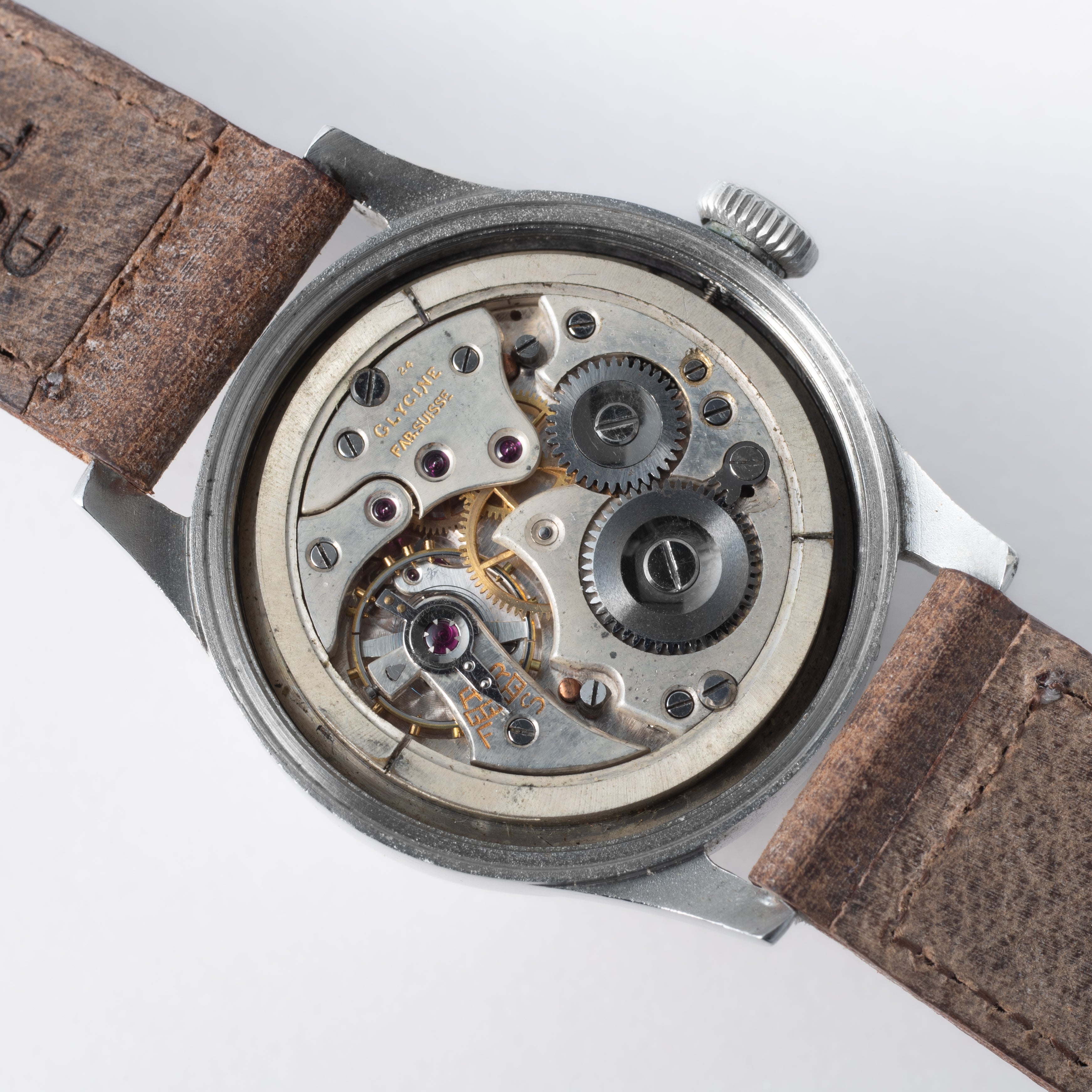 - ヴィンテージ時計の特性上、風防・パッキン・リューズ・バネ棒などの消耗部品は後年メンテナンス過程で交換されている場合がございます。オリジナル性を重視しておりますが、必要に応じて適切な部品にて調整されていますので、よりコレクション性重視のお求めのお客様は事前にご確認ください。