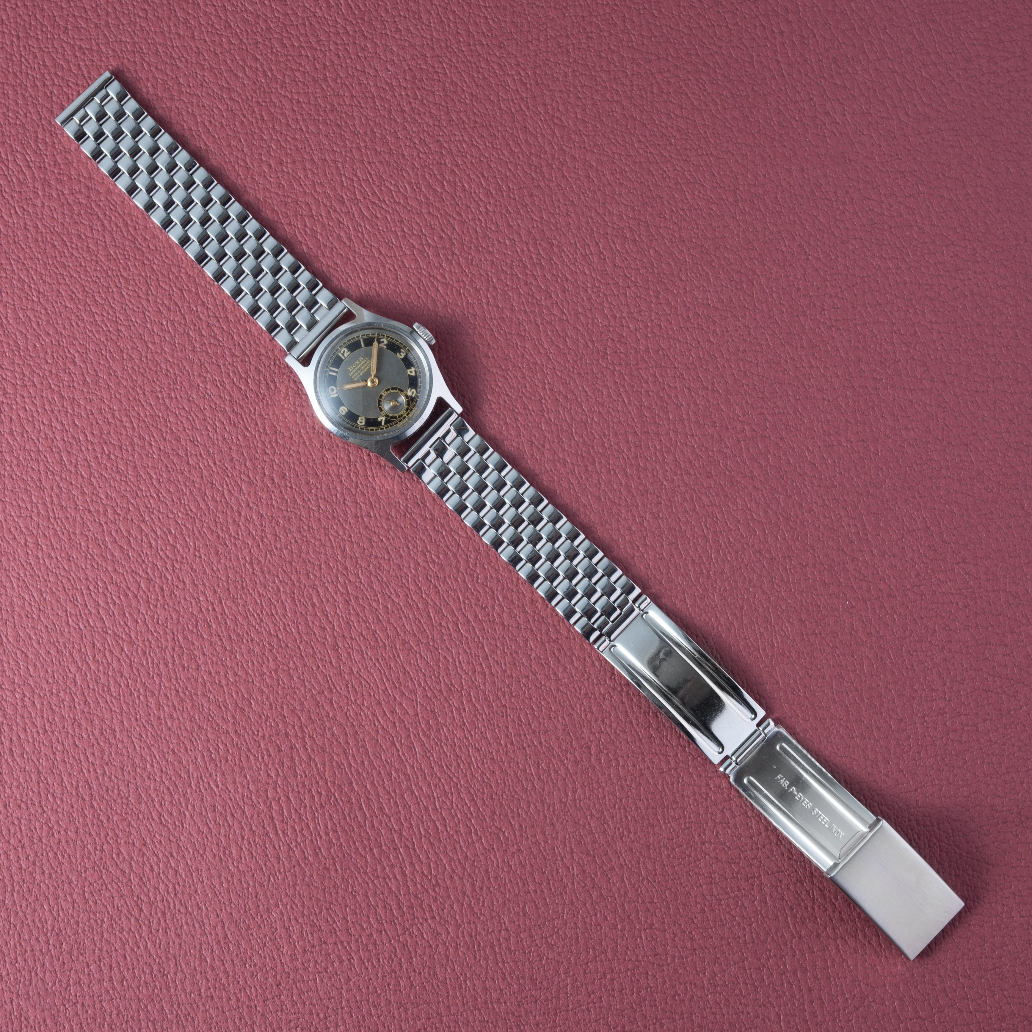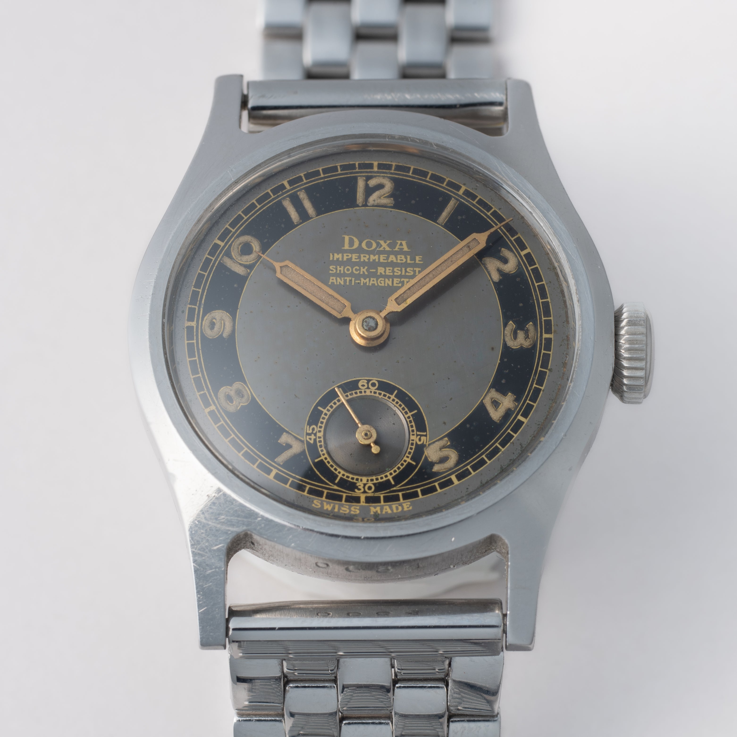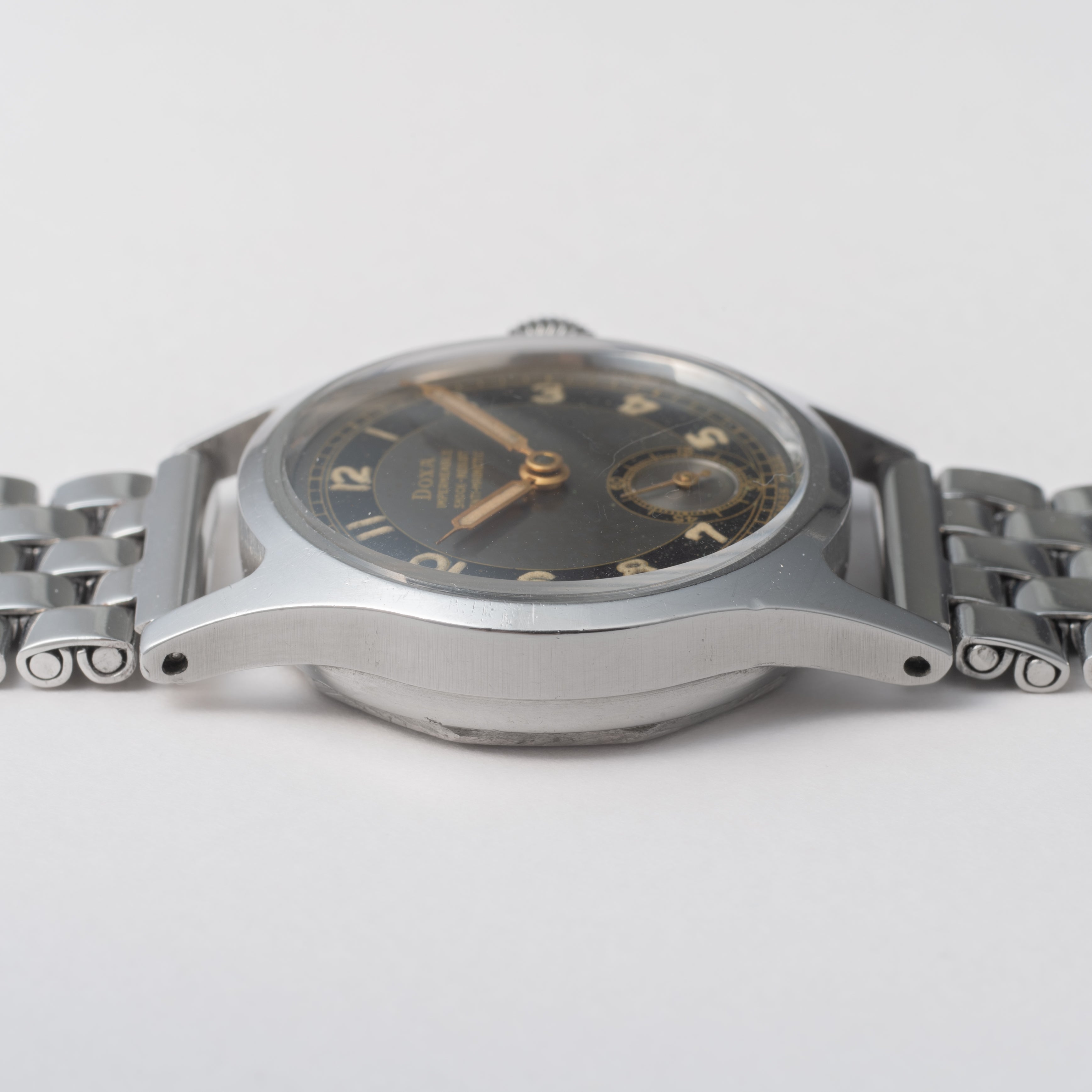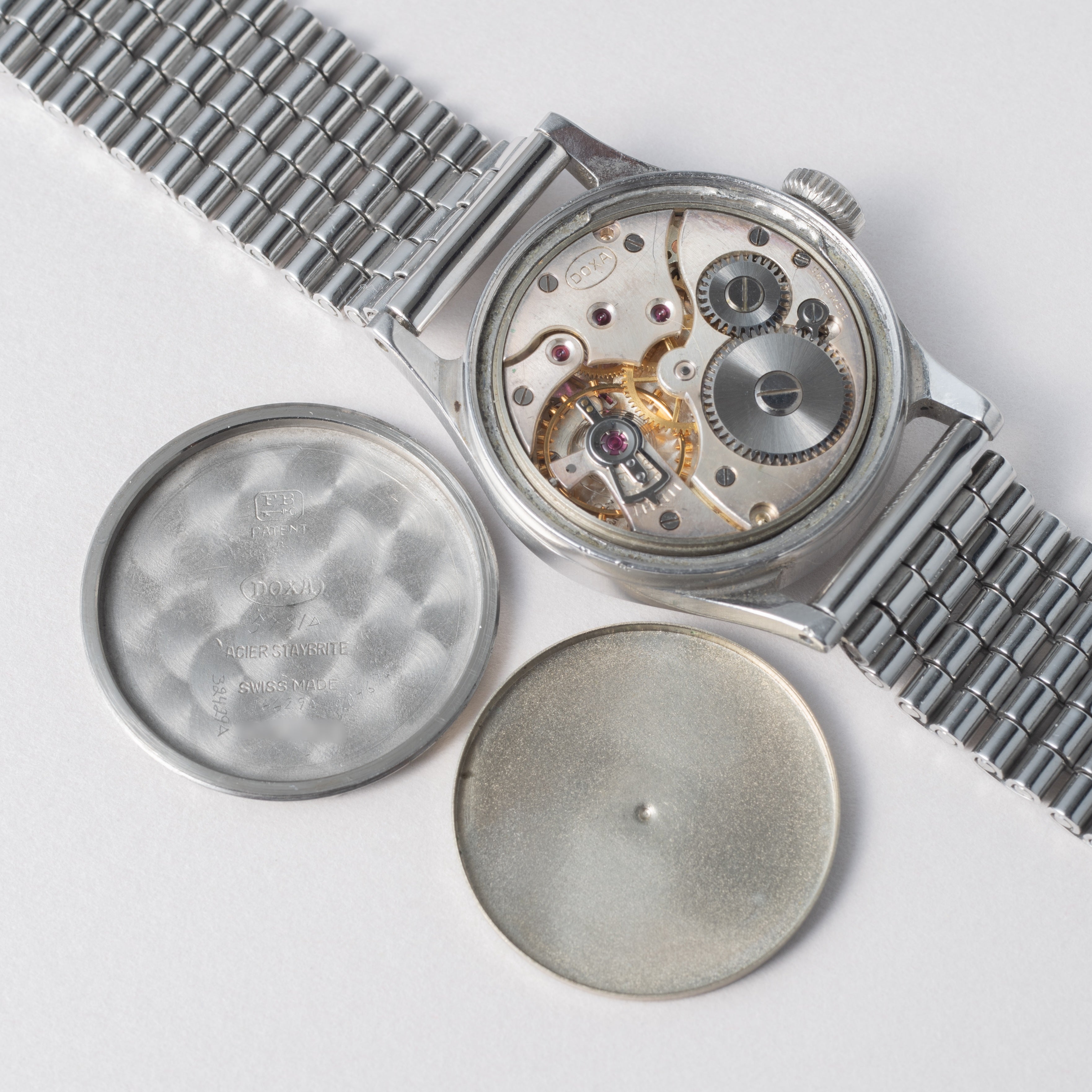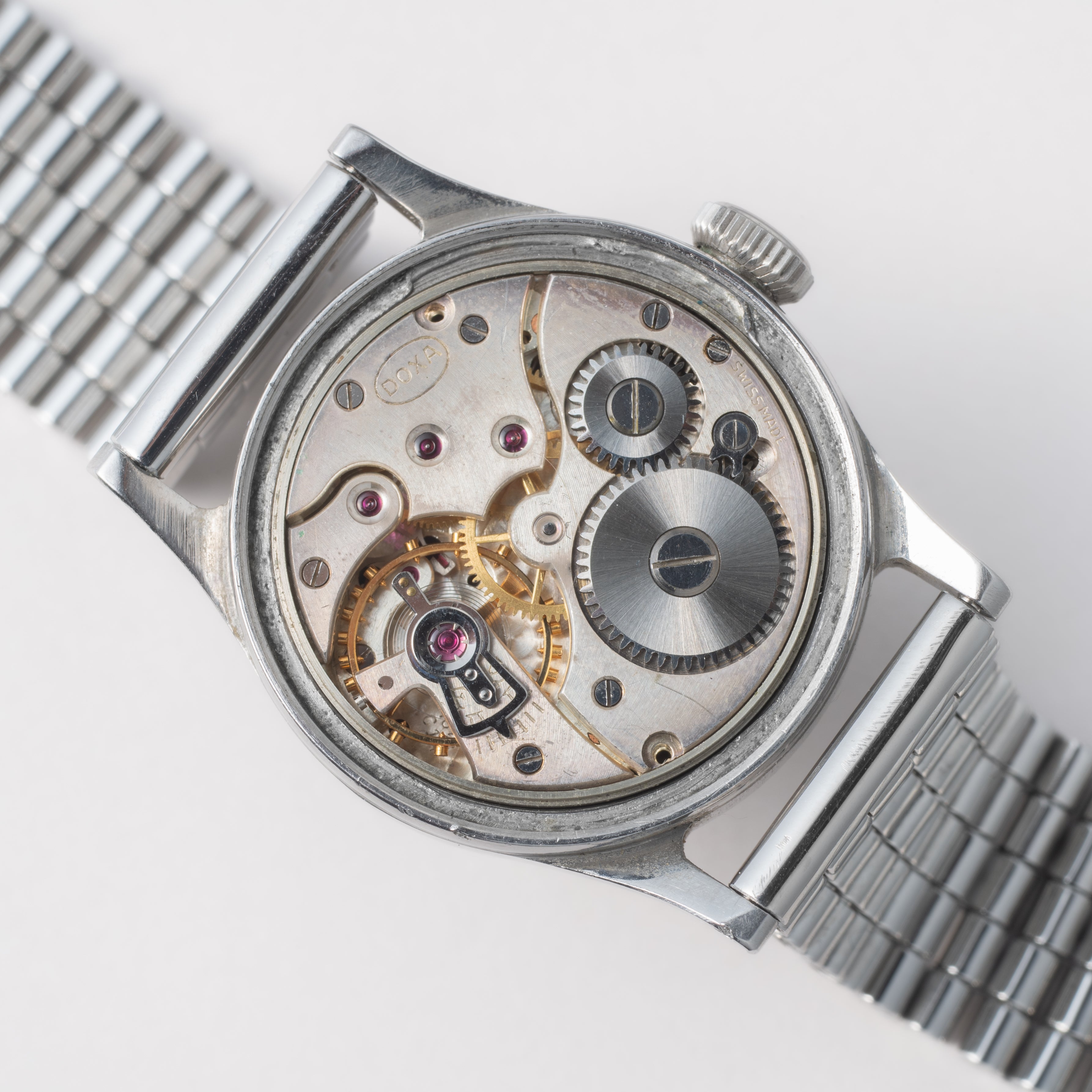 - ヴィンテージ時計の特性上、風防・パッキン・リューズ・バネ棒などの消耗部品は後年メンテナンス過程で交換されている場合がございます。オリジナル性を重視しておりますが、必要に応じて適切な部品にて調整されていますので、よりコレクション性重視のお求めのお客様は事前にご確認ください。