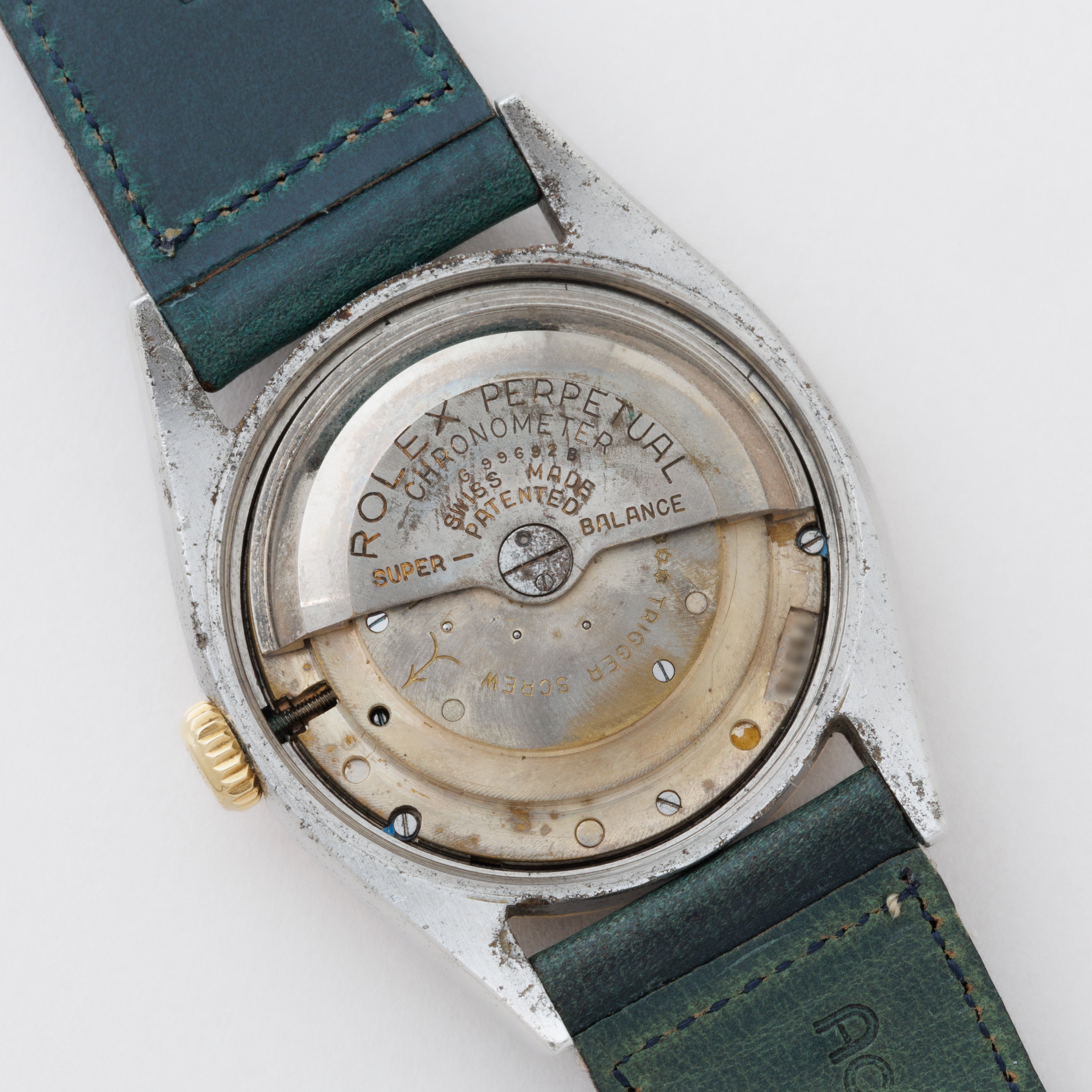 - ヴィンテージ時計の特性上、風防・パッキン・リューズ・バネ棒などの消耗部品は後年メンテナンス過程で交換されている場合がございます。オリジナル性を重視しておりますが、必要に応じて適切な部品にて調整されていますので、よりコレクション性重視のお求めのお客様は事前にご確認ください。