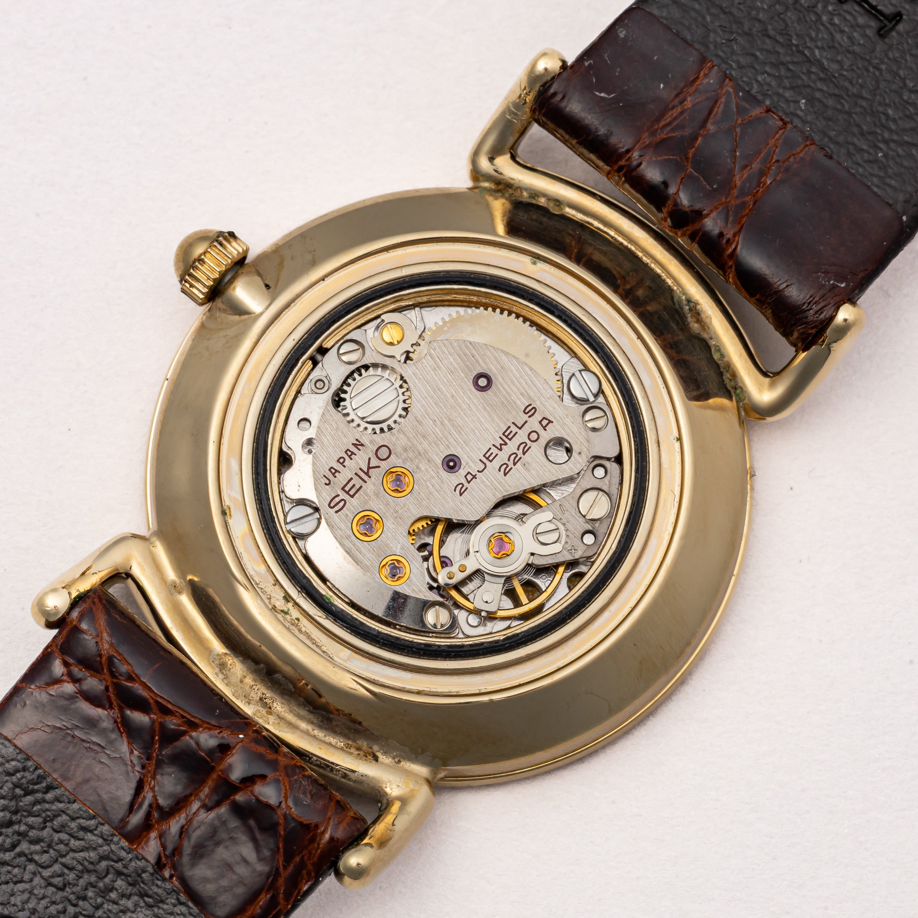 - ヴィンテージ時計の特性上、風防・パッキン・リューズ・バネ棒などの消耗部品は後年メンテナンス過程で交換されている場合がございます。オリジナル性を重視しておりますが、必要に応じて適切な部品にて調整されていますので、よりコレクション性重視のお求めのお客様は事前にご確認ください。