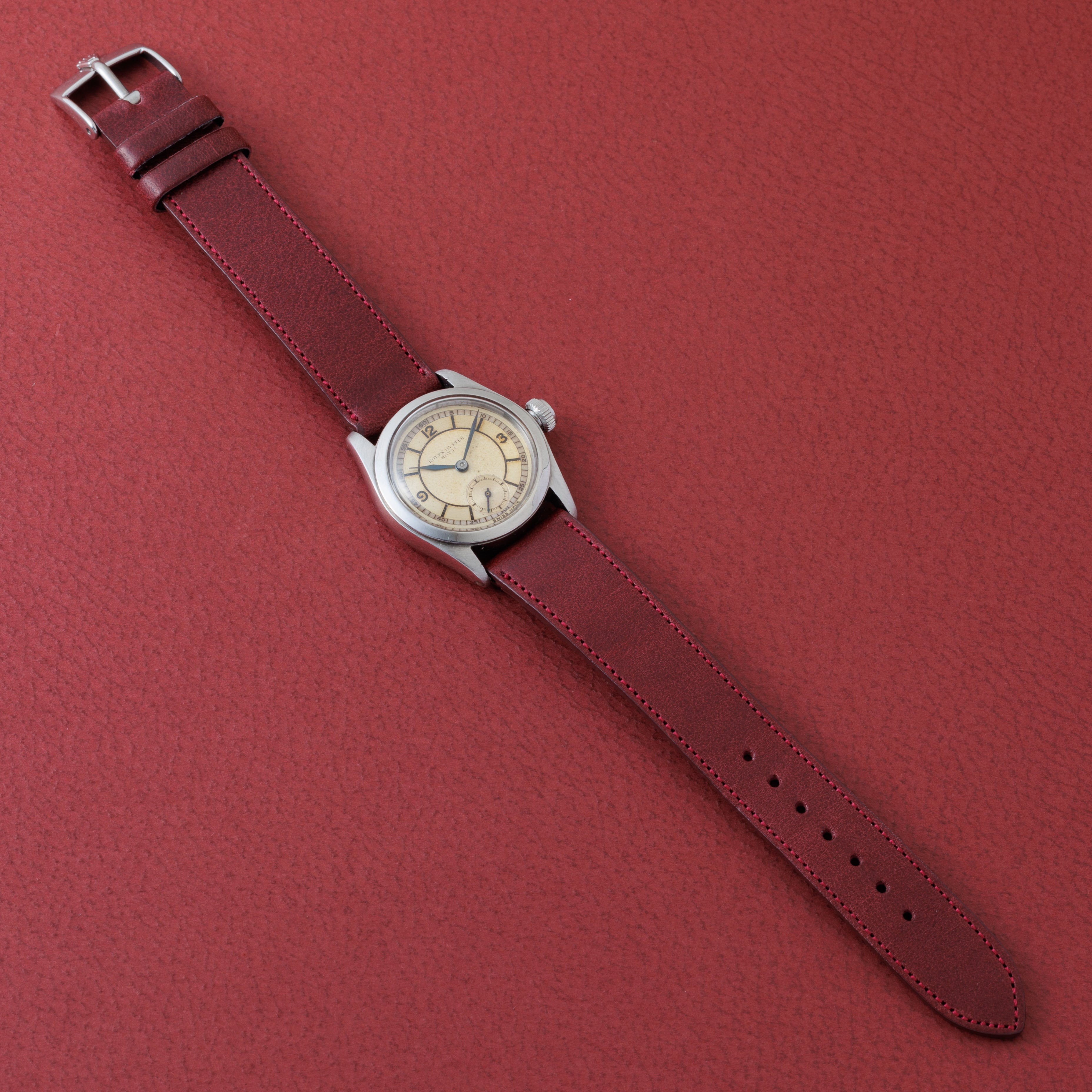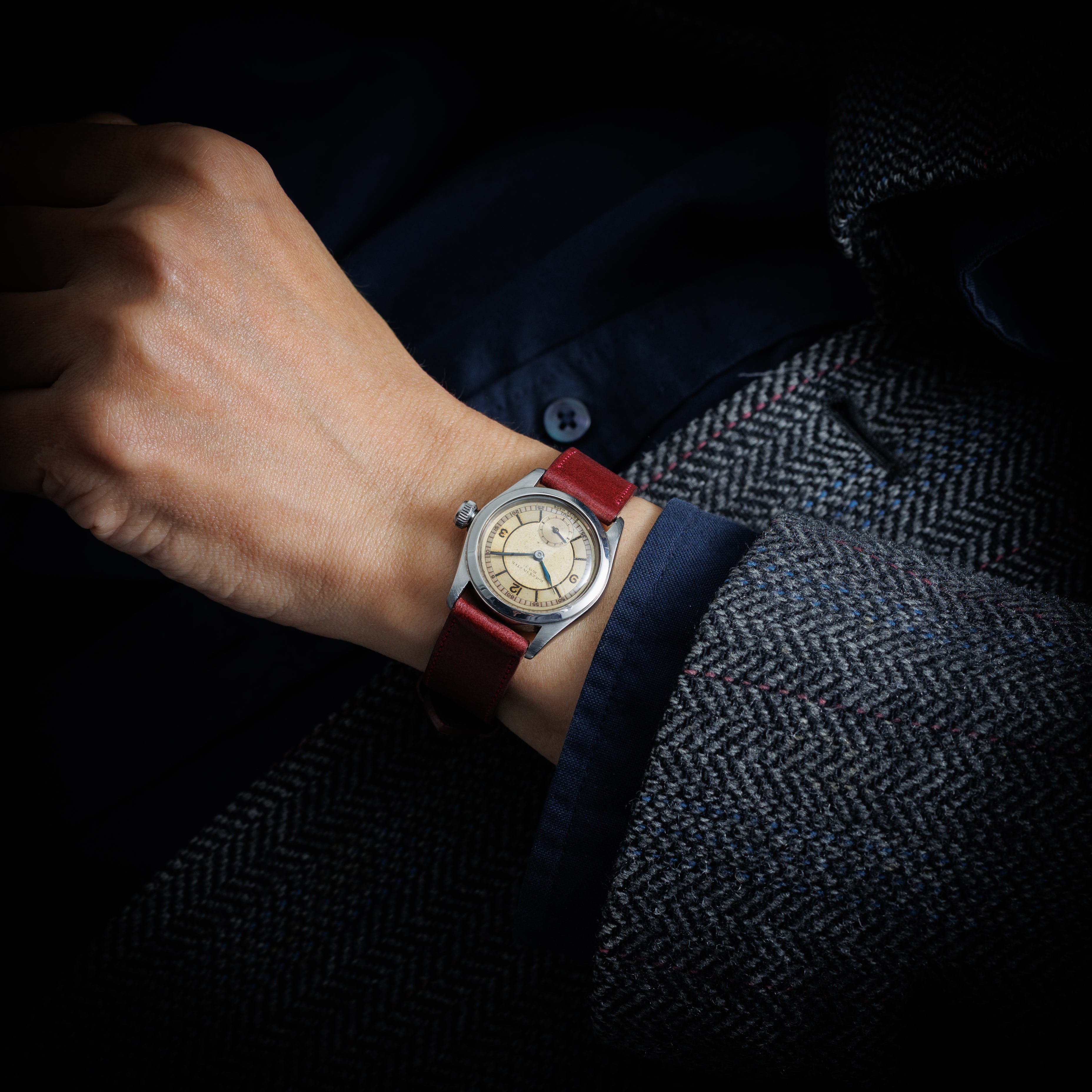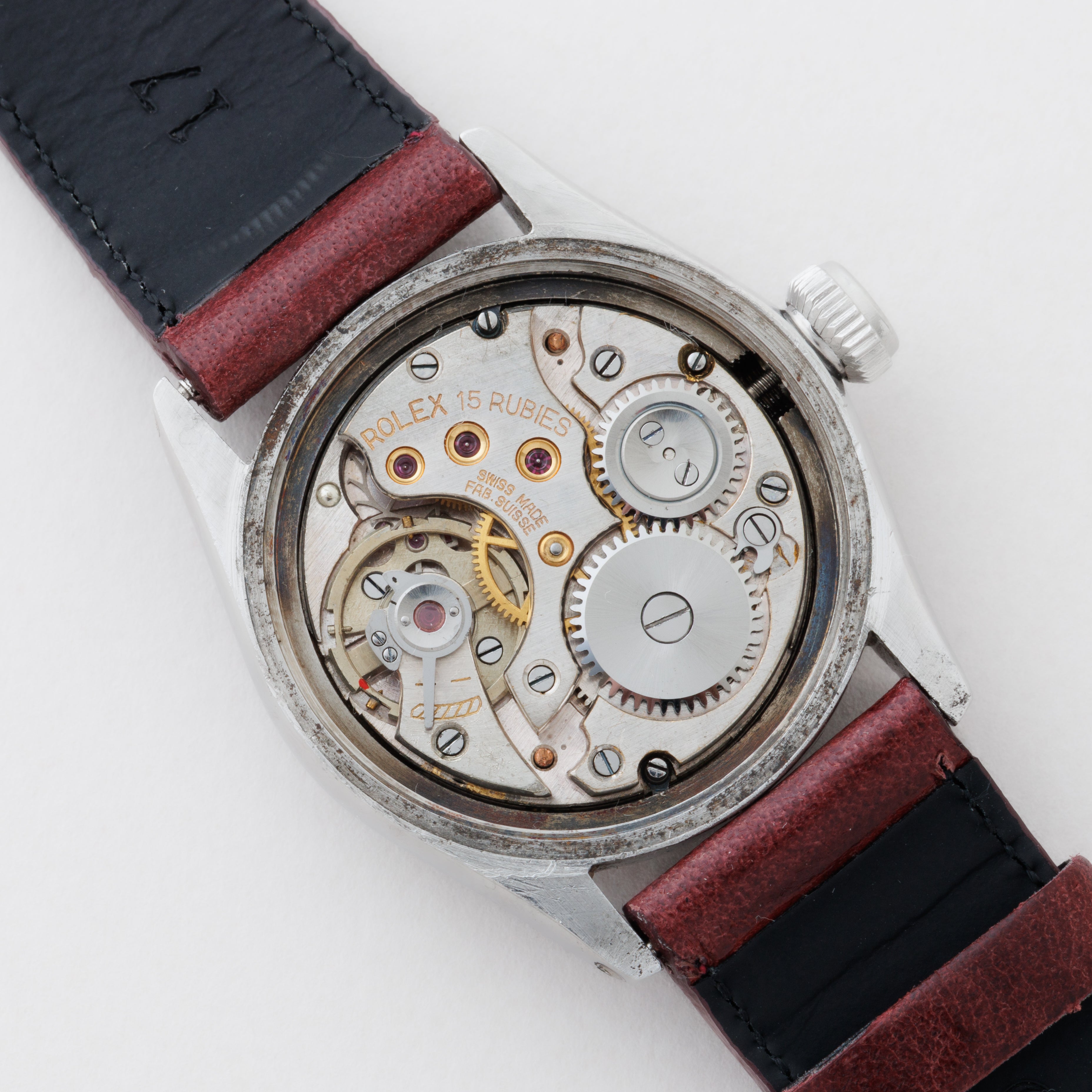 - ヴィンテージ時計の特性上、風防・パッキン・リューズ・バネ棒などの消耗部品は後年メンテナンス過程で交換されている場合がございます。オリジナル性を重視しておりますが、必要に応じて適切な部品にて調整されていますので、よりコレクション性重視のお求めのお客様は事前にご確認ください。