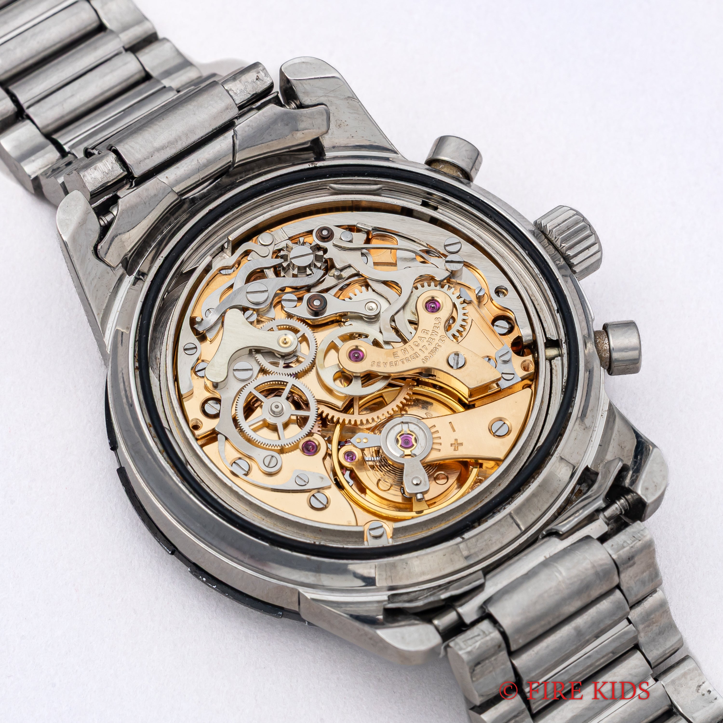 - ヴィンテージ時計の特性上、風防・パッキン・リューズ・バネ棒などの消耗部品は後年メンテナンス過程で交換されている場合がございます。オリジナル性を重視しておりますが、必要に応じて適切な部品にて調整されていますので、よりコレクション性重視のお求めのお客様は事前にご確認ください。