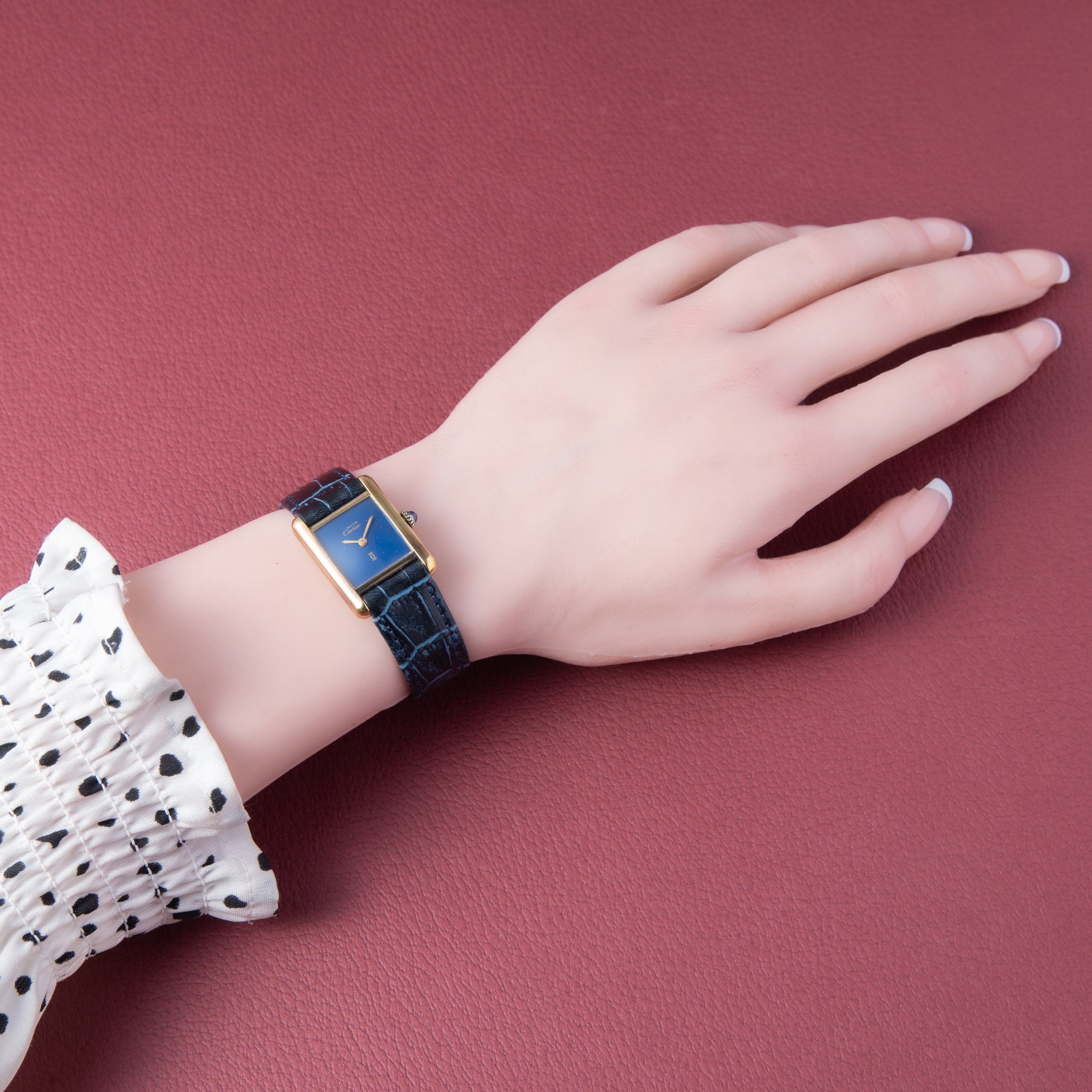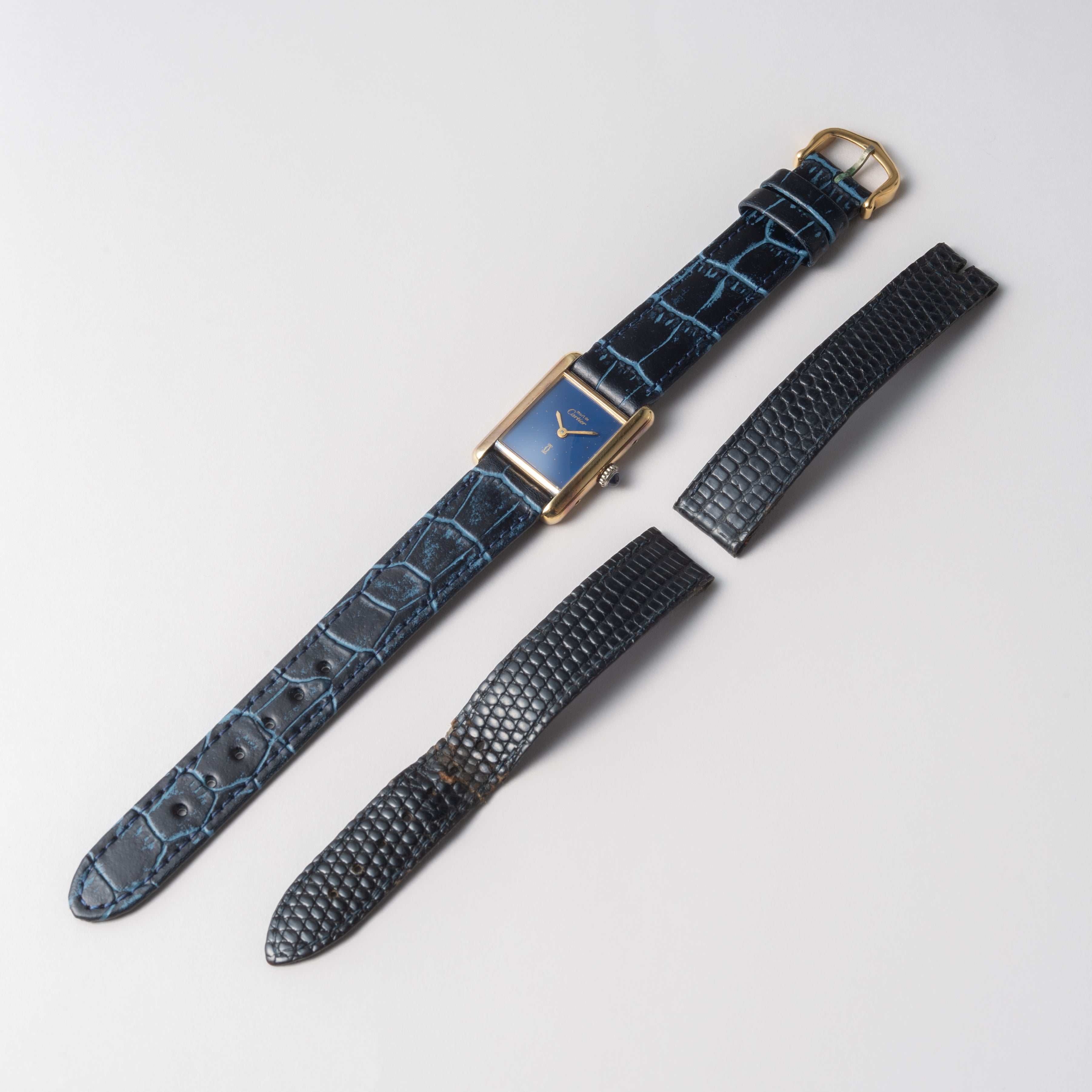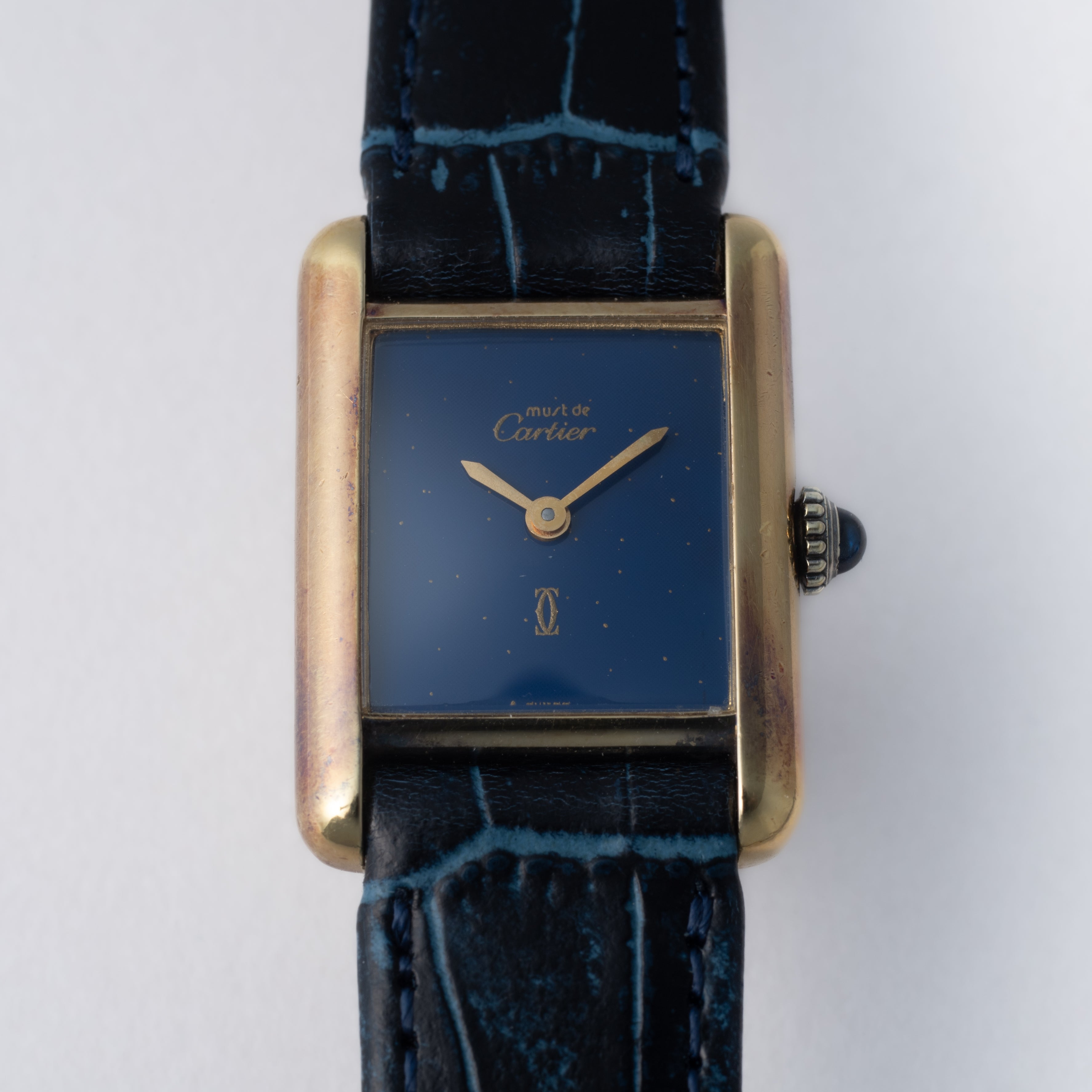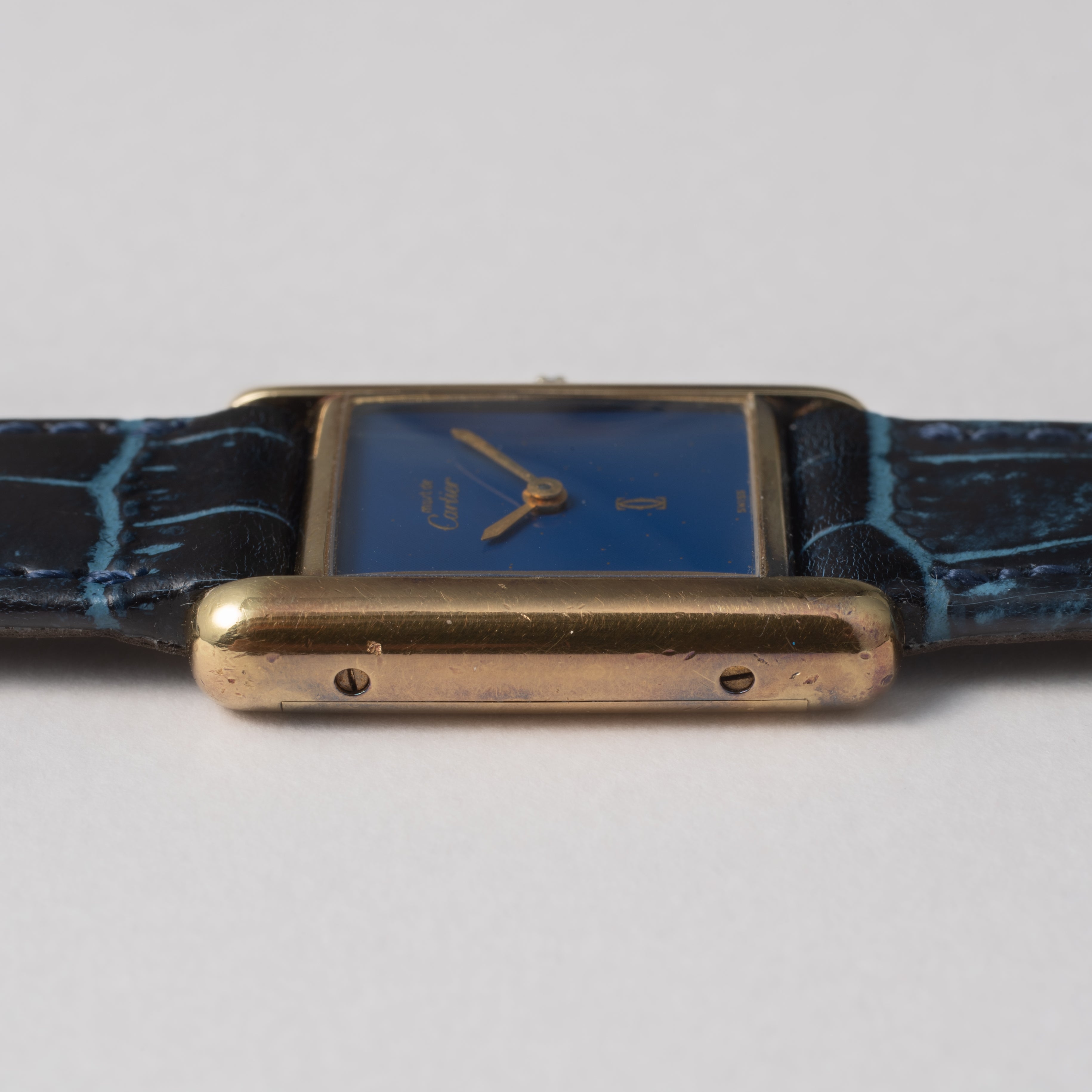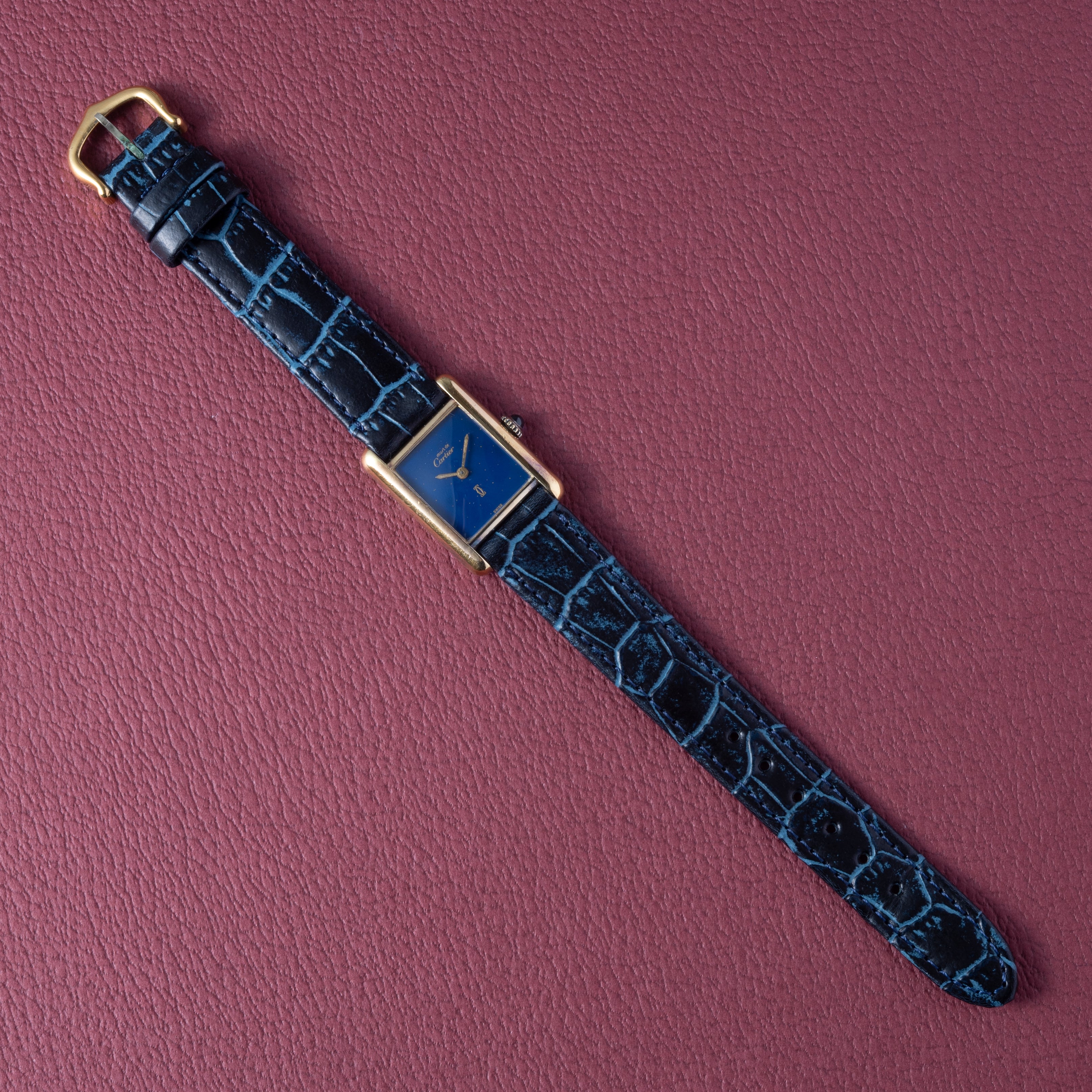 カルティエ マストタンク 1980年代製 SMサイズ 手巻き ラピスブルーダイヤル 純正尾錠付き