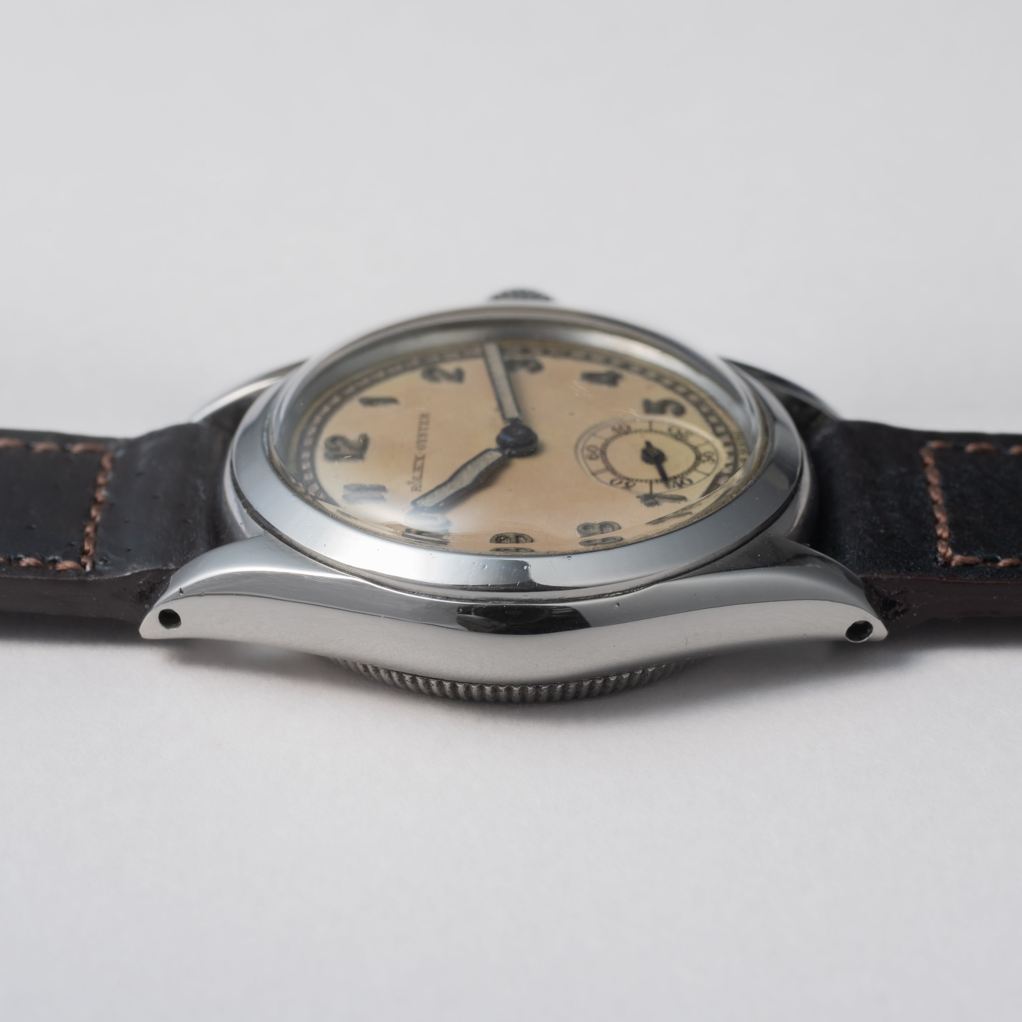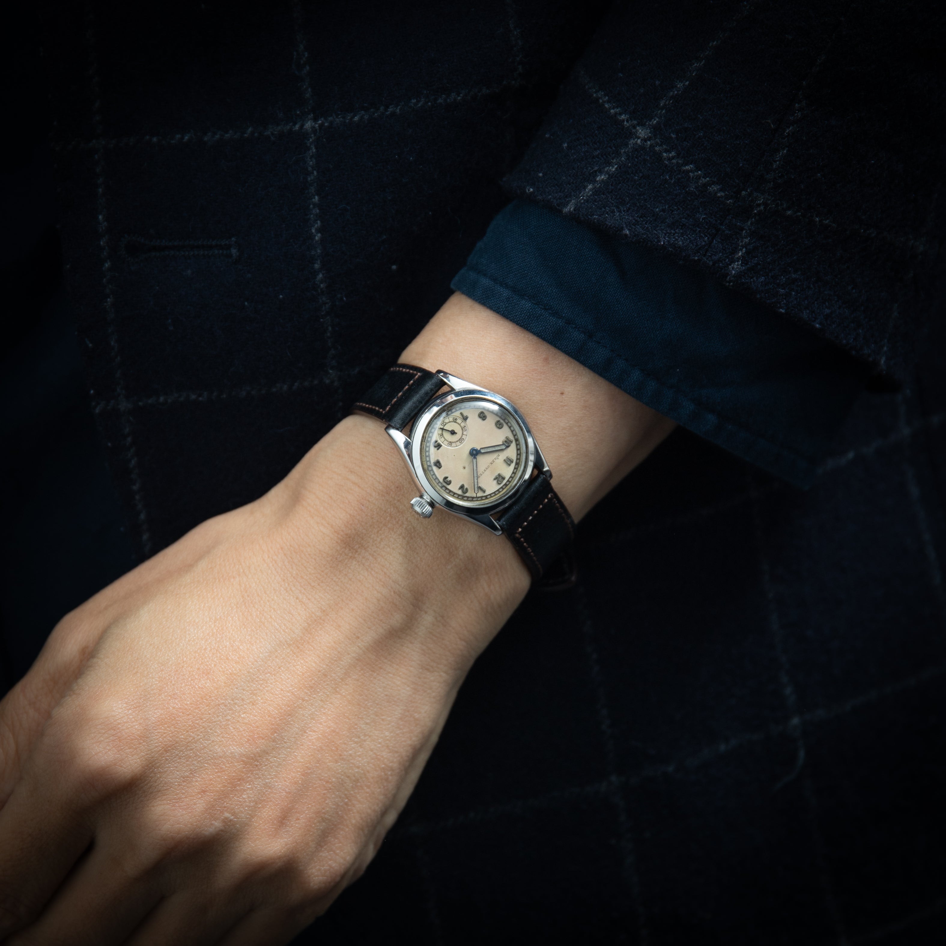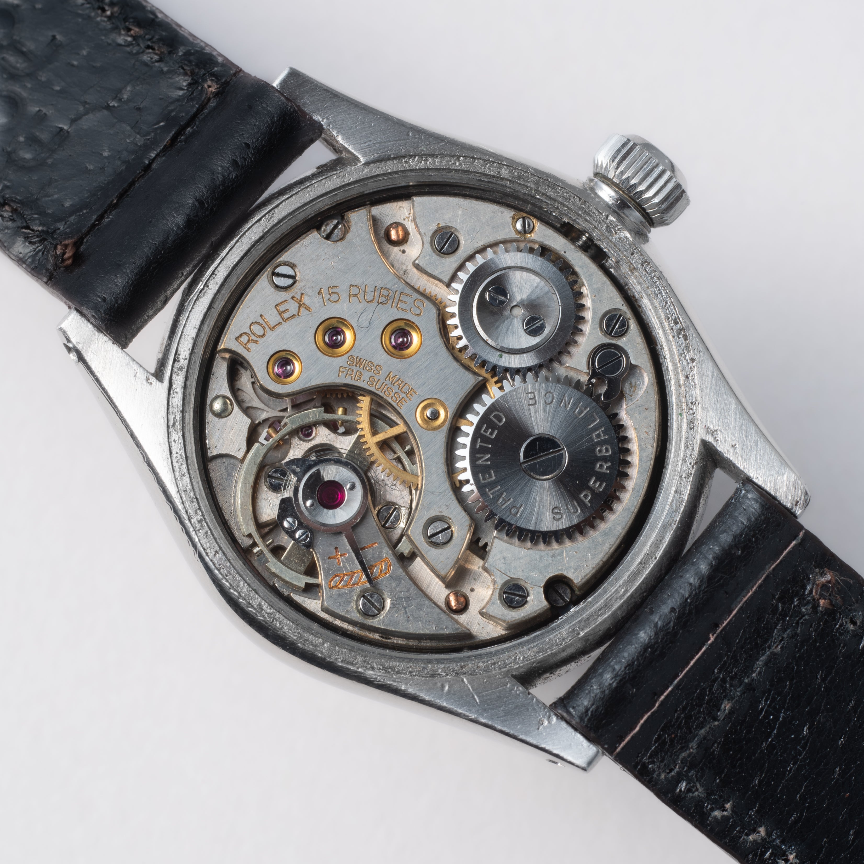- ヴィンテージ時計の特性上、風防・パッキン・リューズ・バネ棒などの消耗部品は後年メンテナンス過程で交換されている場合がございます。オリジナル性を重視しておりますが、必要に応じて適切な部品にて調整されていますので、よりコレクション性重視のお求めのお客様は事前にご確認ください。