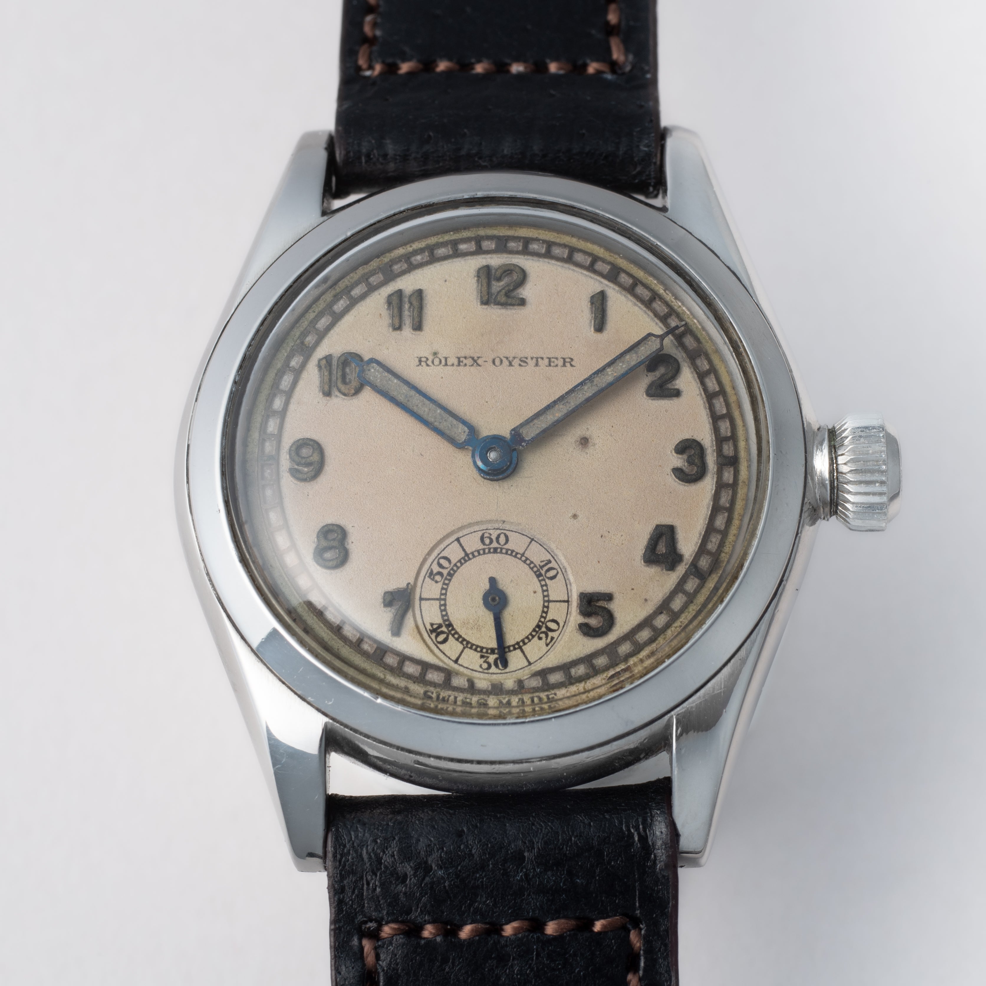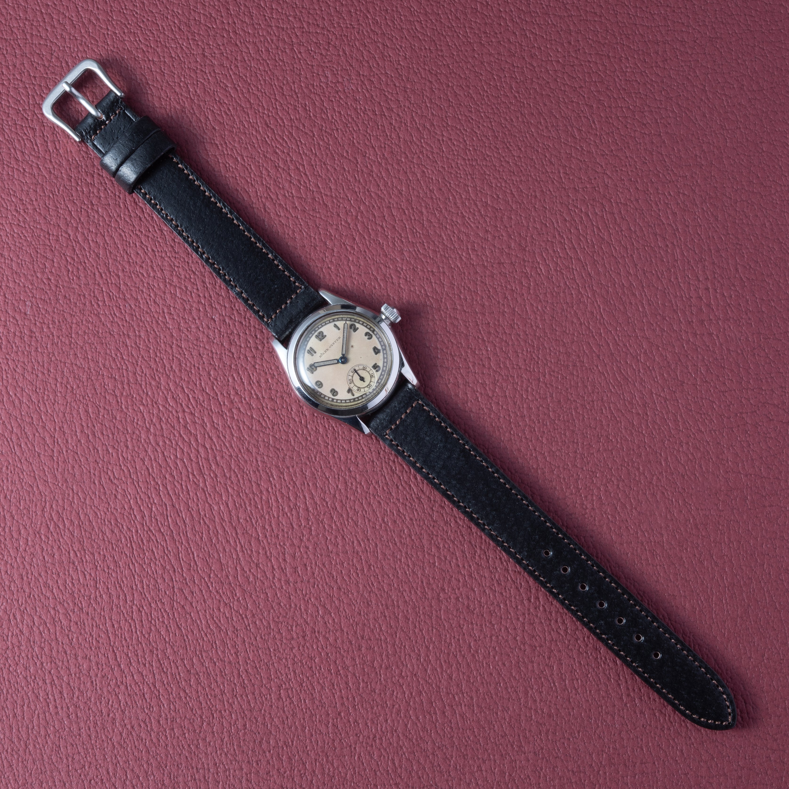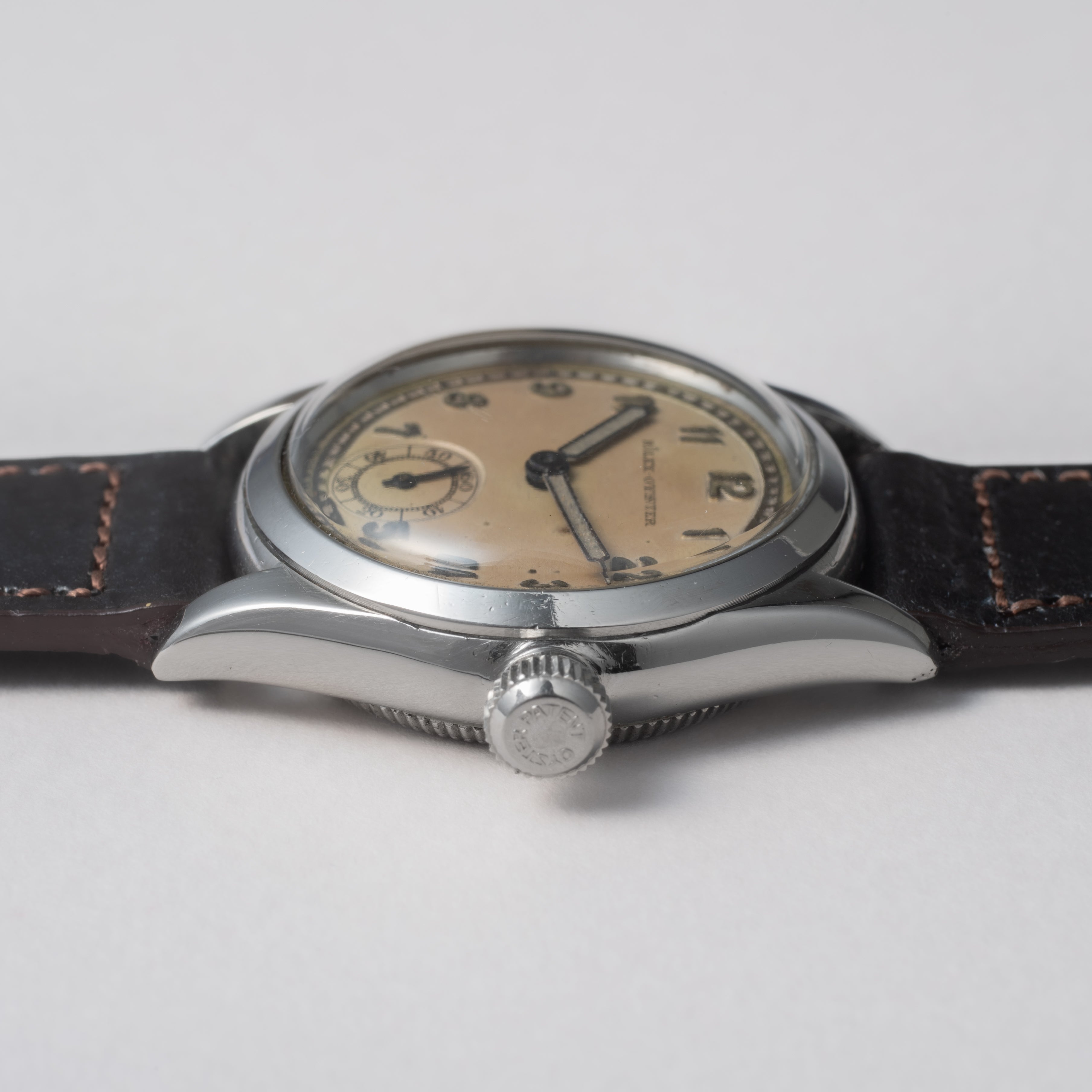 - ヴィンテージ時計の特性上、風防・パッキン・リューズ・バネ棒などの消耗部品は後年メンテナンス過程で交換されている場合がございます。オリジナル性を重視しておりますが、必要に応じて適切な部品にて調整されていますので、よりコレクション性重視のお求めのお客様は事前にご確認ください。