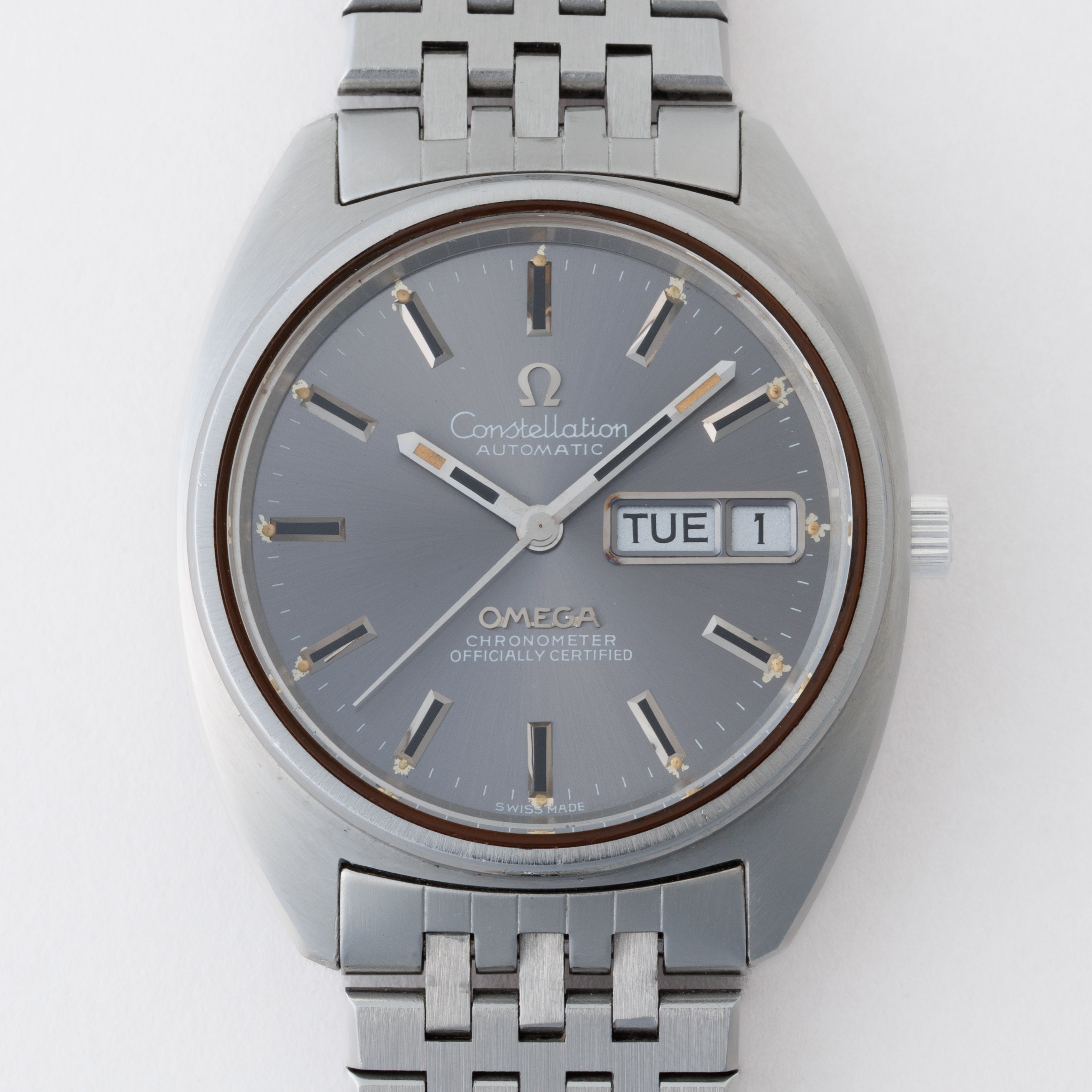 - ヴィンテージ時計の特性上、風防・パッキン・リューズ・バネ棒などの消耗部品は後年メンテナンス過程で交換されている場合がございます。オリジナル性を重視しておりますが、必要に応じて適切な部品にて調整されていますので、よりコレクション性重視のお求めのお客様は事前にご確認ください。