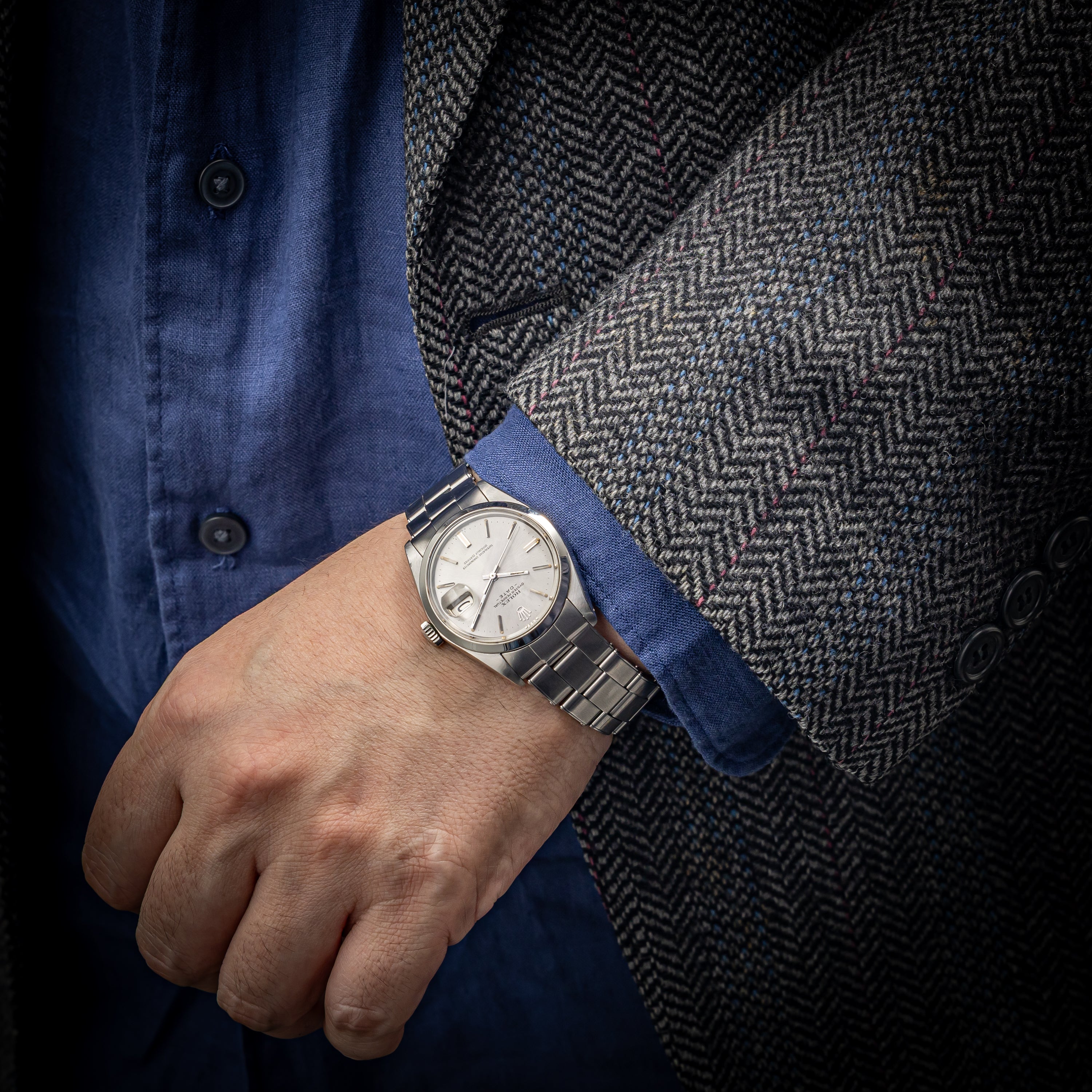 ロレックス オイスターパーペチュアルデイト 1971年製 Ref.1500 純正リベットブレス付き
