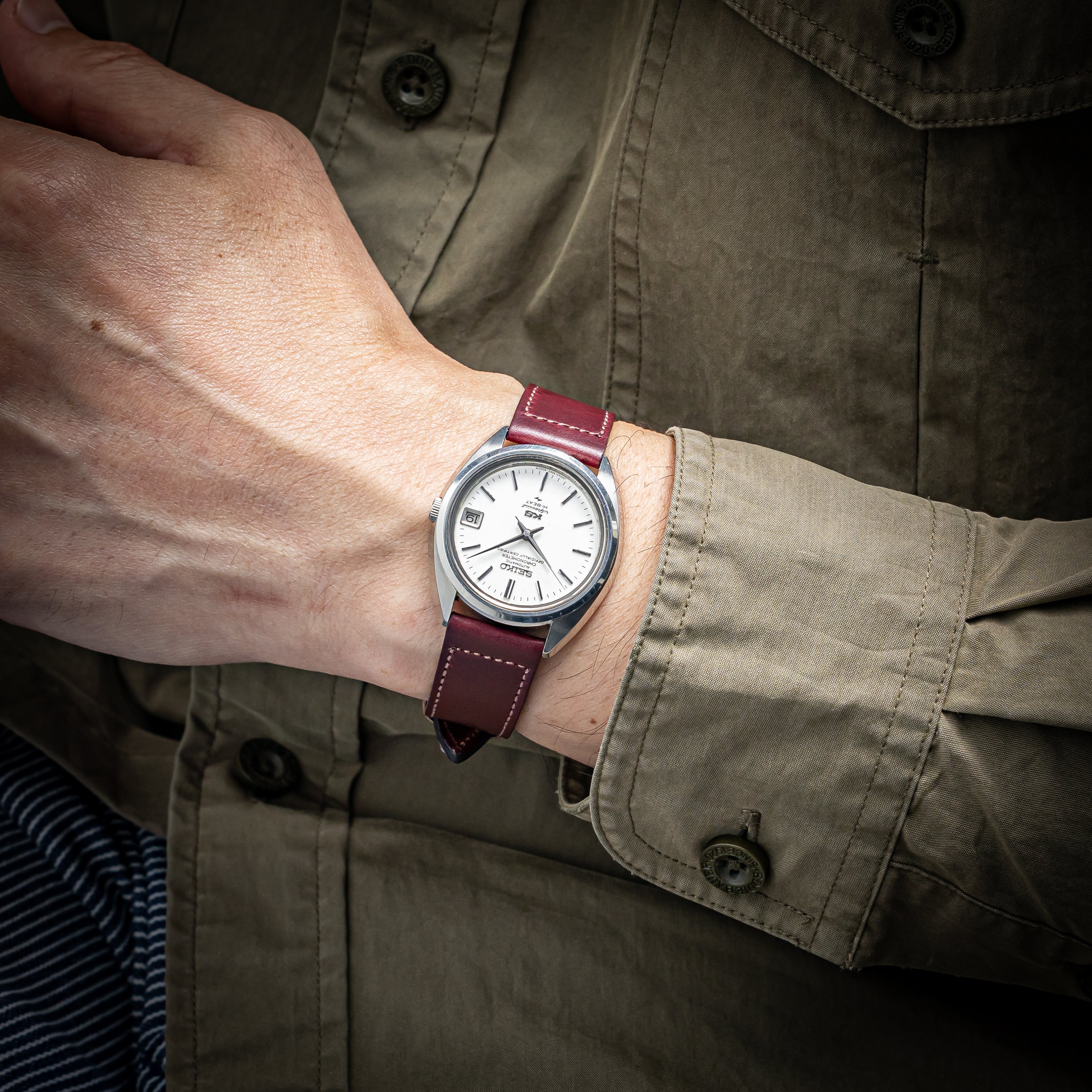 - ヴィンテージ時計の特性上、風防・パッキン・リューズ・バネ棒などの消耗部品は後年メンテナンス過程で交換されている場合がございます。オリジナル性を重視しておりますが、必要に応じて適切な部品にて調整されていますので、よりコレクション性重視のお求めのお客様は事前にご確認ください。