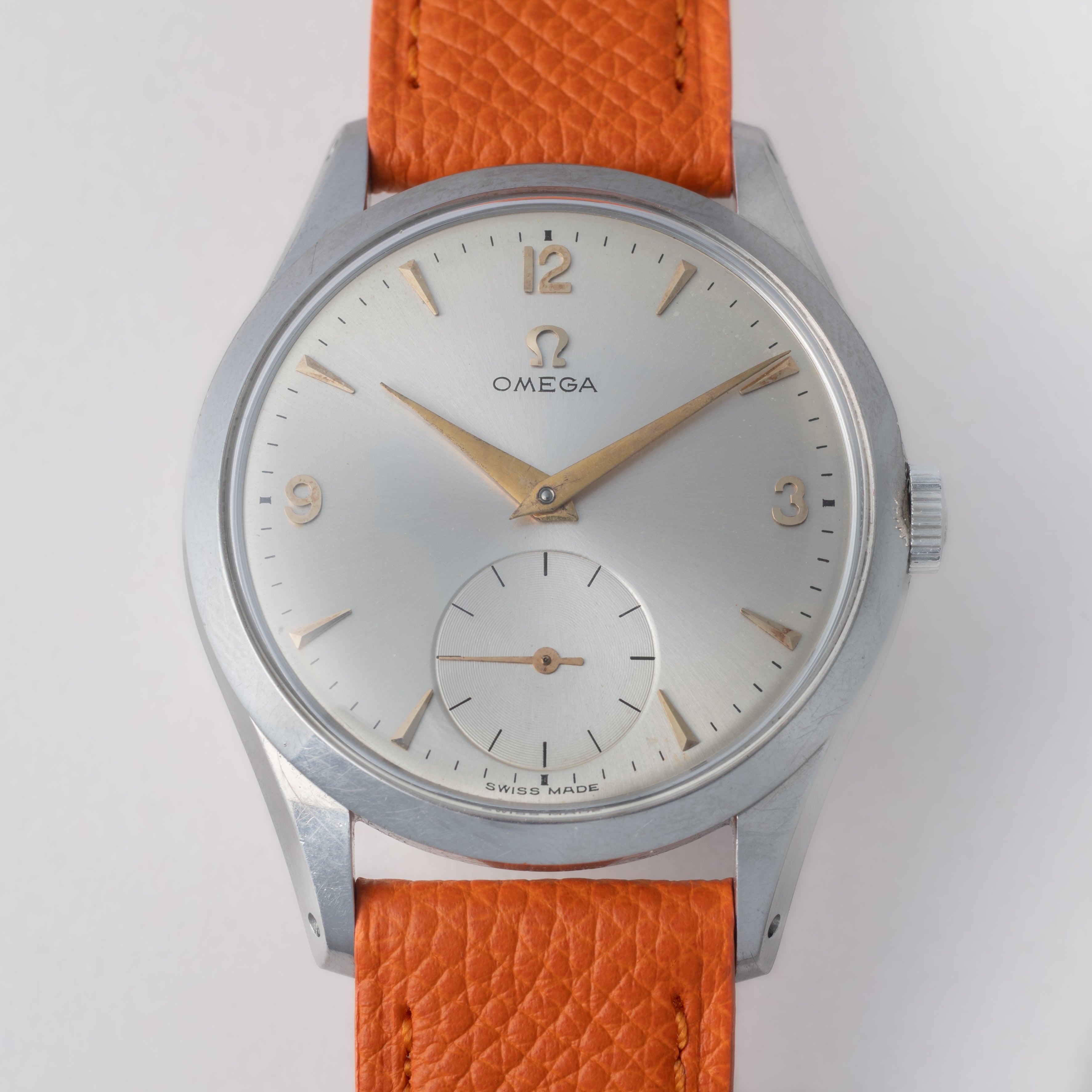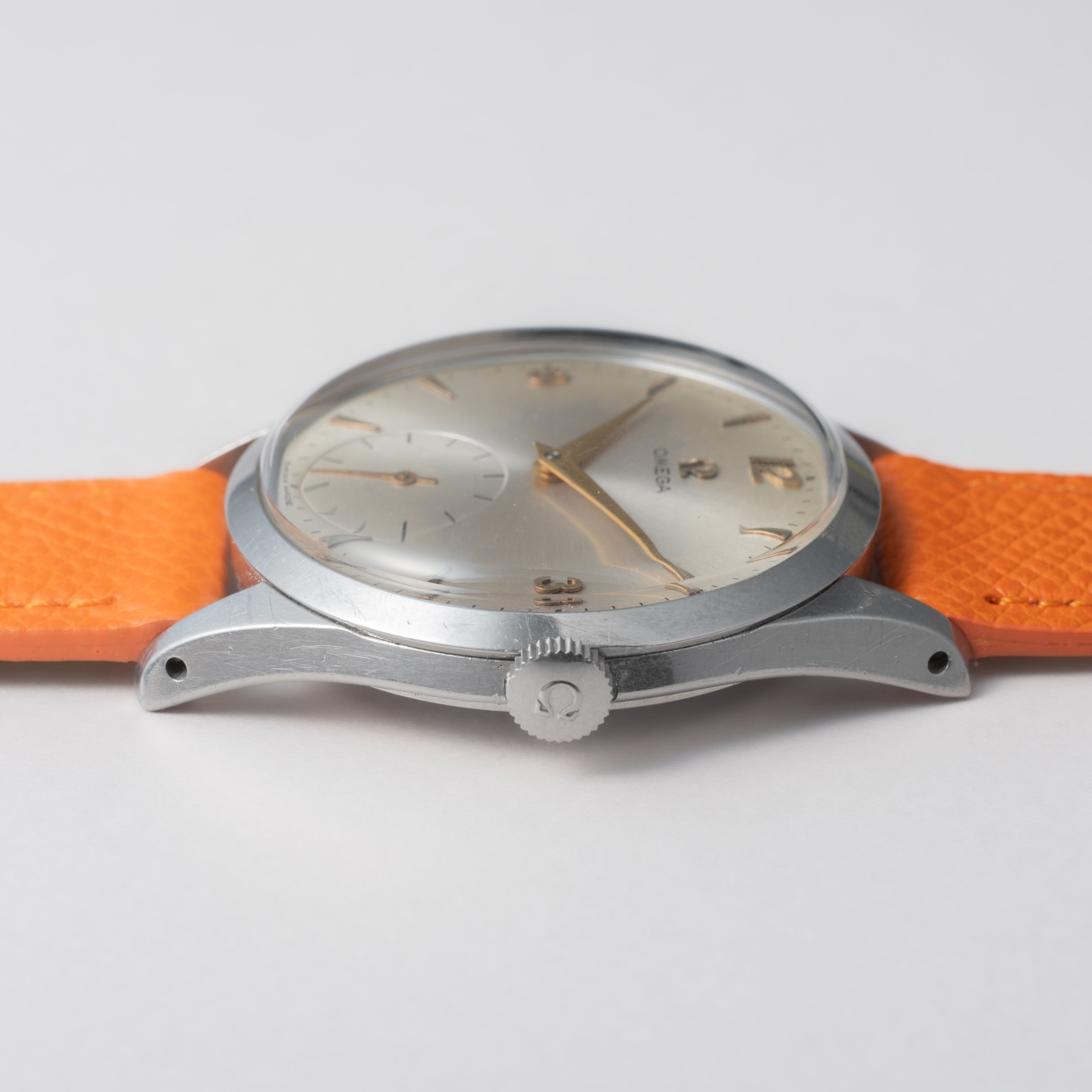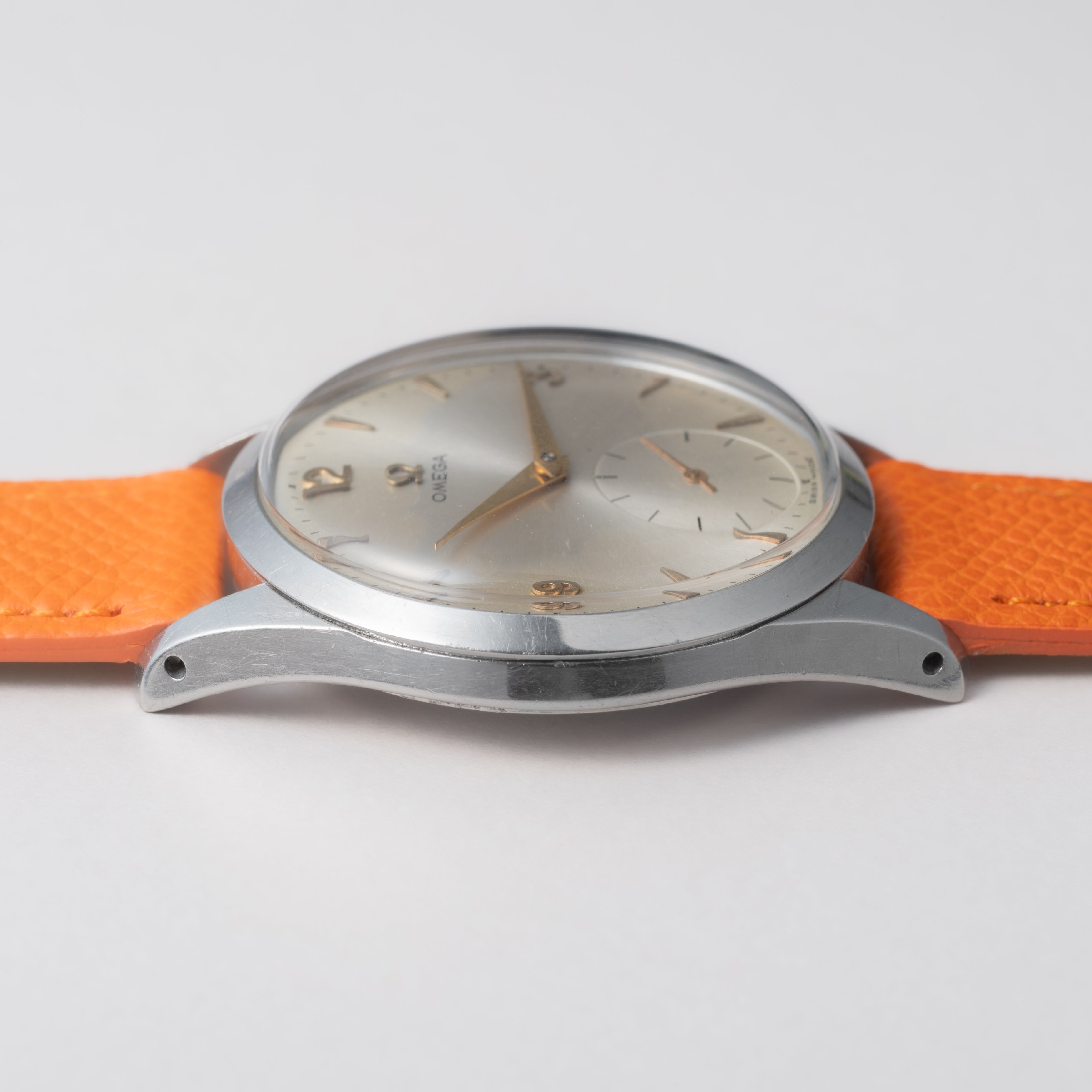 - ヴィンテージ時計の特性上、風防・パッキン・リューズ・バネ棒などの消耗部品は後年メンテナンス過程で交換されている場合がございます。オリジナル性を重視しておりますが、必要に応じて適切な部品にて調整されていますので、よりコレクション性重視のお求めのお客様は事前にご確認ください。