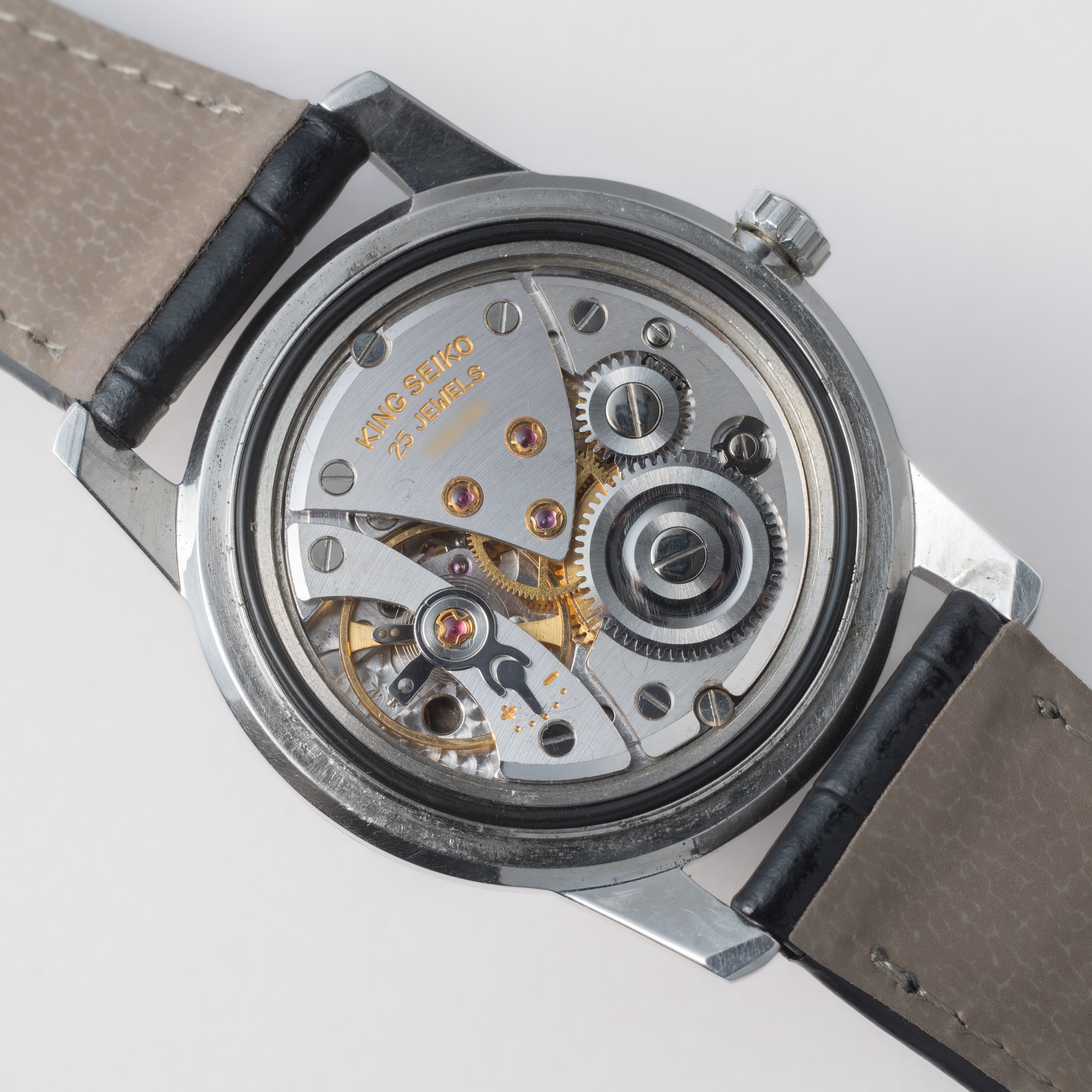 - ヴィンテージ時計の特性上、風防・パッキン・リューズ・バネ棒などの消耗部品は後年メンテナンス過程で交換されている場合がございます。オリジナル性を重視しておりますが、必要に応じて適切な部品にて調整されていますので、よりコレクション性重視のお求めのお客様は事前にご確認ください。