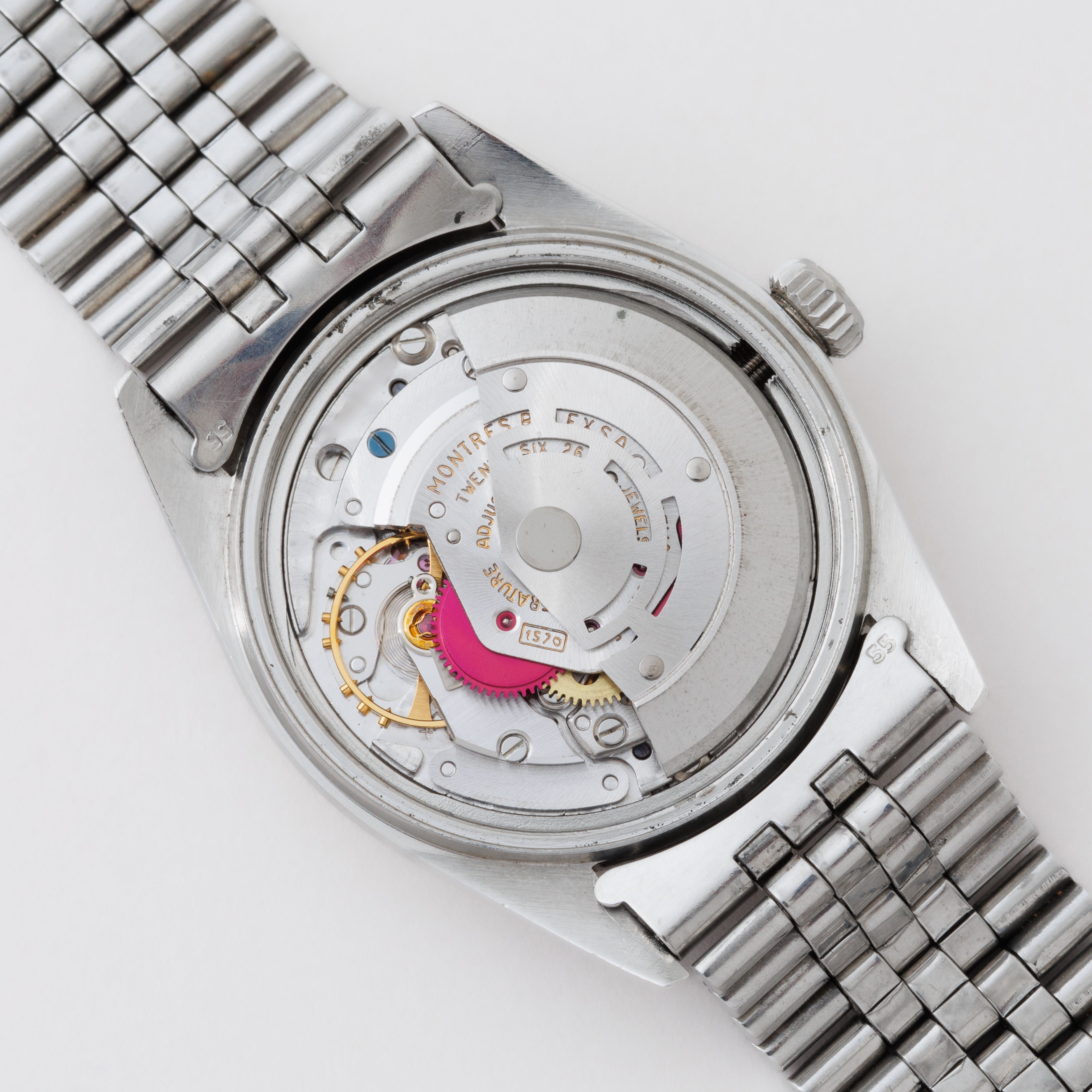 - ヴィンテージ時計の特性上、風防・パッキン・リューズ・バネ棒などの消耗部品は後年メンテナンス過程で交換されている場合がございます。オリジナル性を重視しておりますが、必要に応じて適切な部品にて調整されていますので、よりコレクション性重視のお求めのお客様は事前にご確認ください。