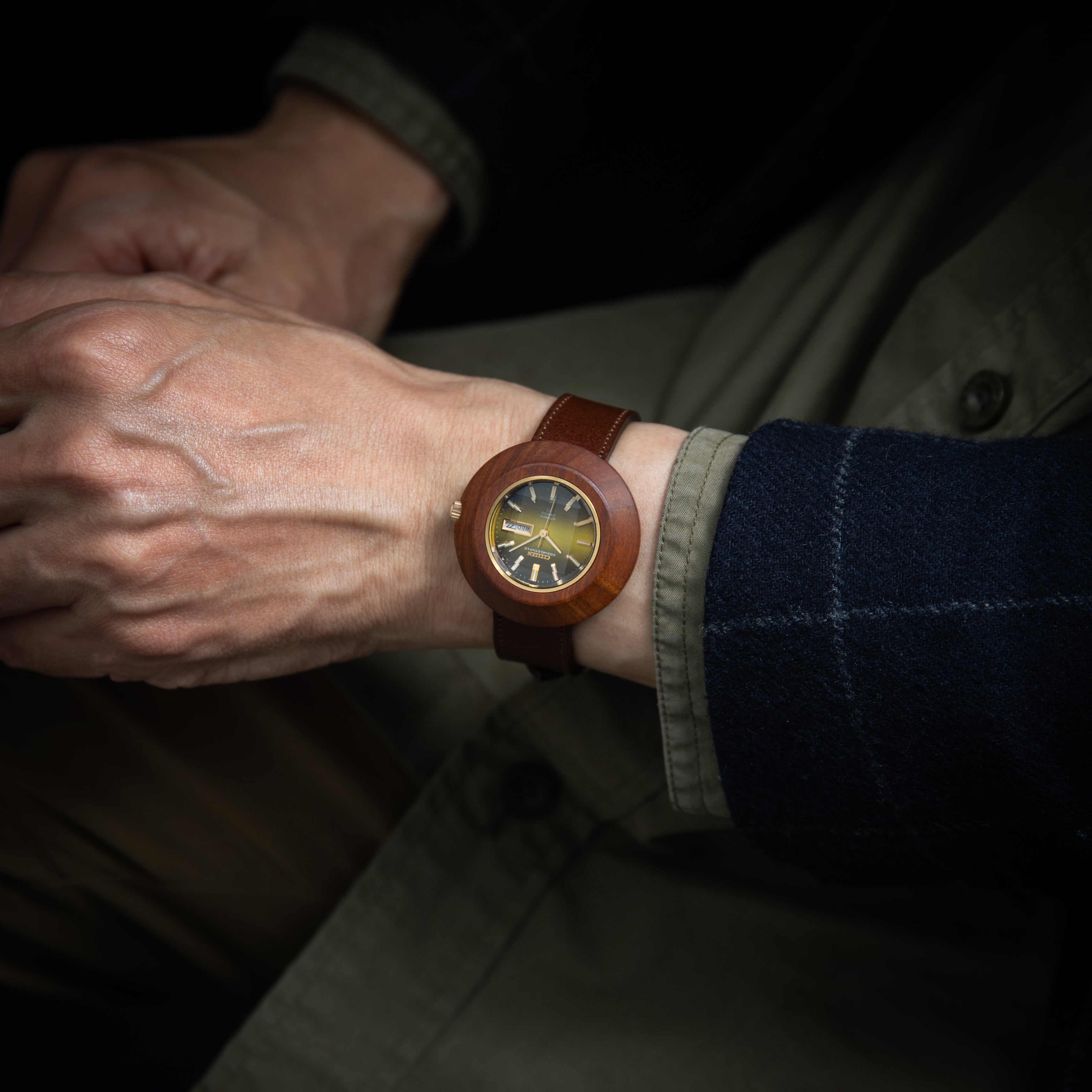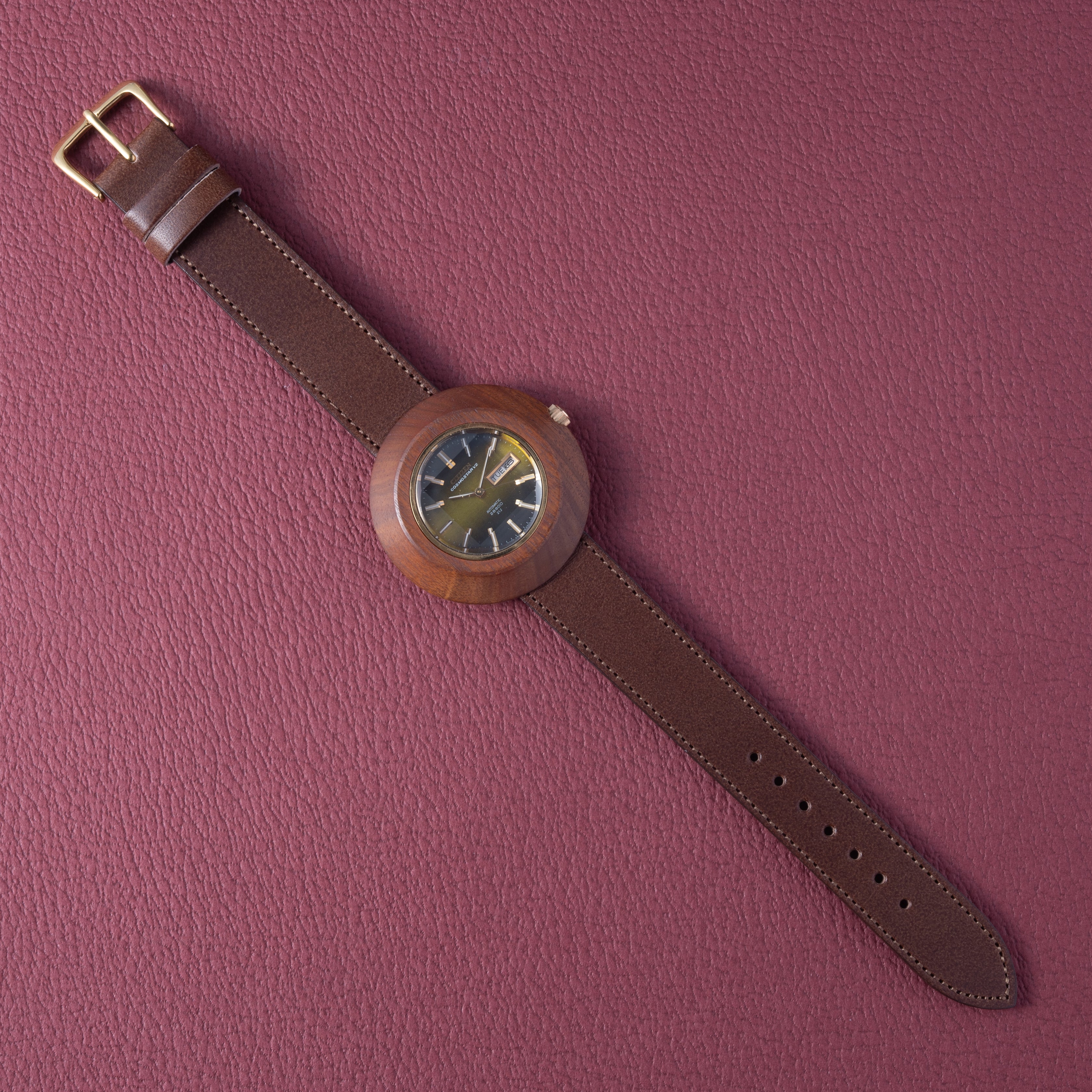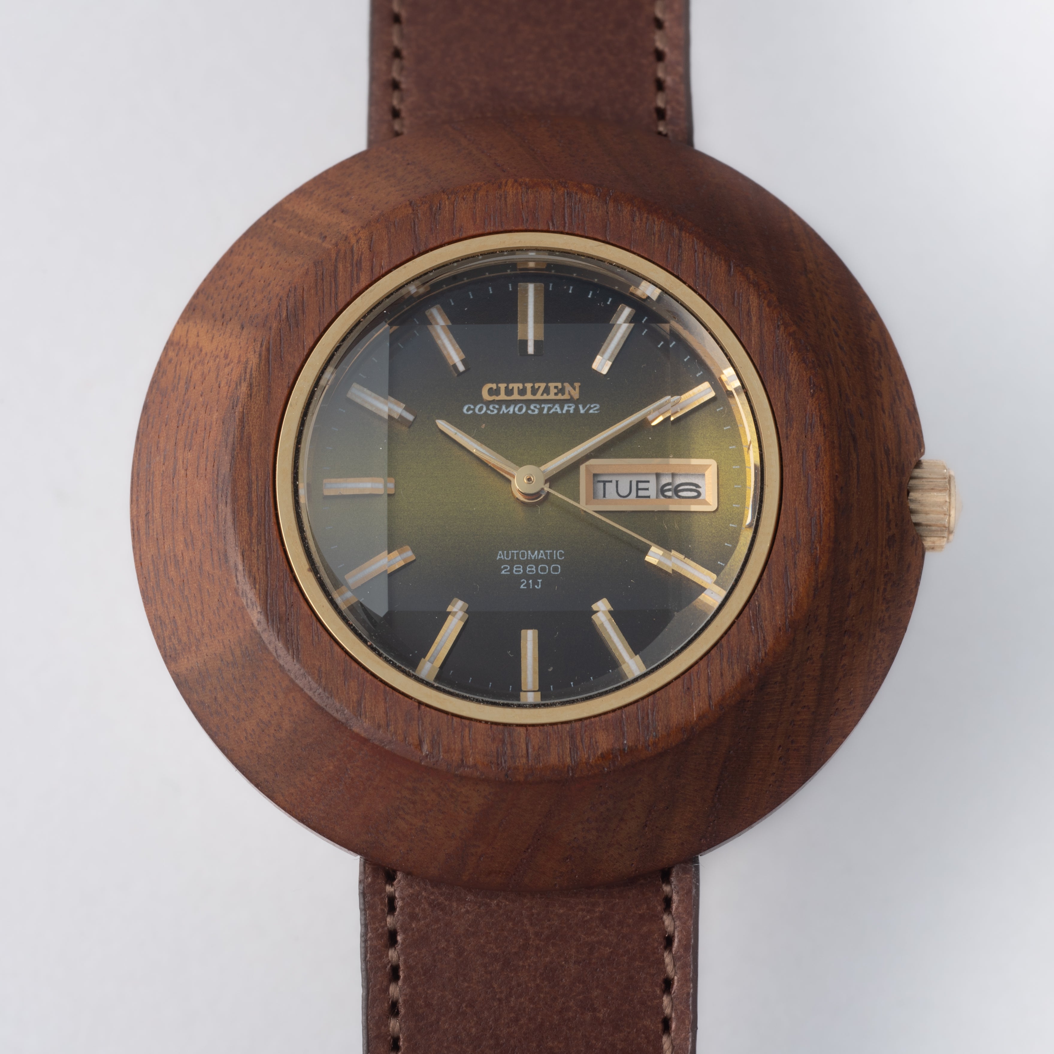 シチズン コスモスターV2 アフロクラフトケース(木製)青虎目文字盤 ハイビート自動巻き 1973年製 未使用品