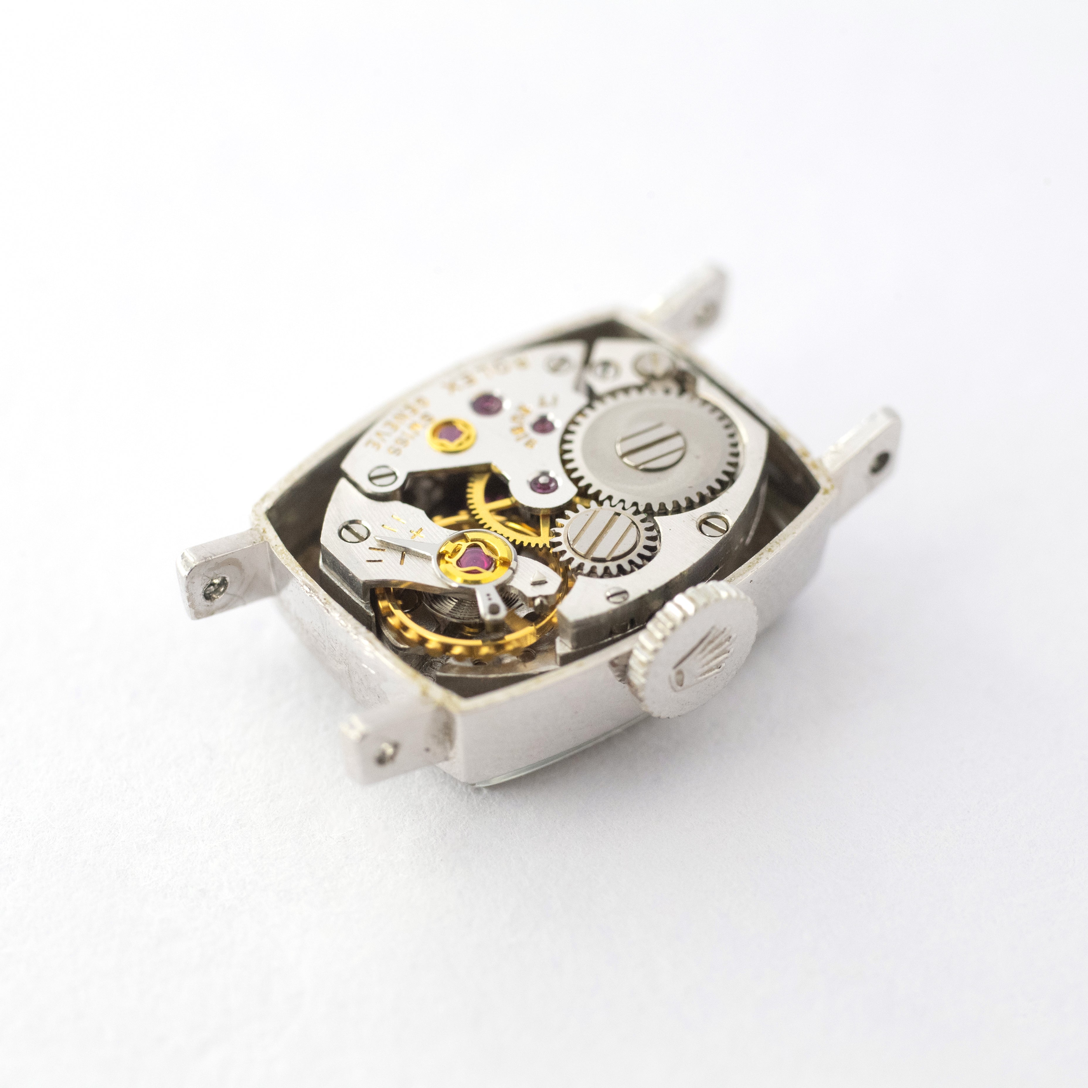 - ヴィンテージ時計の特性上、風防・パッキン・リューズ・バネ棒などの消耗部品は後年メンテナンス過程で交換されている場合がございます。オリジナル性を重視しておりますが、必要に応じて適切な部品にて調整されていますので、よりコレクション性重視のお求めのお客様は事前にご確認ください。