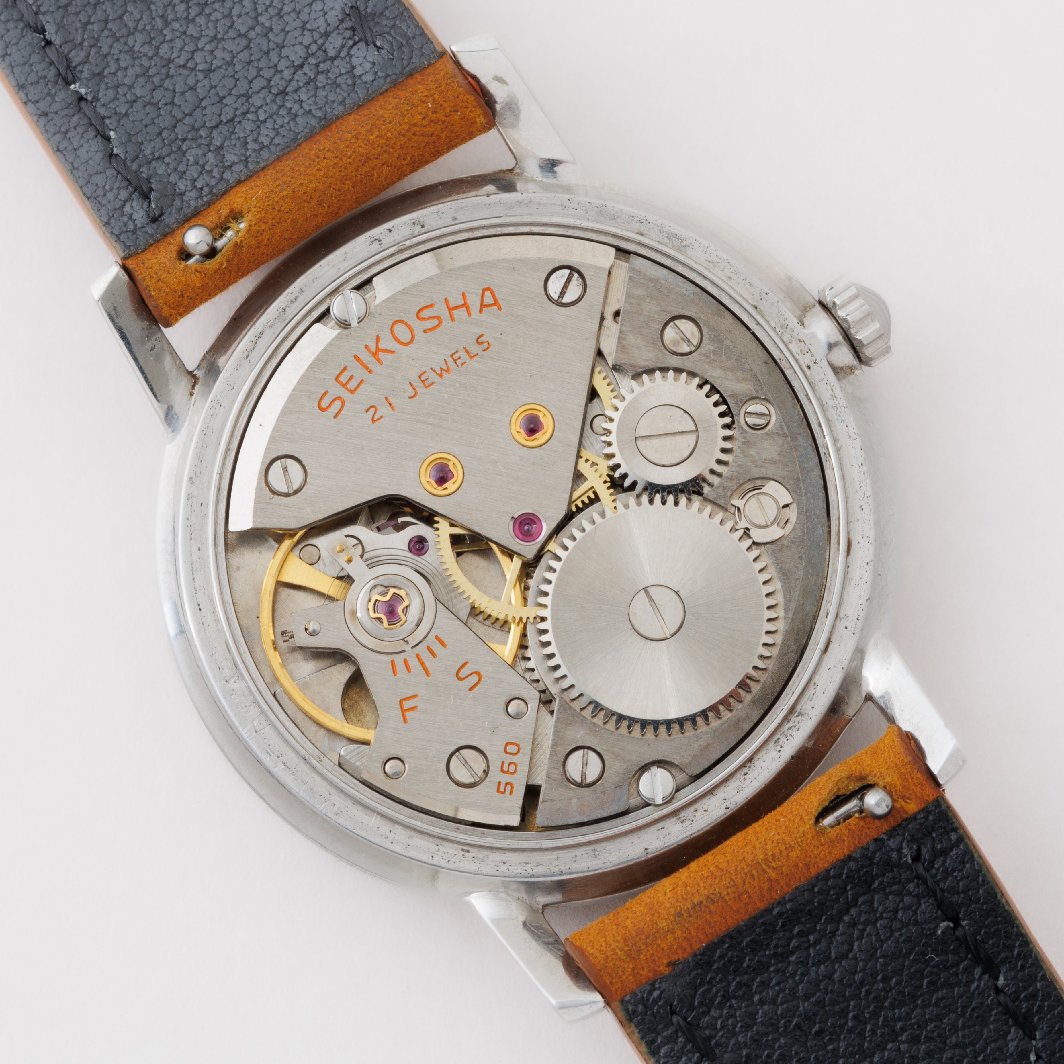 - ヴィンテージ時計の特性上、風防・パッキン・リューズ・バネ棒などの消耗部品は後年メンテナンス過程で交換されている場合がございます。オリジナル性を重視しておりますが、必要に応じて適切な部品にて調整されていますので、よりコレクション性重視のお求めのお客様は事前にご確認ください。