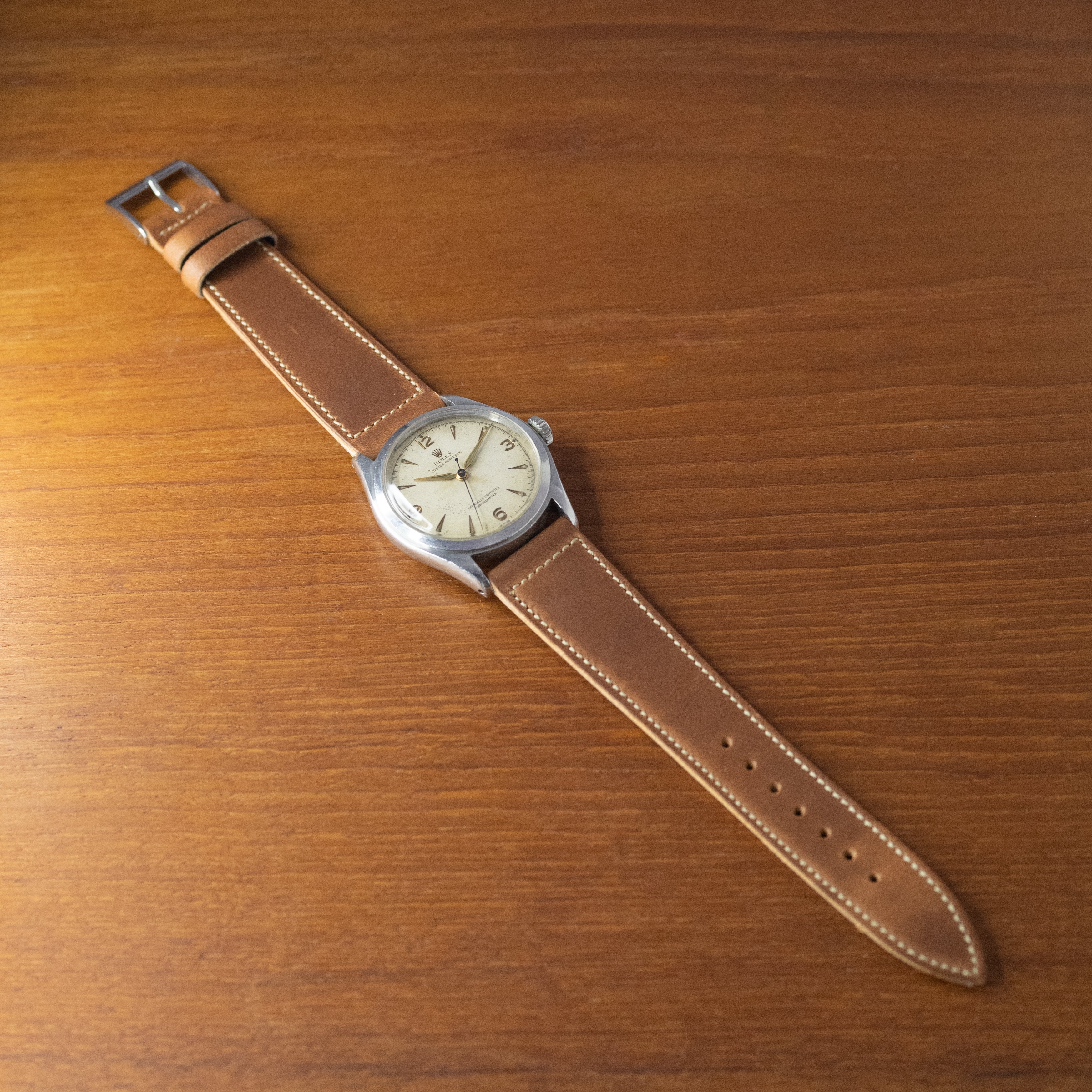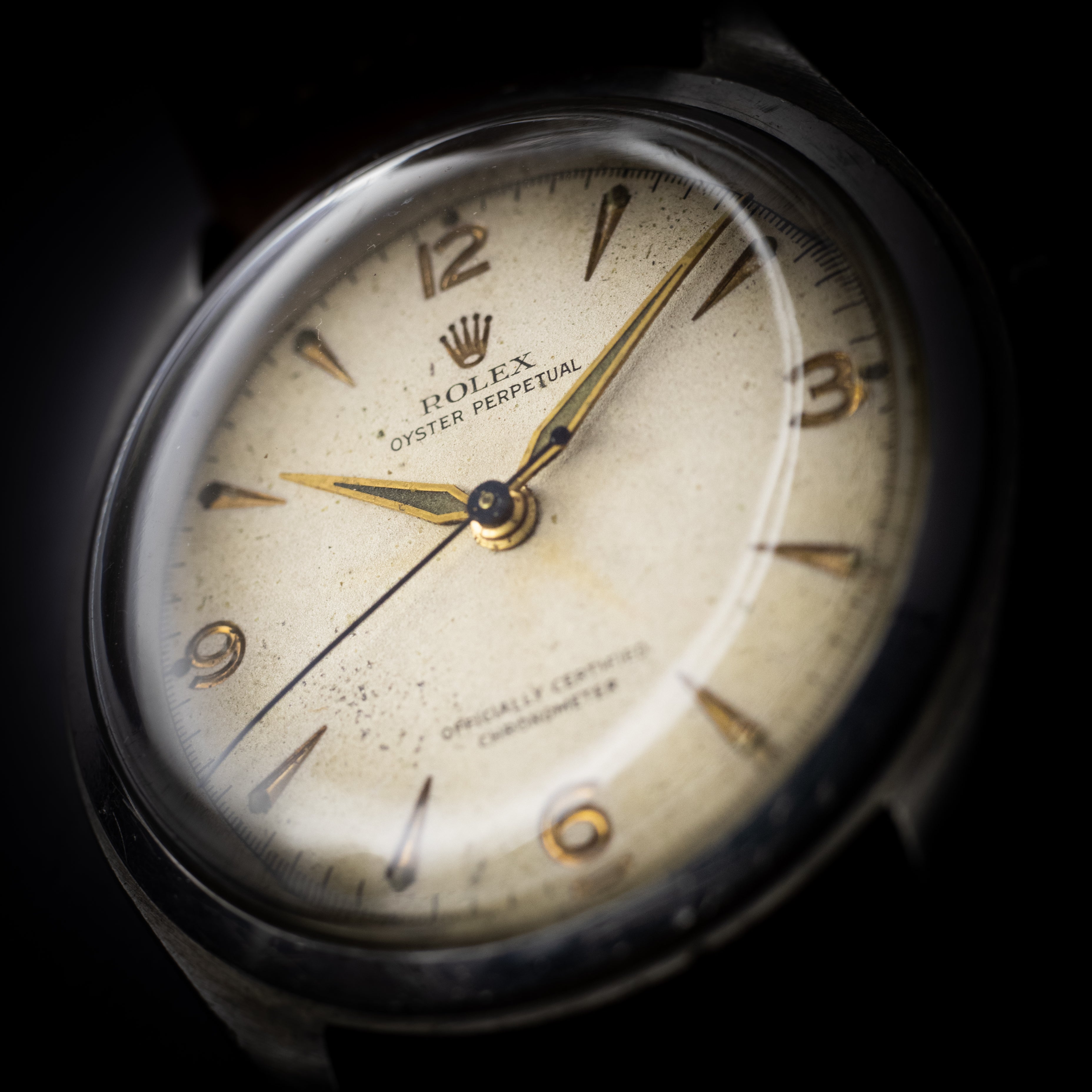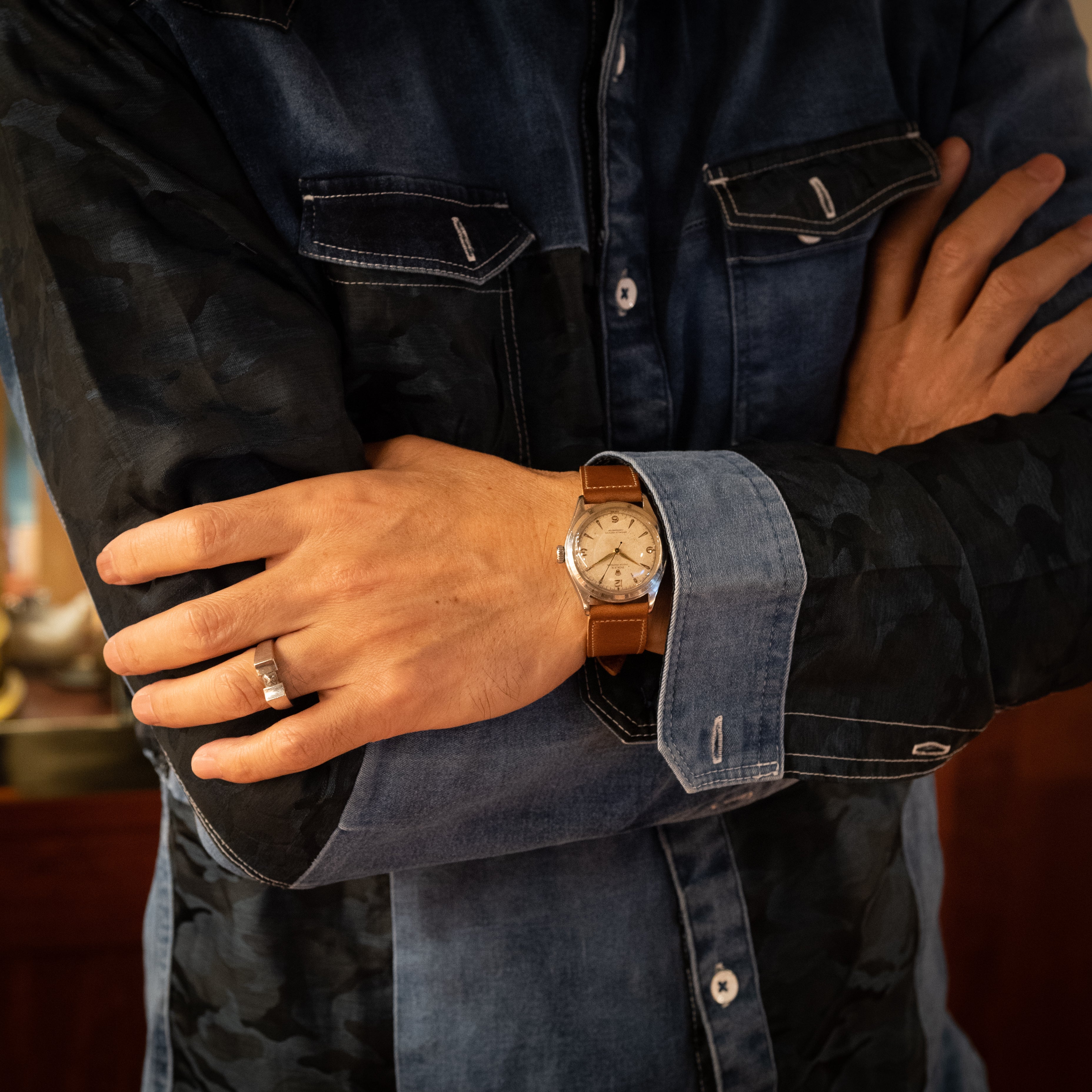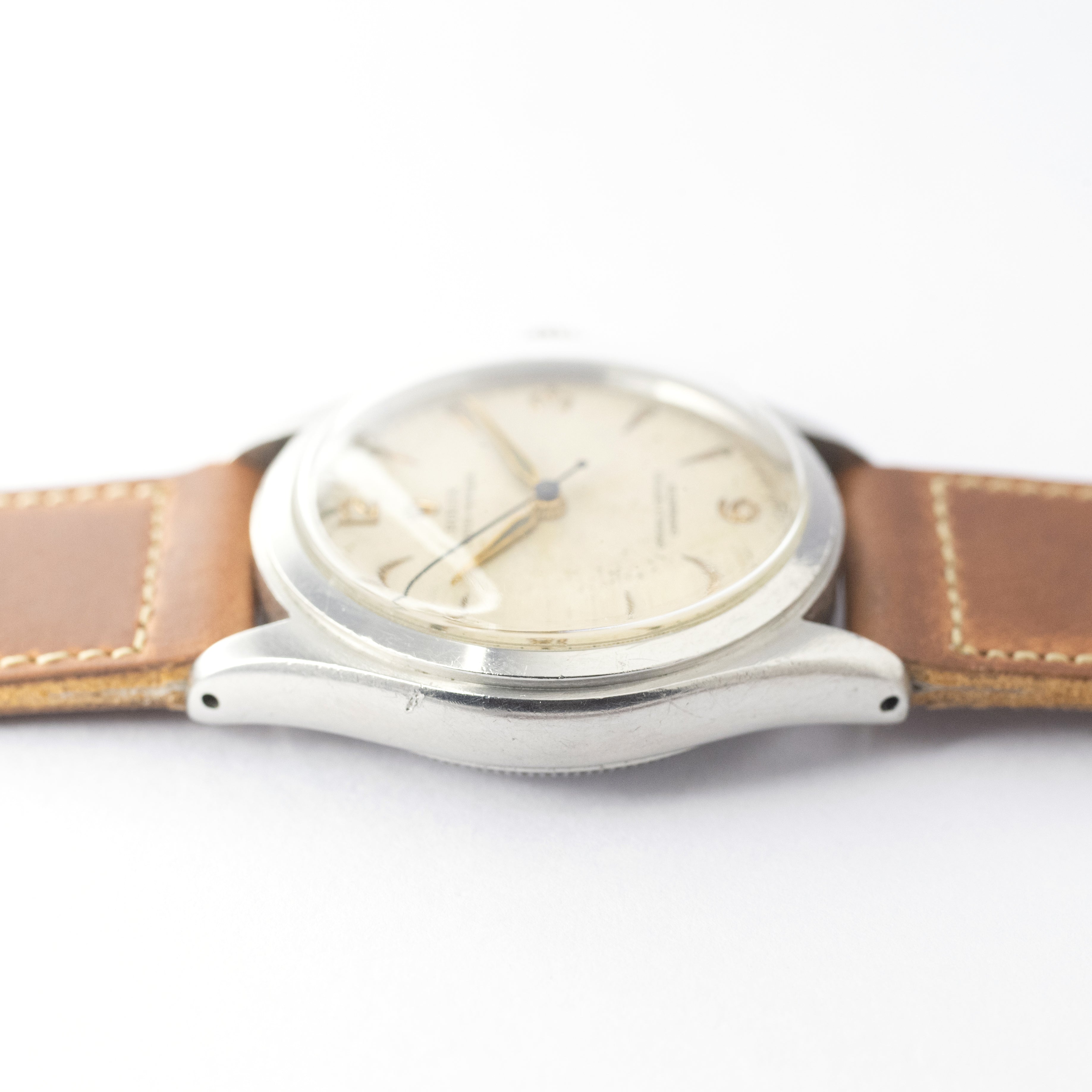 - ヴィンテージ時計の特性上、風防・パッキン・リューズ・バネ棒などの消耗部品は後年メンテナンス過程で交換されている場合がございます。オリジナル性を重視しておりますが、必要に応じて適切な部品にて調整されていますので、よりコレクション性重視のお求めのお客様は事前にご確認ください。