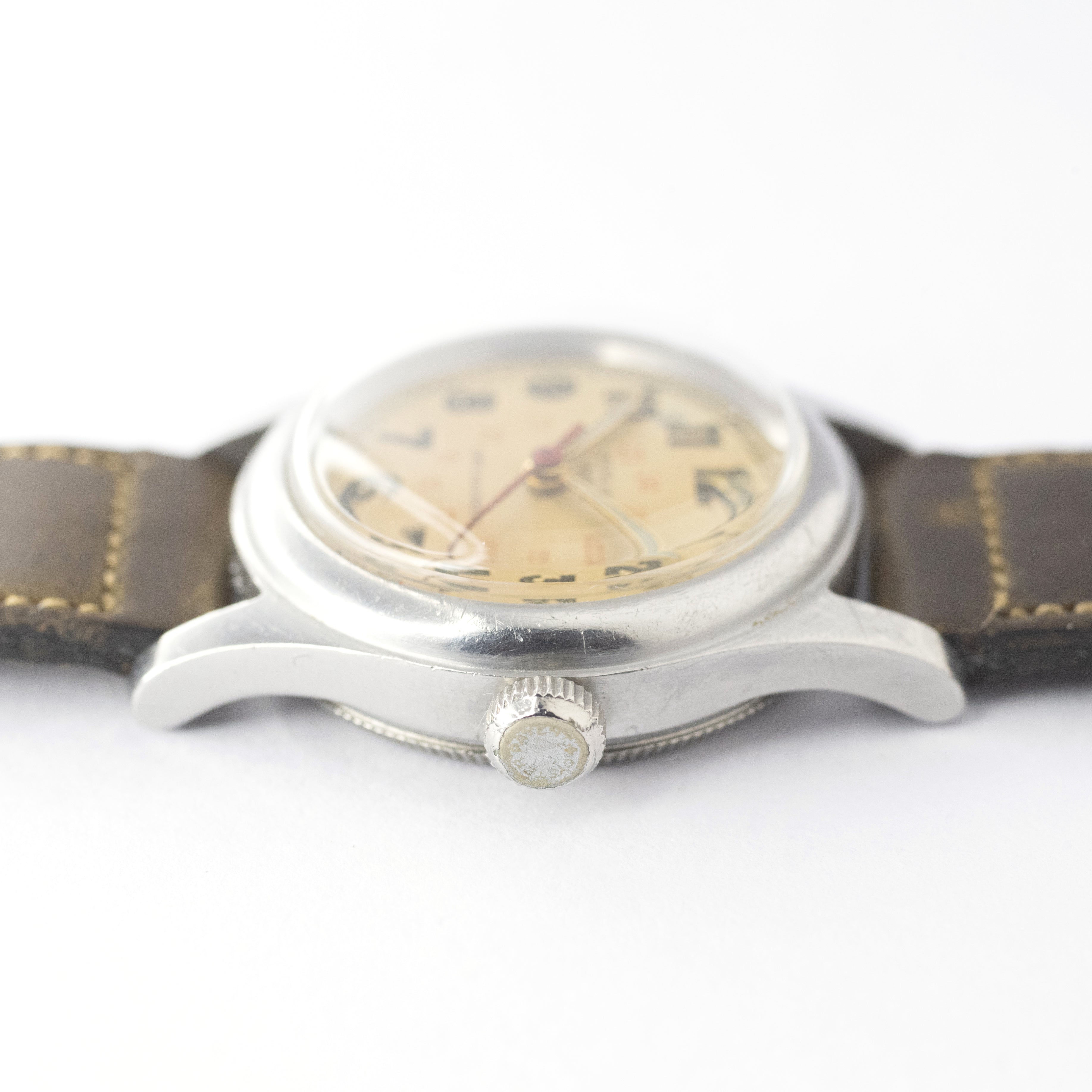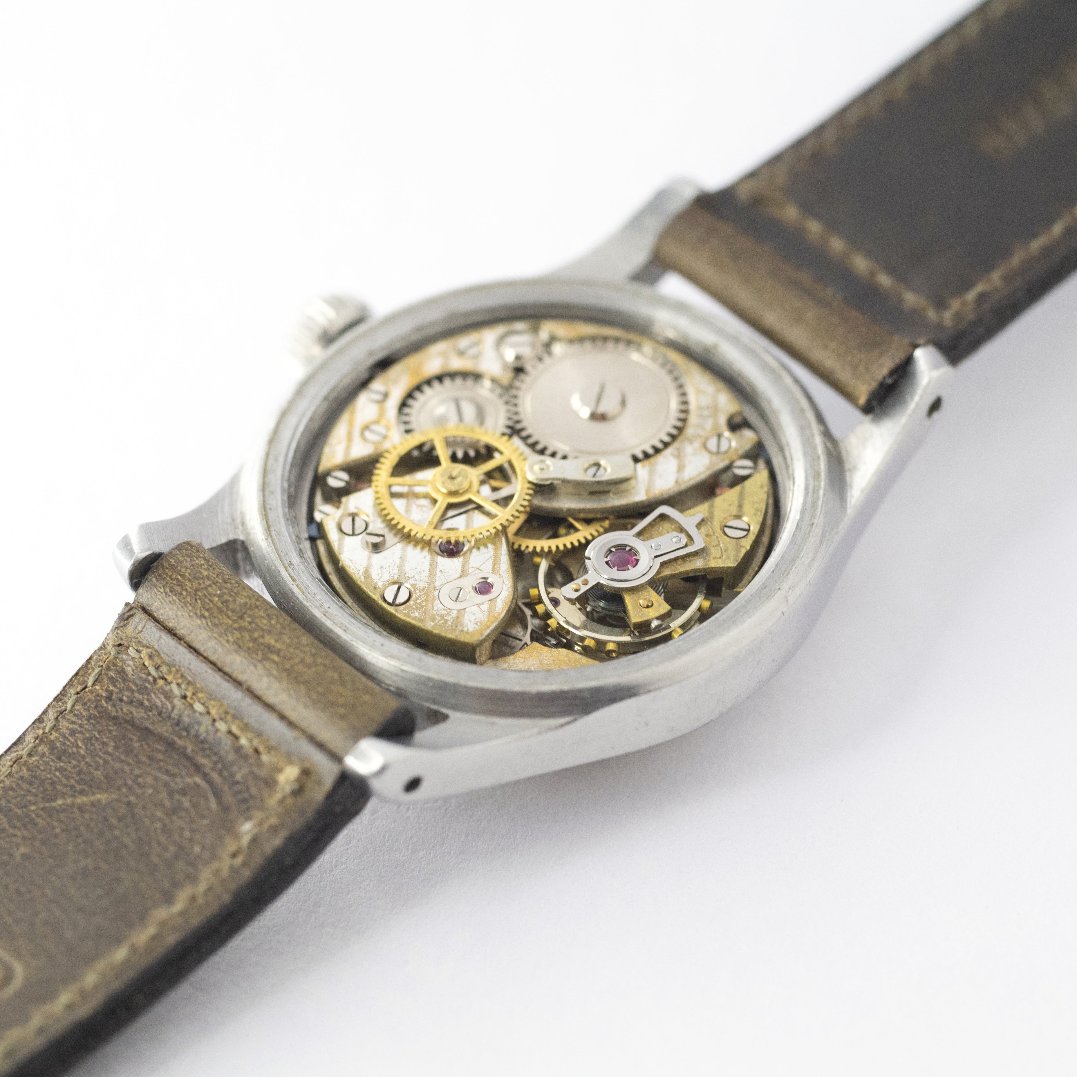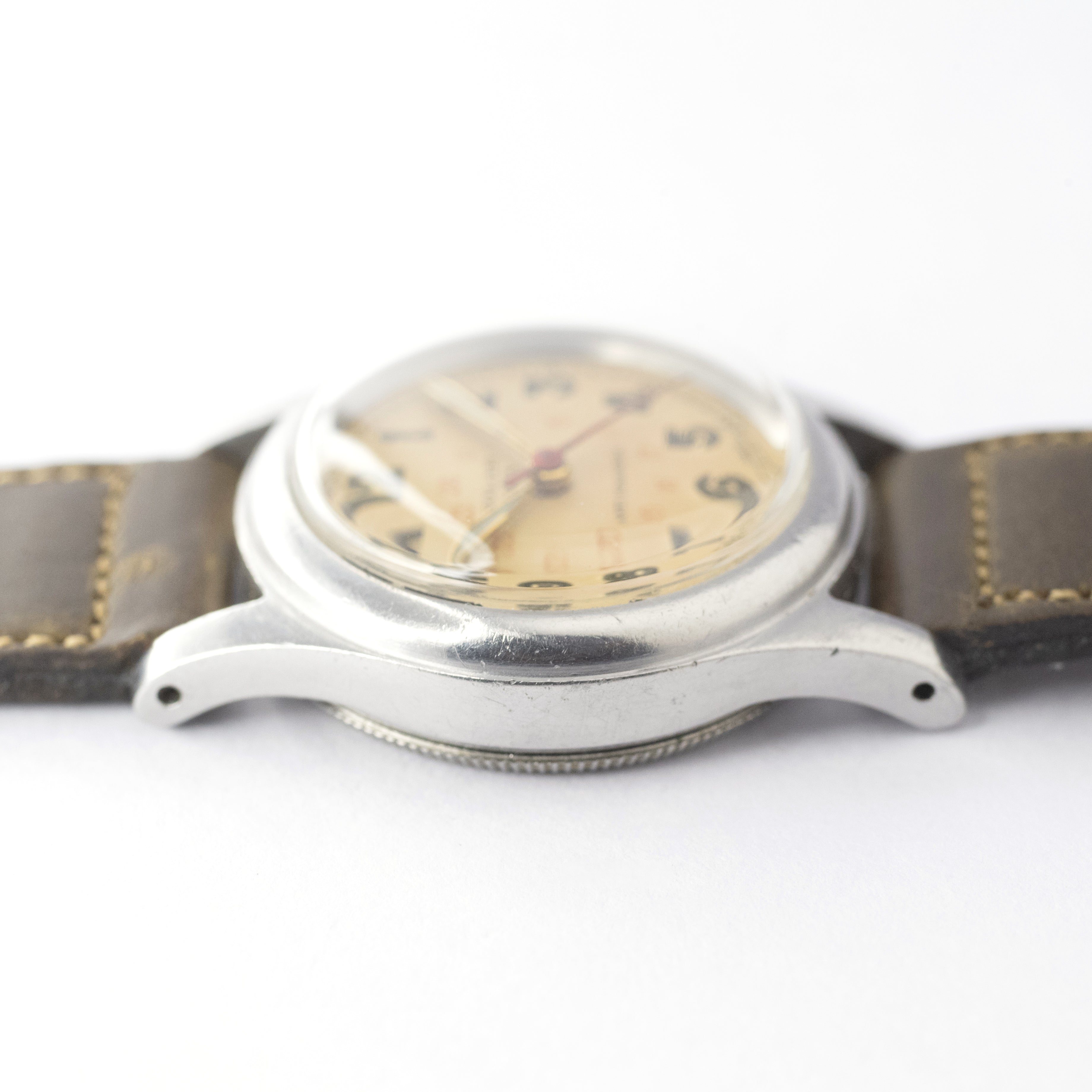 - ヴィンテージ時計の特性上、風防・パッキン・リューズ・バネ棒などの消耗部品は後年メンテナンス過程で交換されている場合がございます。オリジナル性を重視しておりますが、必要に応じて適切な部品にて調整されていますので、よりコレクション性重視のお求めのお客様は事前にご確認ください。