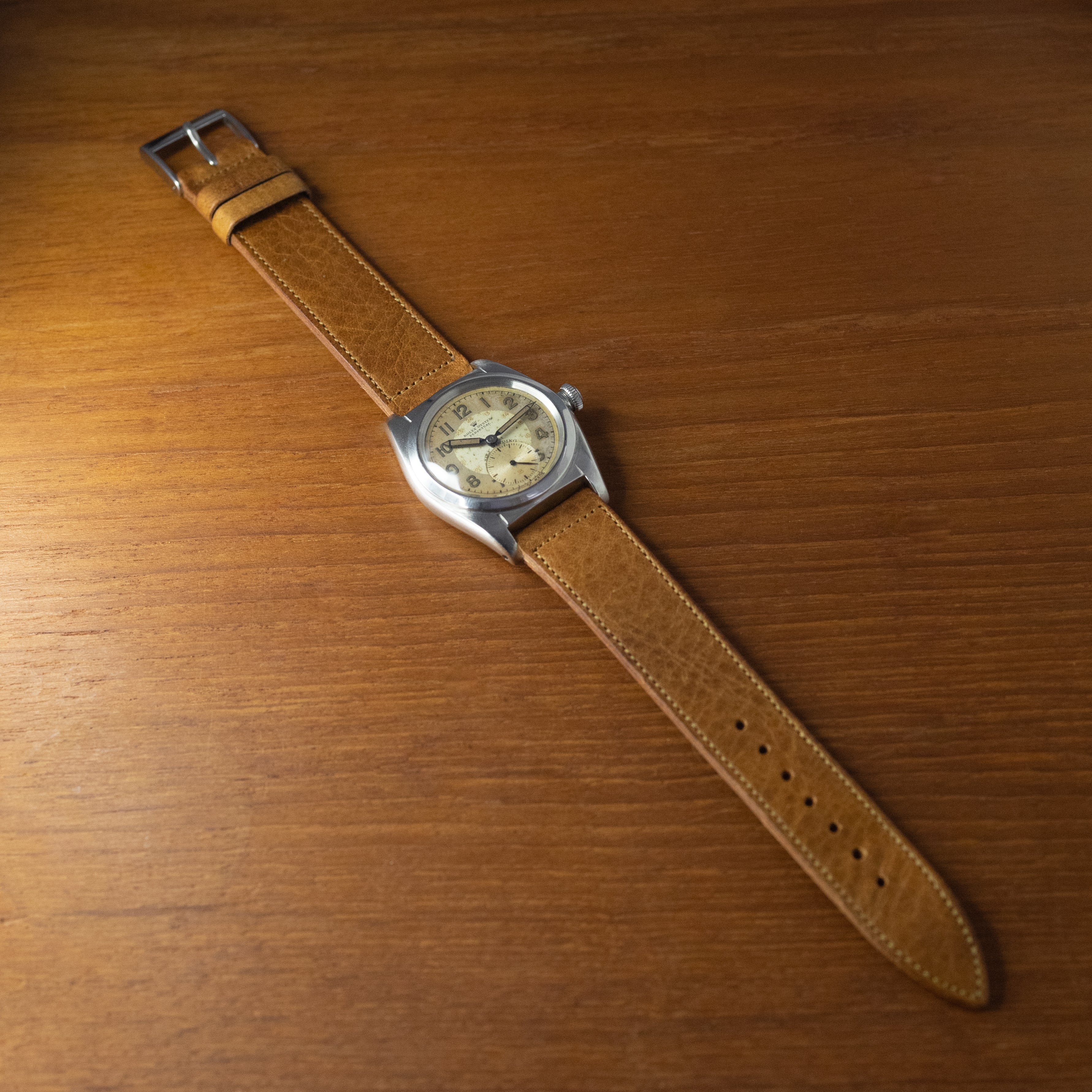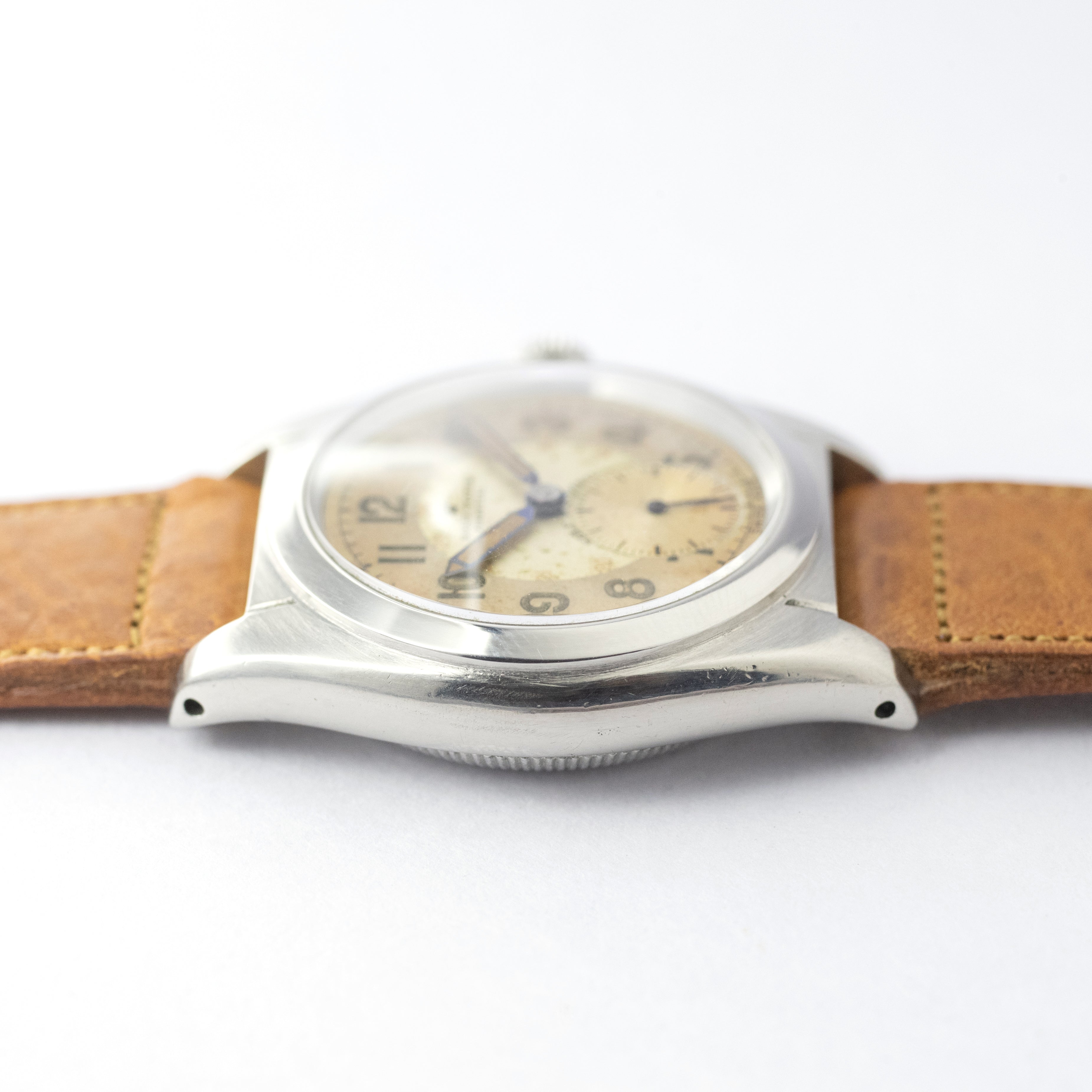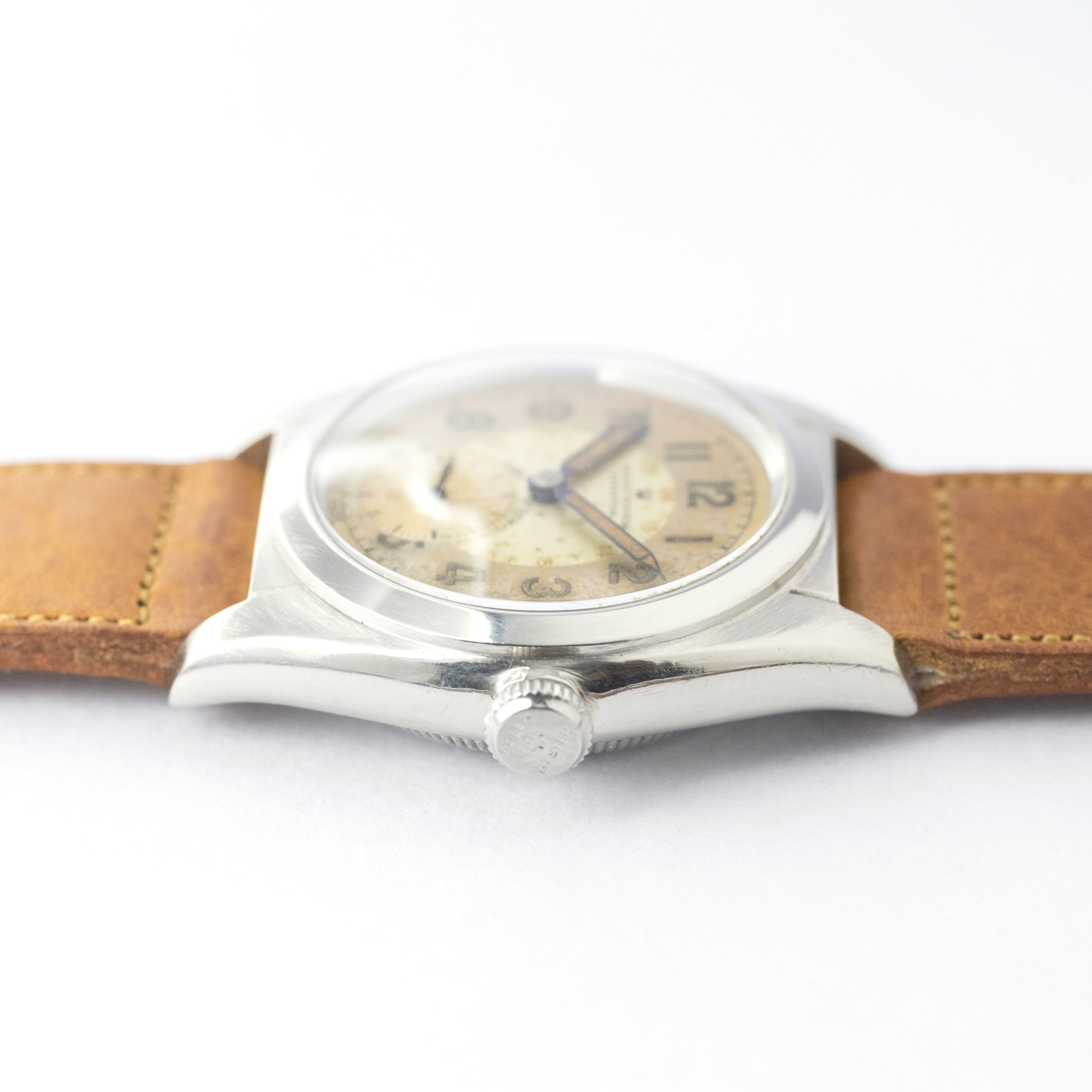 - ヴィンテージ時計の特性上、風防・パッキン・リューズ・バネ棒などの消耗部品は後年メンテナンス過程で交換されている場合がございます。オリジナル性を重視しておりますが、必要に応じて適切な部品にて調整されていますので、よりコレクション性重視のお求めのお客様は事前にご確認ください。