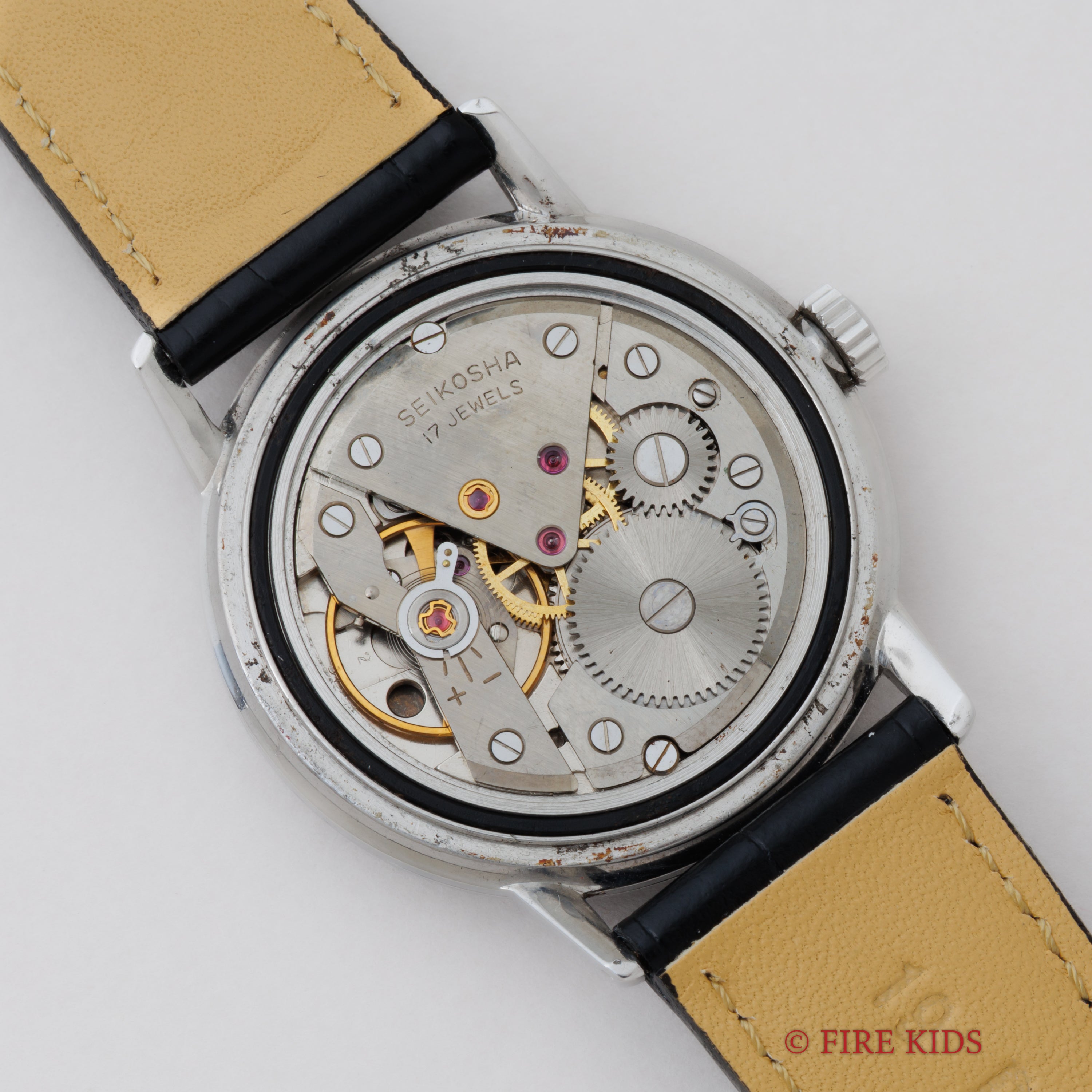 - ヴィンテージ時計の特性上、風防・パッキン・リューズ・バネ棒などの消耗部品は後年メンテナンス過程で交換されている場合がございます。オリジナル性を重視しておりますが、必要に応じて適切な部品にて調整されていますので、よりコレクション性重視のお求めのお客様は事前にご確認ください。