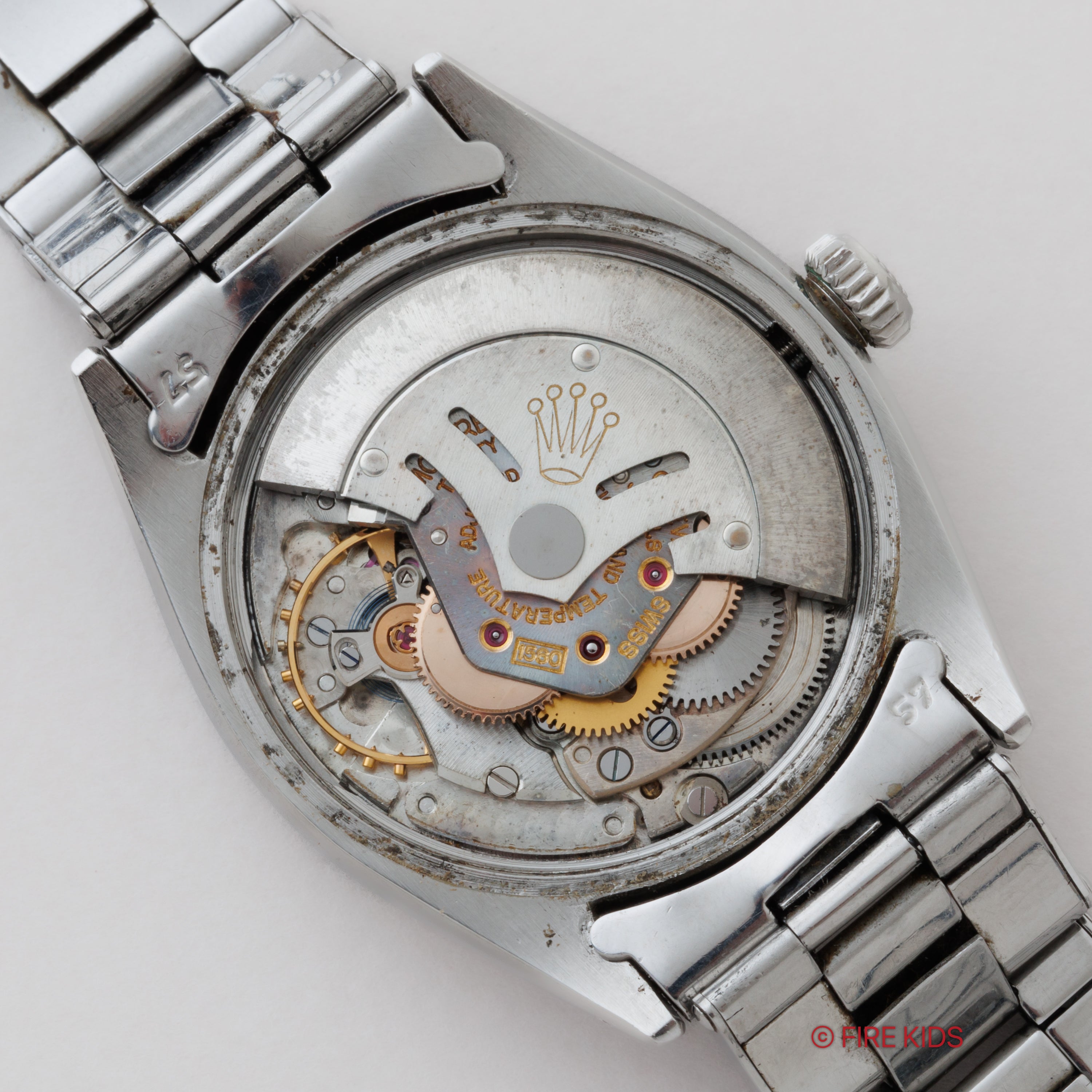- ヴィンテージ時計の特性上、風防・パッキン・リューズ・バネ棒などの消耗部品は後年メンテナンス過程で交換されている場合がございます。オリジナル性を重視しておりますが、必要に応じて適切な部品にて調整されていますので、よりコレクション性重視のお求めのお客様は事前にご確認ください。