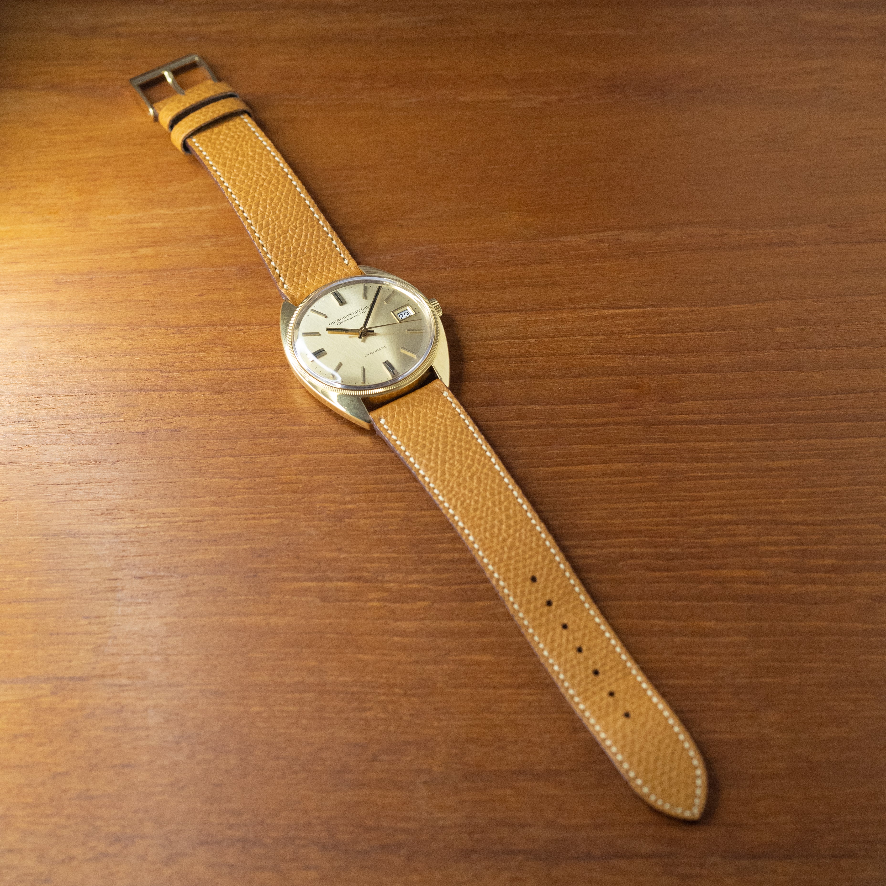 - ヴィンテージ時計の特性上、風防・パッキン・リューズ・バネ棒などの消耗部品は後年メンテナンス過程で交換されている場合がございます。オリジナル性を重視しておりますが、必要に応じて適切な部品にて調整されていますので、よりコレクション性重視のお求めのお客様は事前にご確認ください。