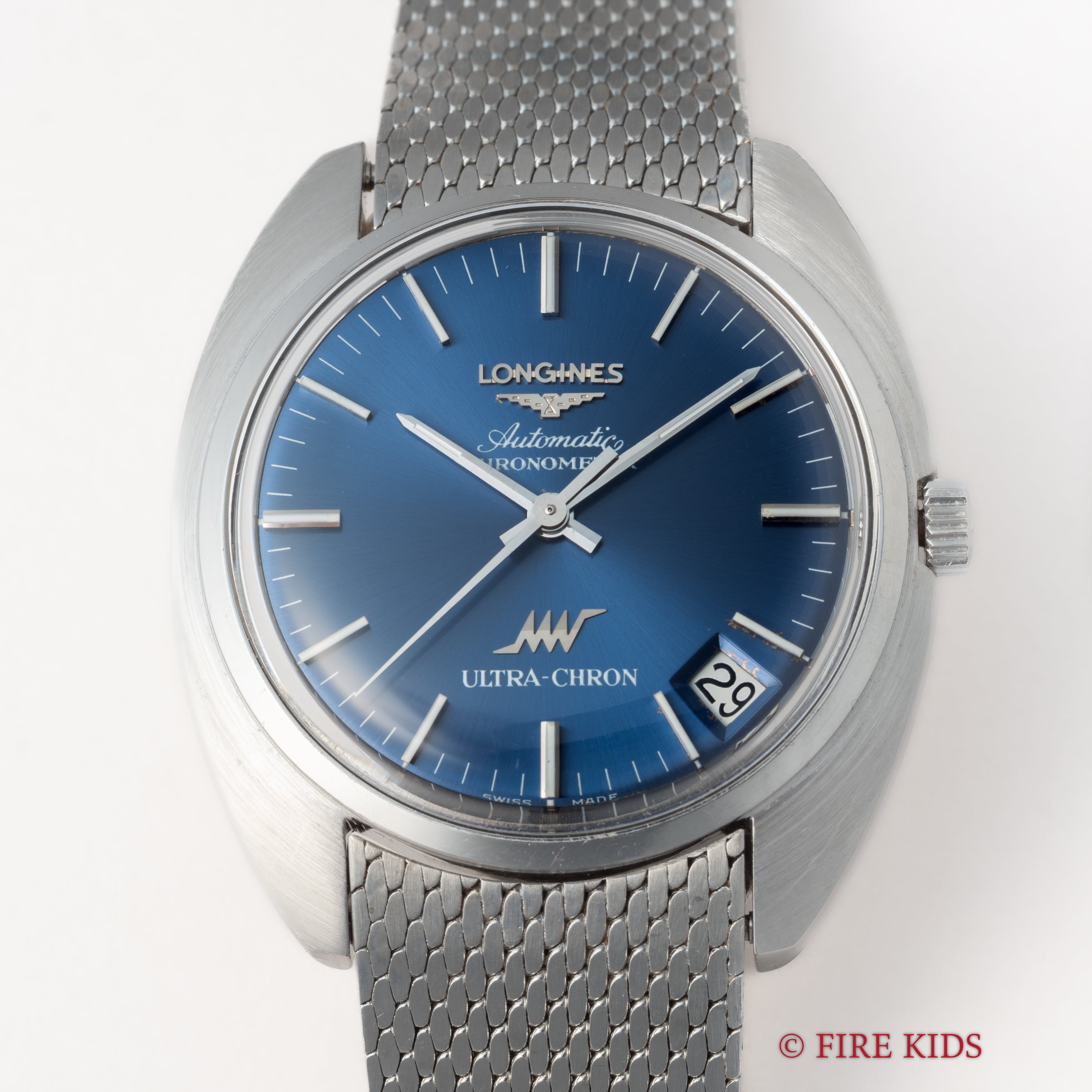 ロンジン ウルトラクロン ブルーダイヤル 純正メッシュブレス付き 8振動自動巻き