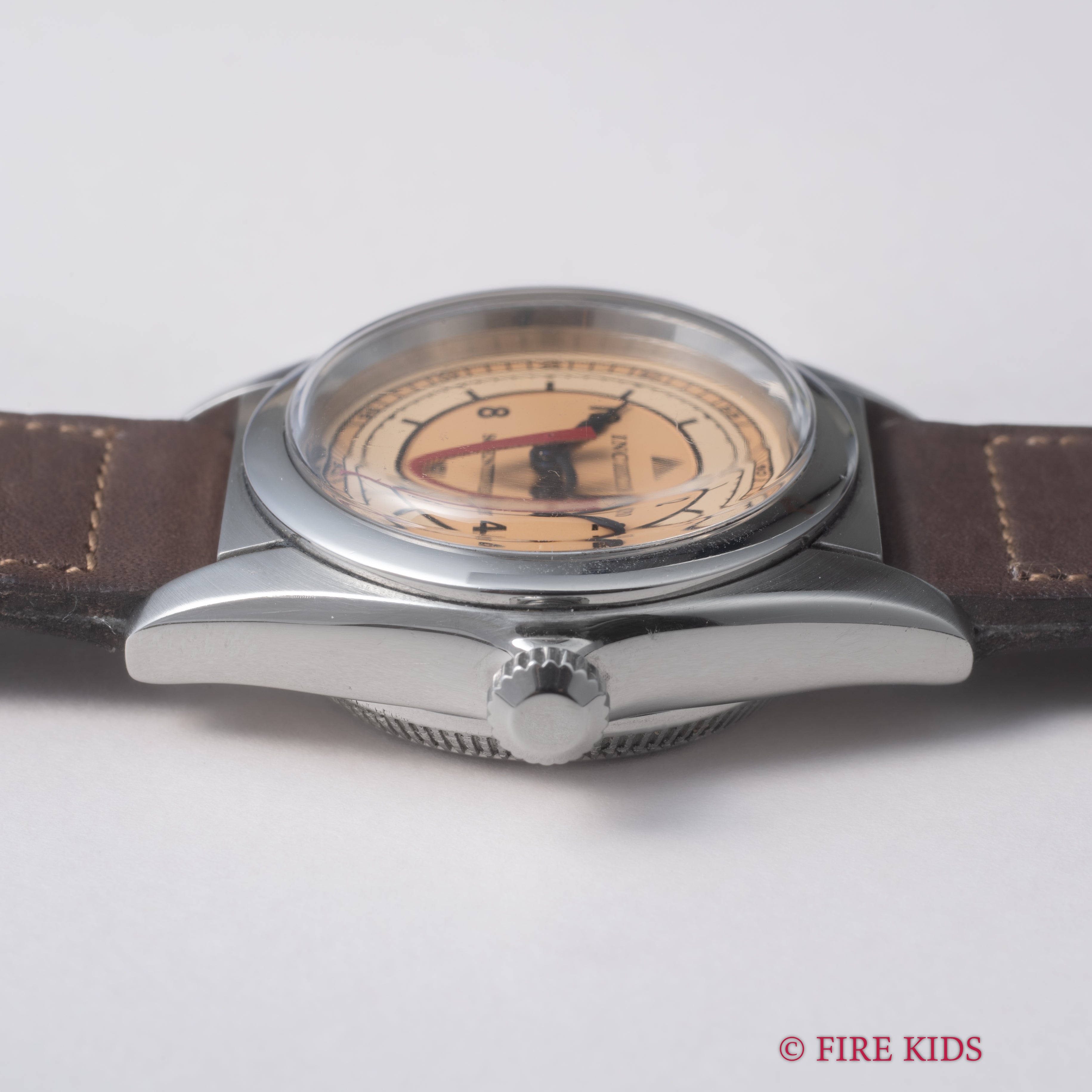 - ヴィンテージ時計の特性上、風防・パッキン・リューズ・バネ棒などの消耗部品は後年メンテナンス過程で交換されている場合がございます。オリジナル性を重視しておりますが、必要に応じて適切な部品にて調整されていますので、よりコレクション性重視のお求めのお客様は事前にご確認ください。